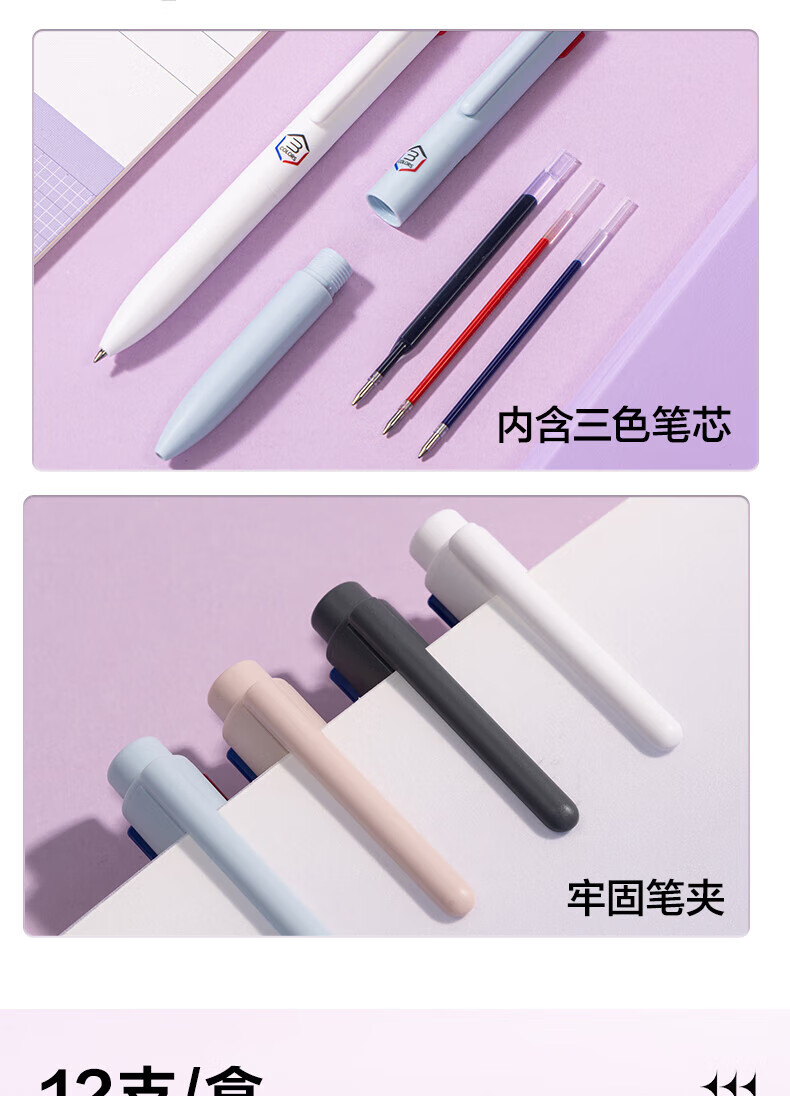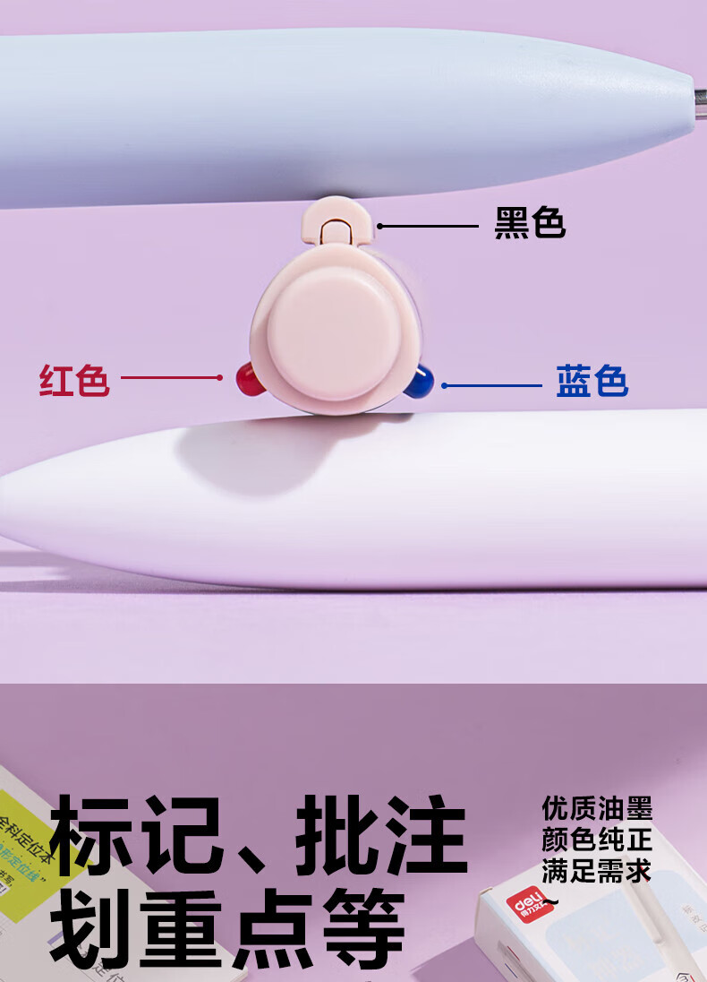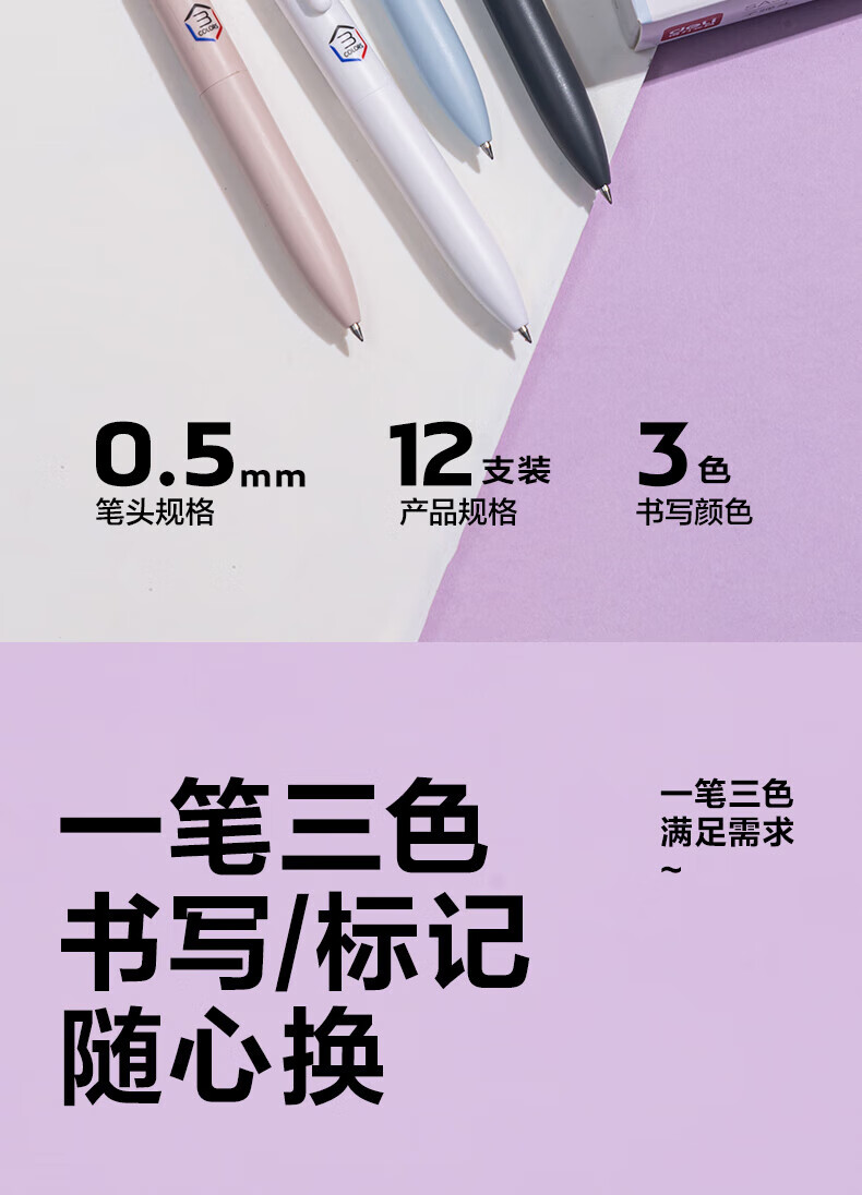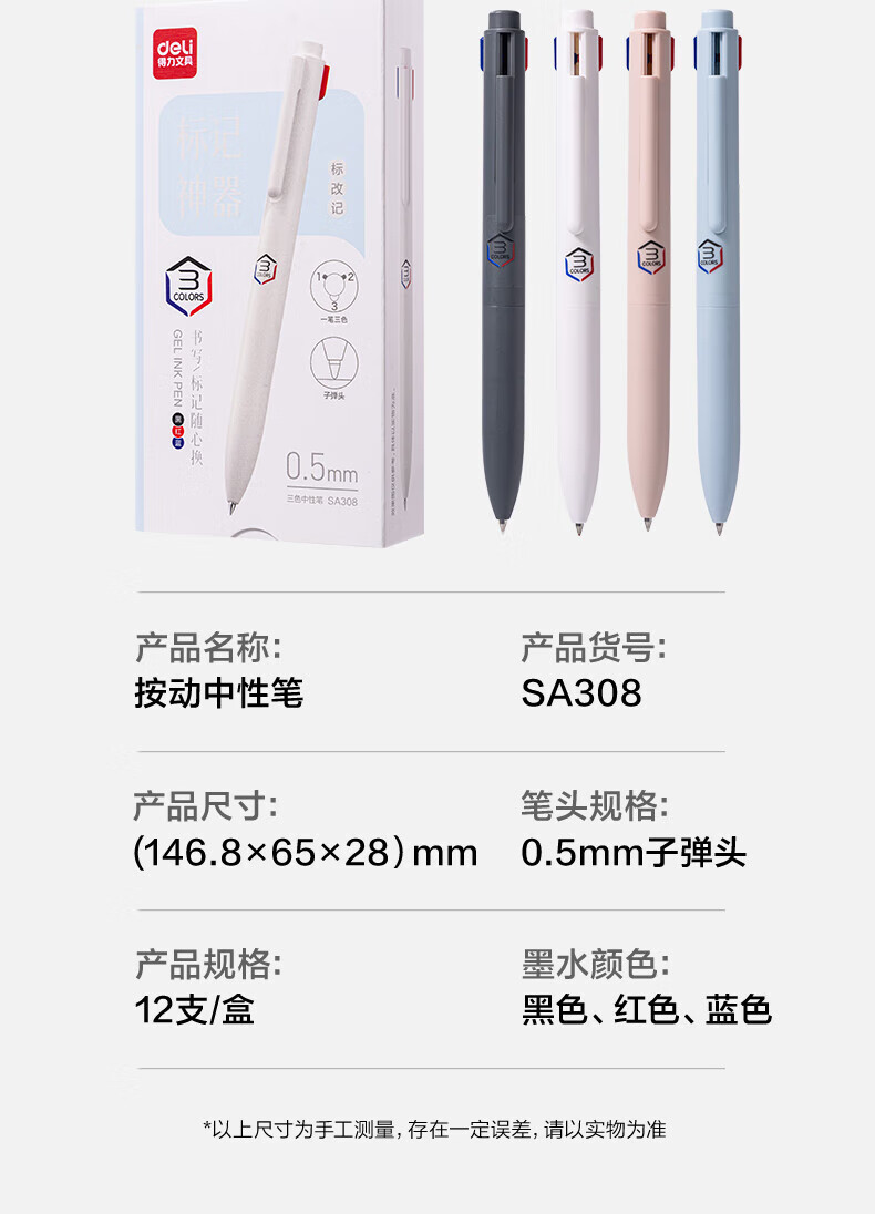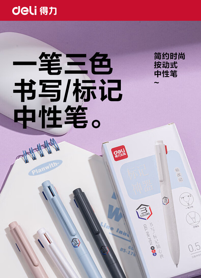 得力(deli)三色按动中性笔学生用标记笔多色合一中性笔黑色高颜值3色记笔记彩色笔红色老师批改作业 三色笔【5支装】笔杆随机