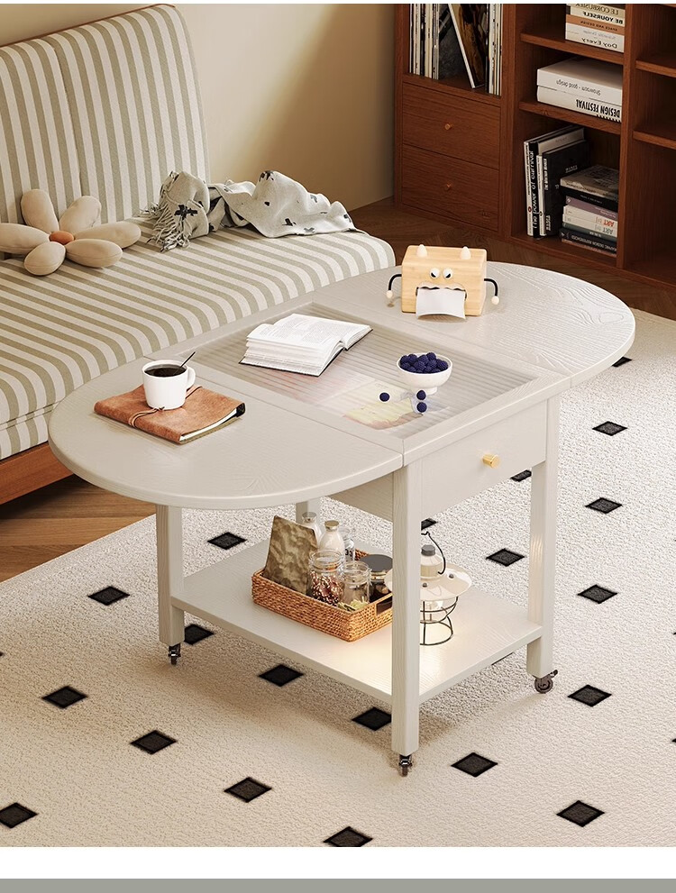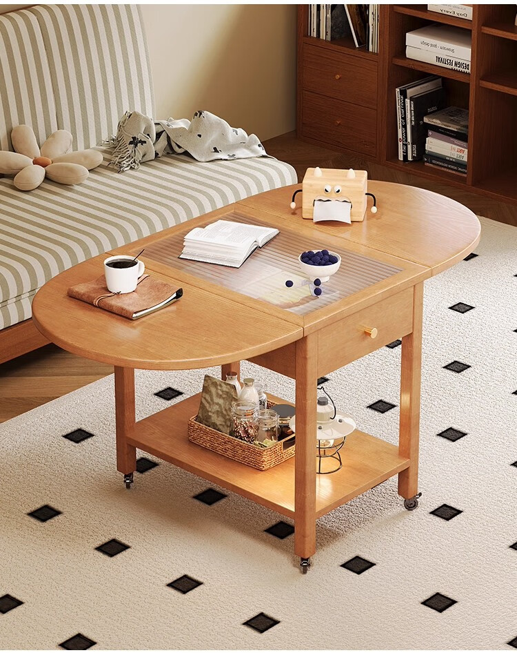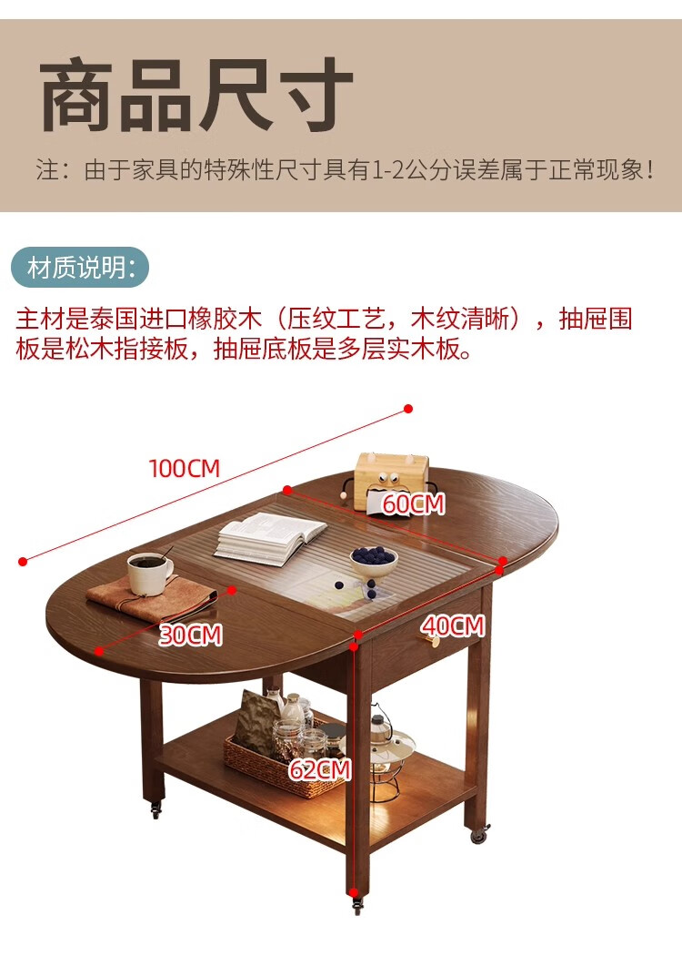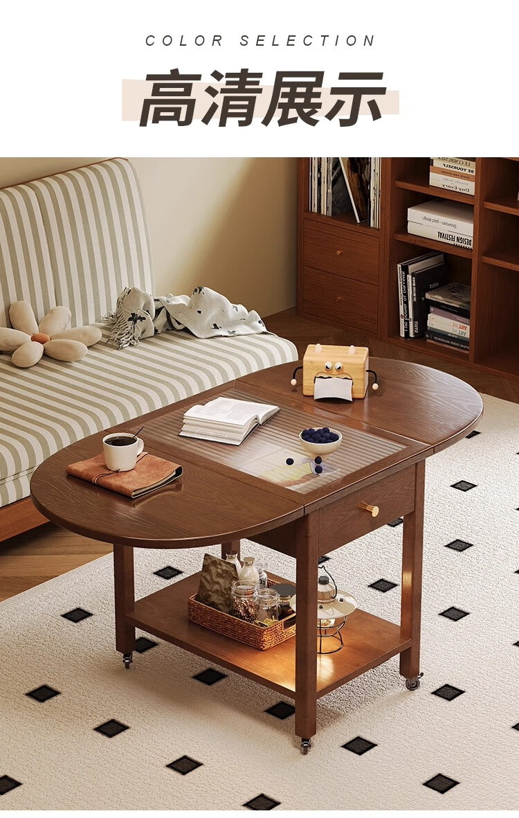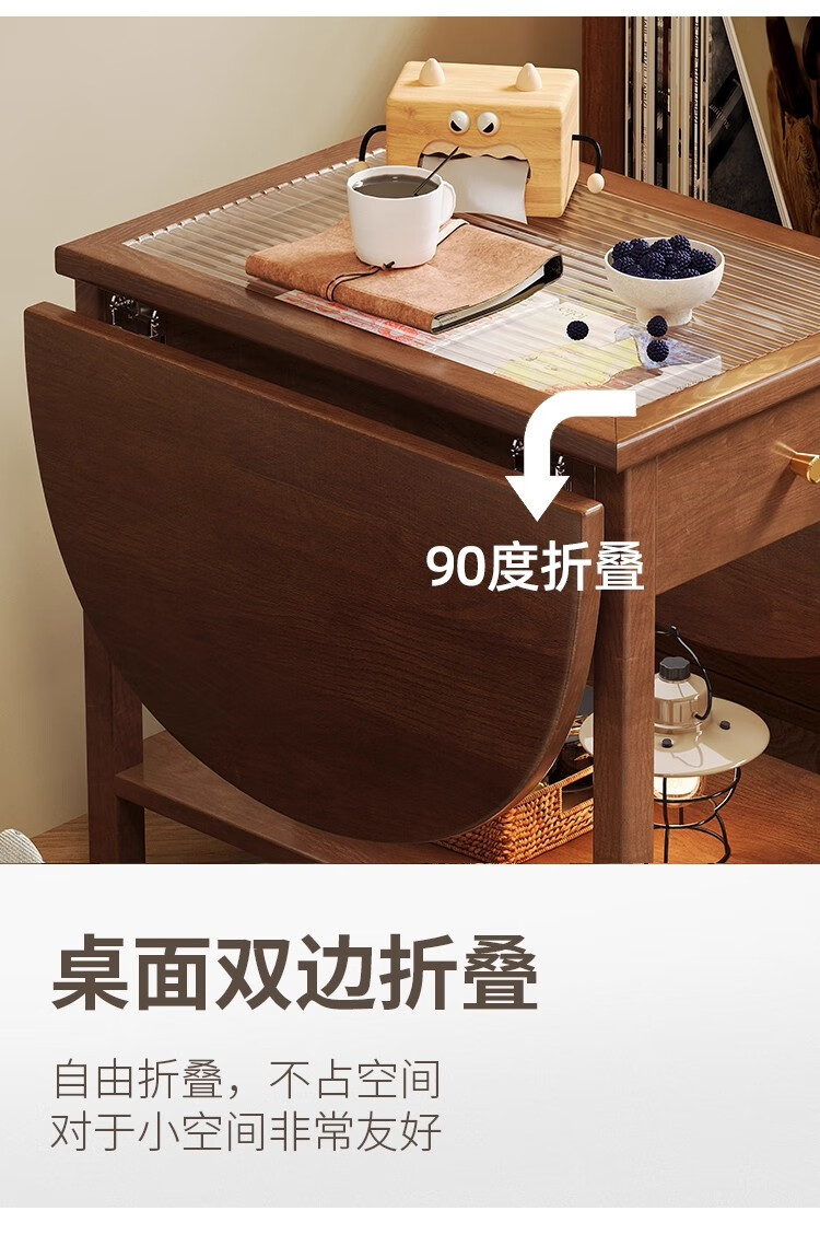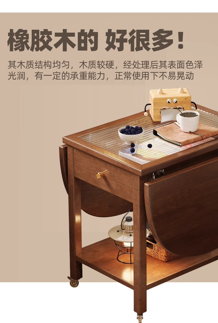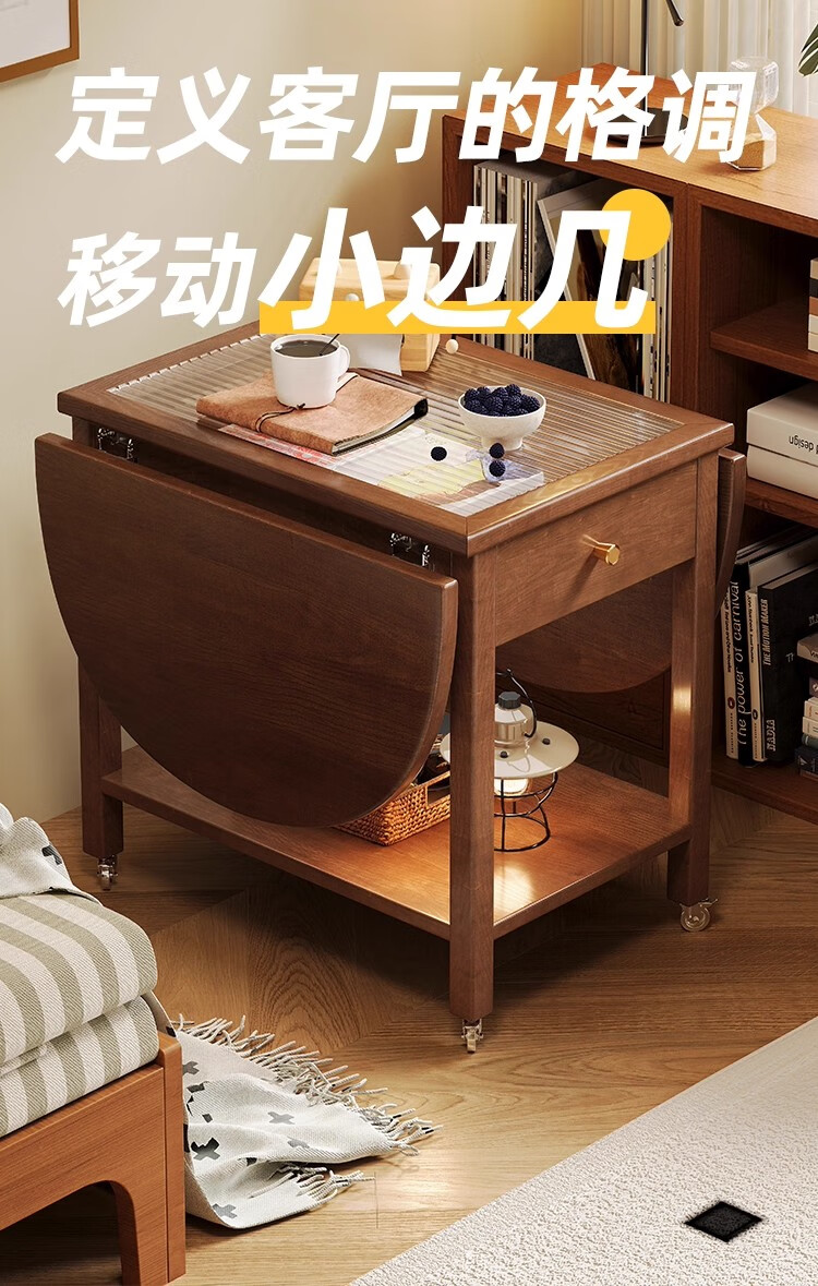 芈迪北欧实木可移动边几家用小推车茶几阳台客厅沙发边桌复古折叠角几 胡桃色茶几 100*60*62cm