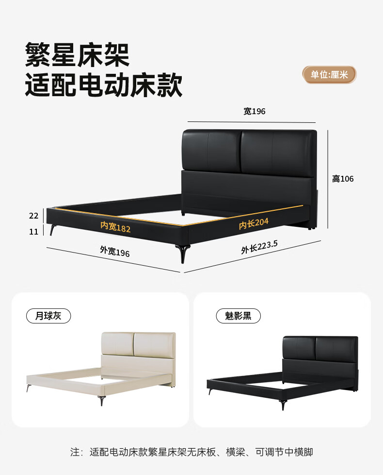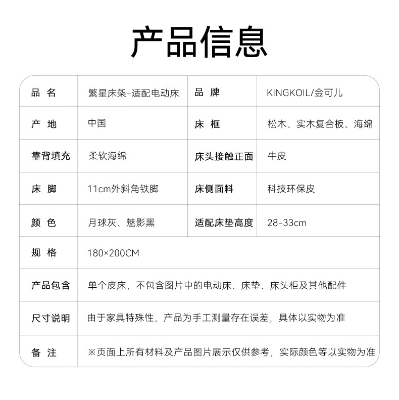 金可儿(Kingkoil)双人床电动床框升降智能真皮床架主卧大床 繁星床架(内嵌电动床) 繁星床架(内嵌电动床) 魅影黑 1.8*2米