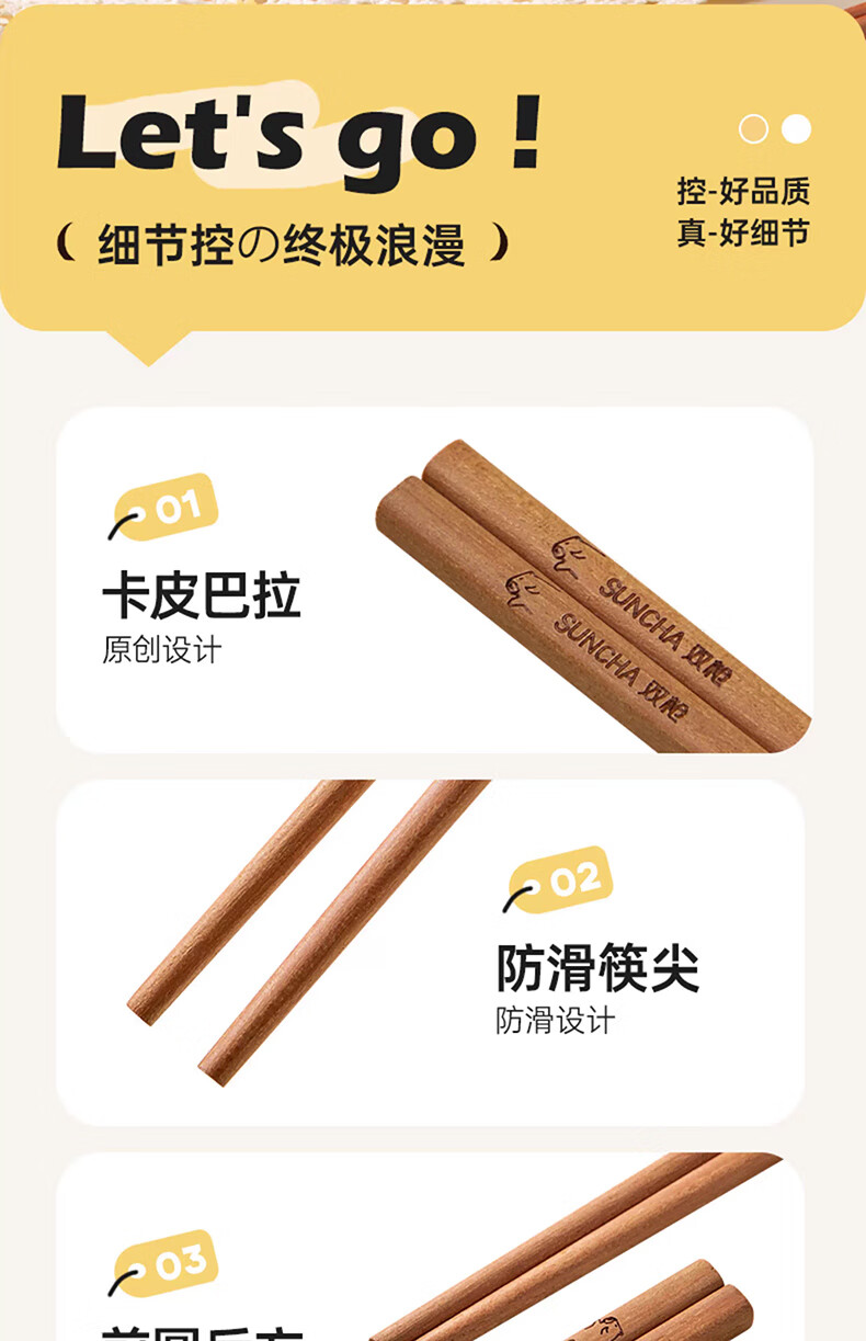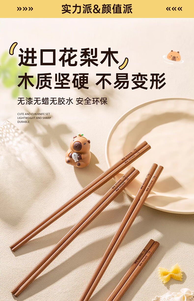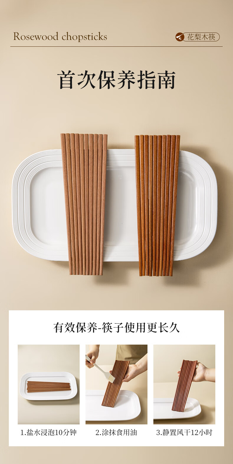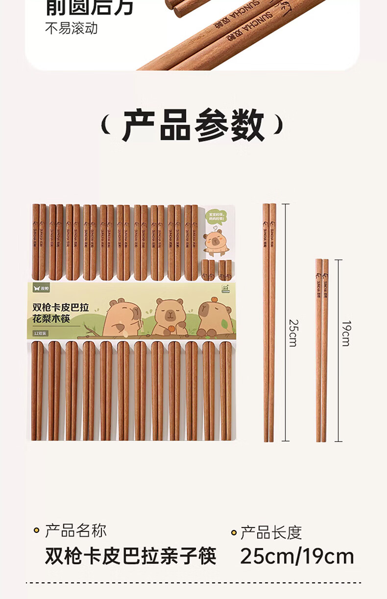 双枪卡皮巴拉花梨木亲子筷 家用进口高档木筷子无漆无蜡原木筷实木筷 【花梨木筷】成人 10双