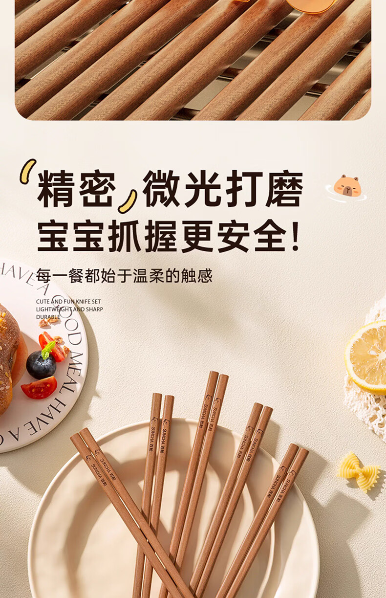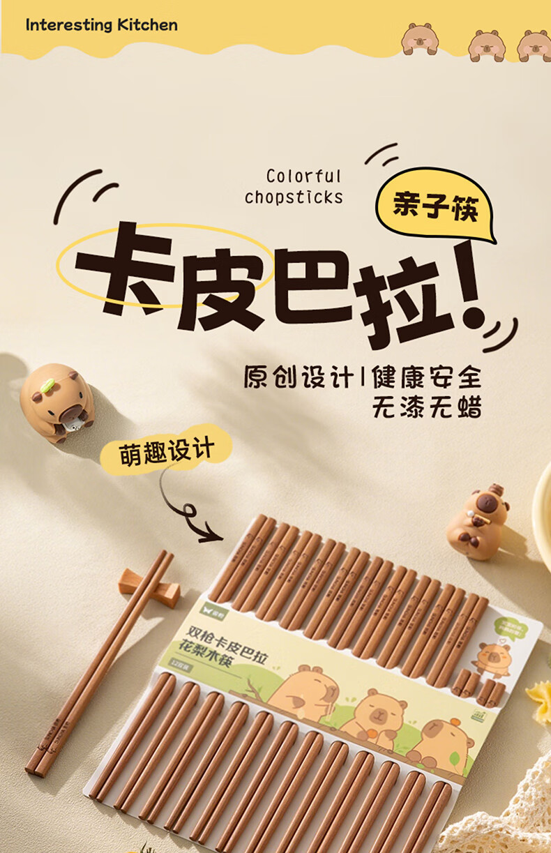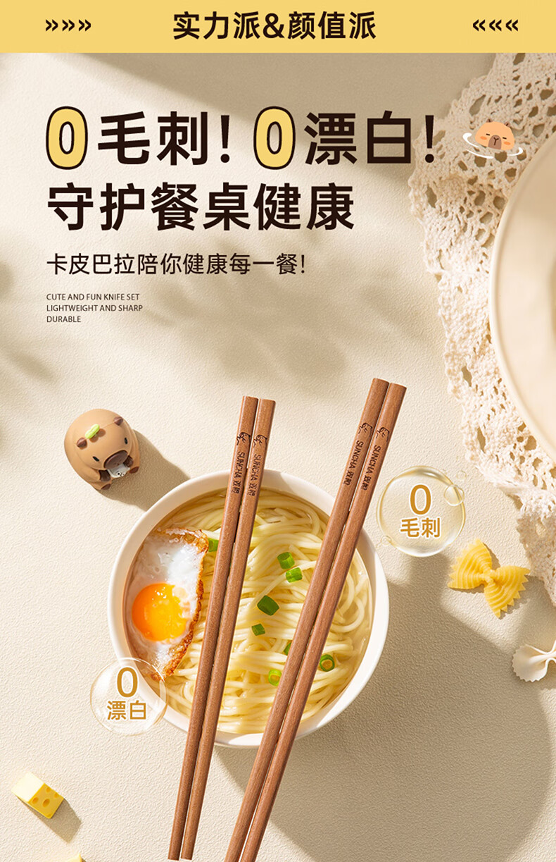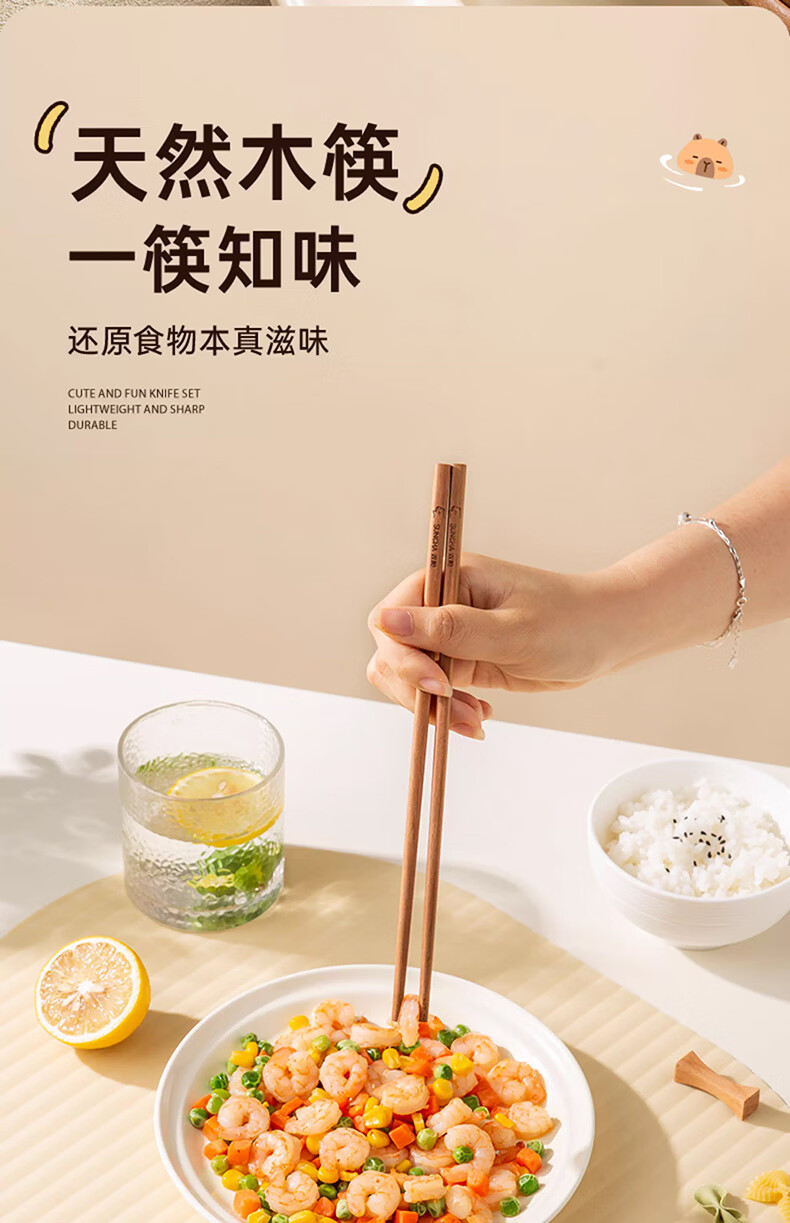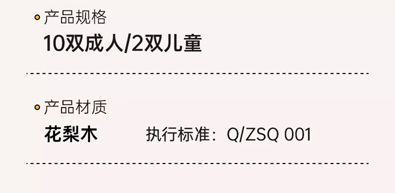 双枪卡皮巴拉花梨木亲子筷 家用进口高档木筷子无漆无蜡原木筷实木筷 【花梨木筷】成人 10双