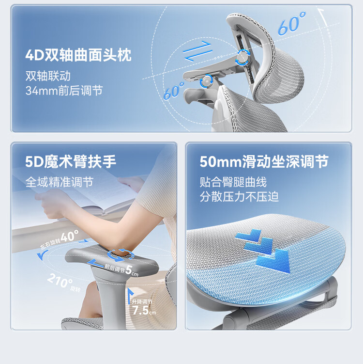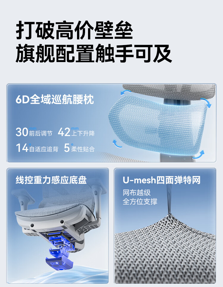 Totguard E1Pro人体工学椅办公电脑椅电竞成人椅 6向机械扶手5维悬浮撑腰