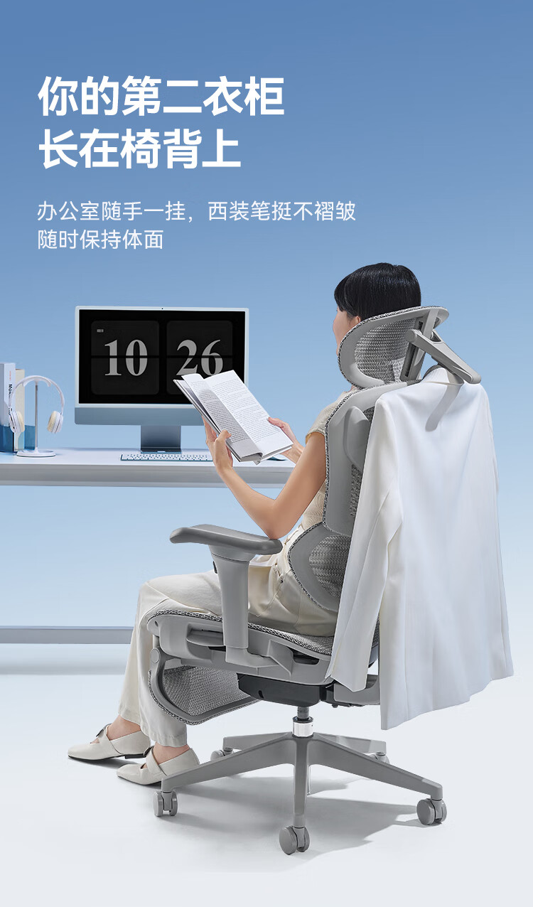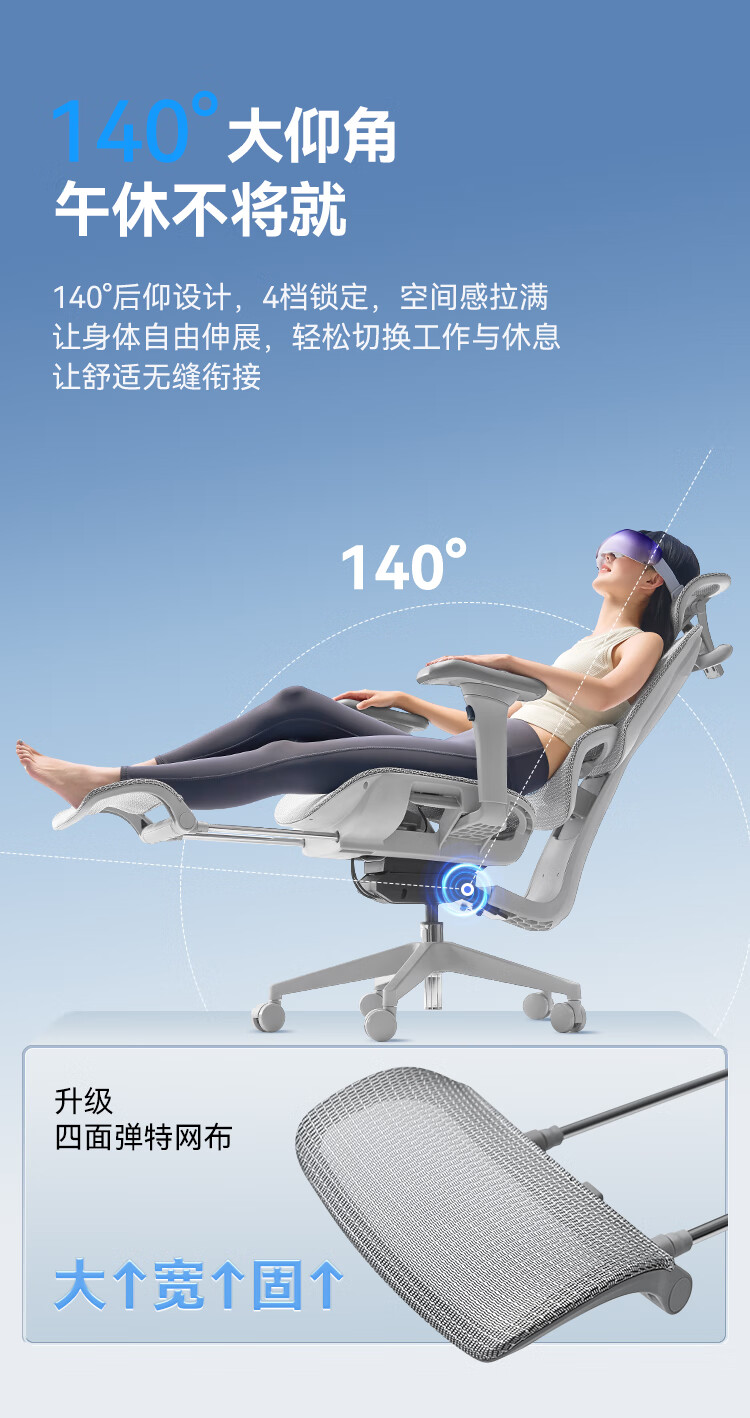 座易T8人体工学椅电脑椅子办公椅可躺植绒网布座椅久坐电竞椅 5D魔术扶手+灰植绒网+坐深+脚踏