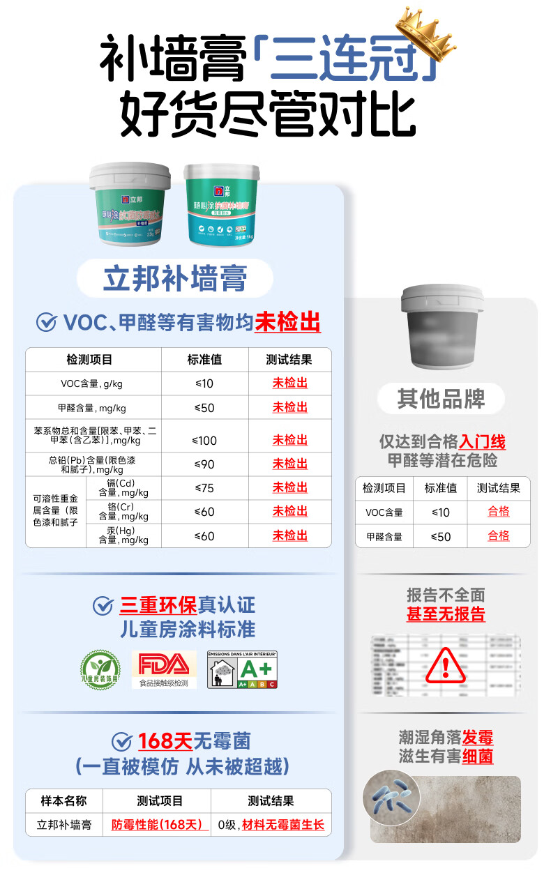 立邦补墙膏墙面修复防霉抗菌墙面修补膏堵洞腻子膏白色2.5kg