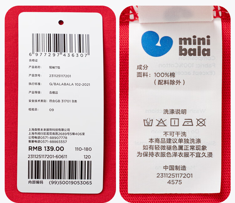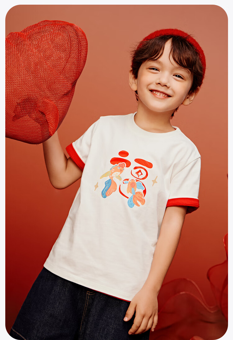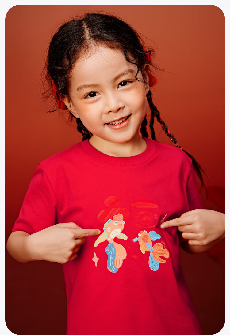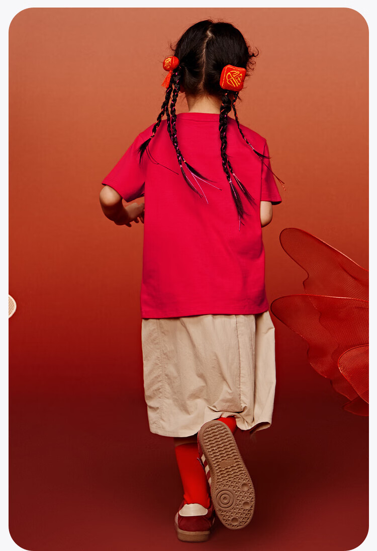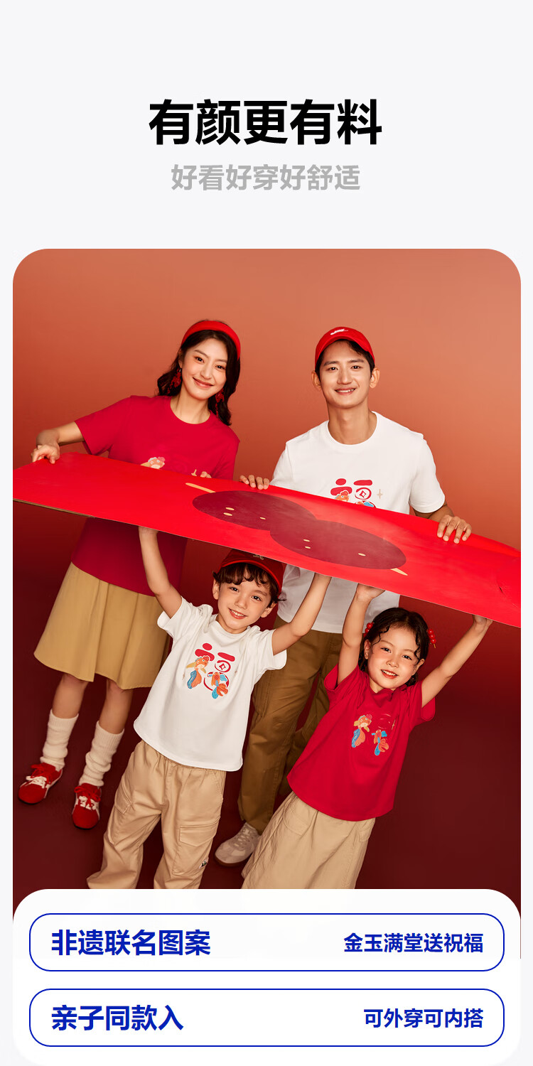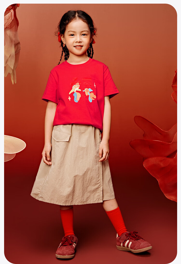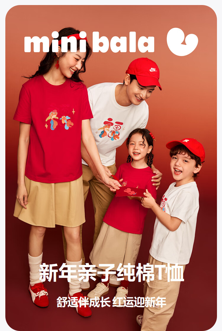 迷你巴拉巴拉男女童T恤亲子一家三口儿童红色纯棉短袖联名打底衫
