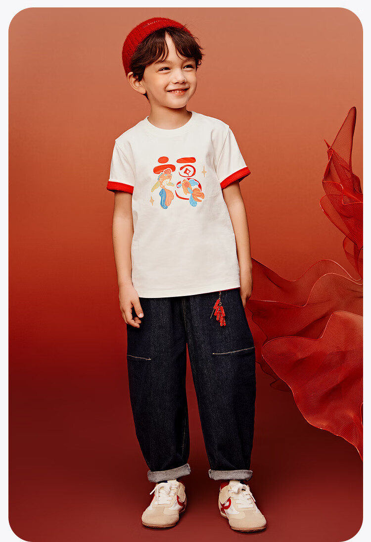 唐狮(TonLion)童装男童长袖T恤马年儿童本命年红色上衣中大童春节纯棉打底1 红色24中国K 150150(高140-150重60- ) 80