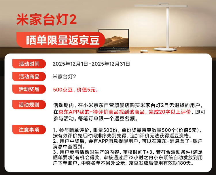米家(MIJIA)小米台灯2 智能护眼学习台灯灯具 儿童学习阅读灯卧室书房
