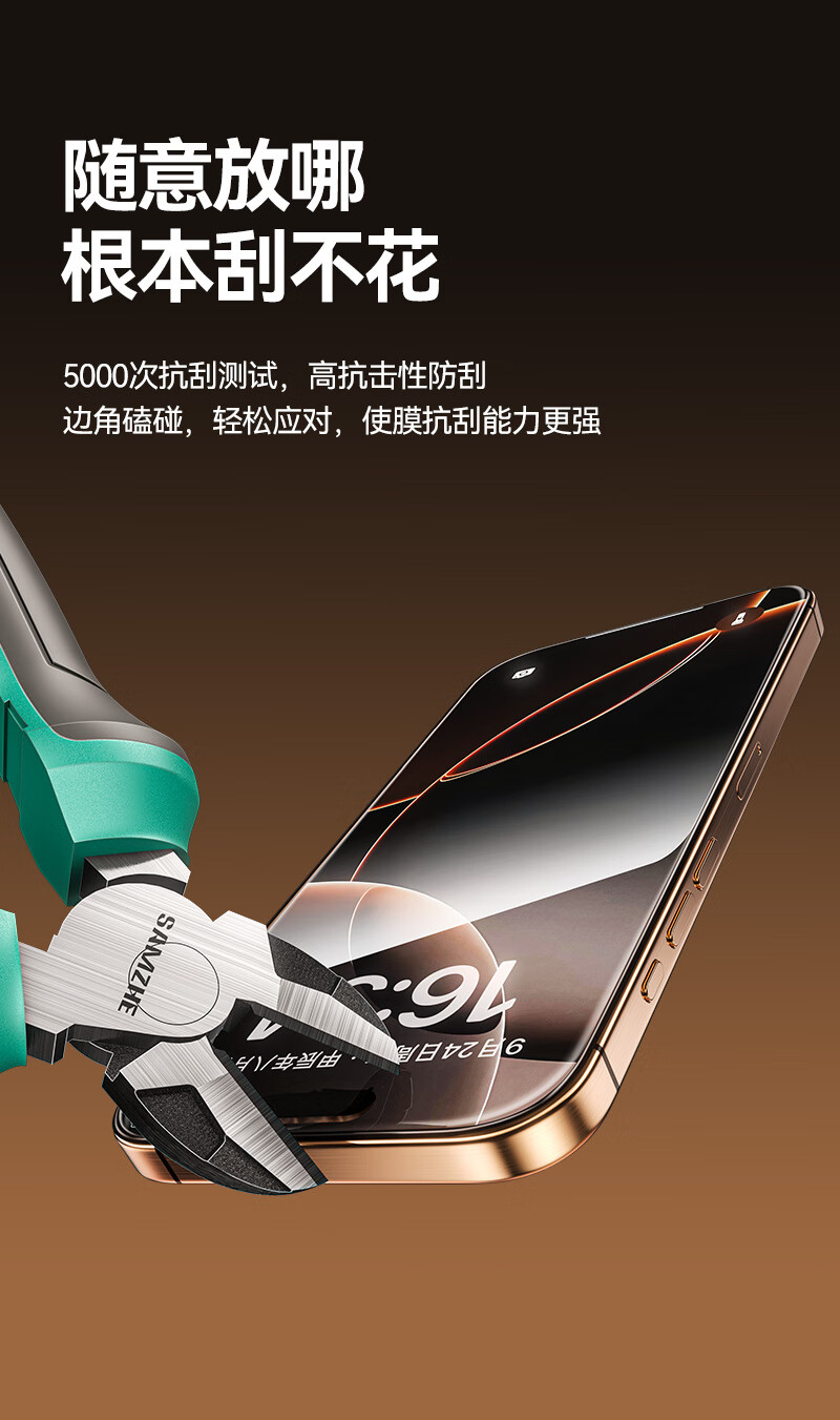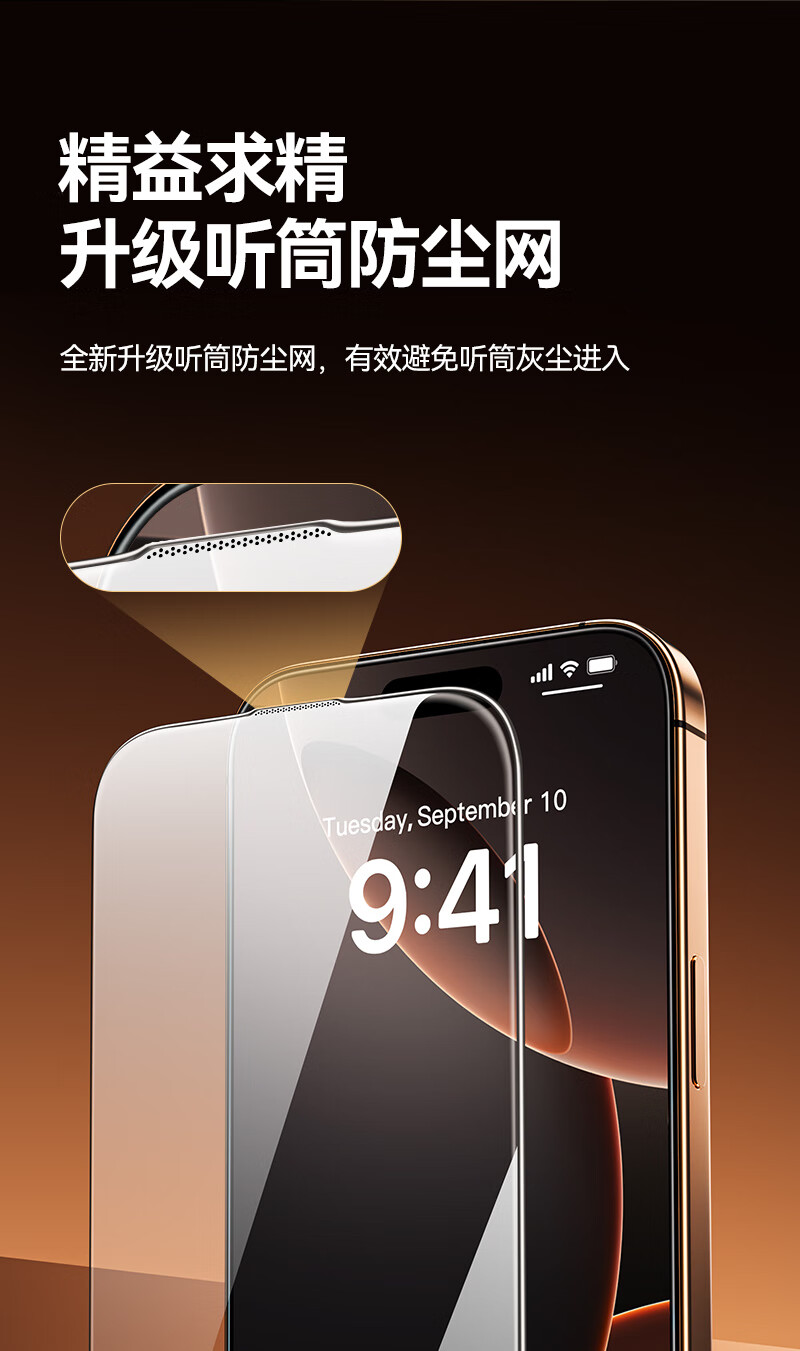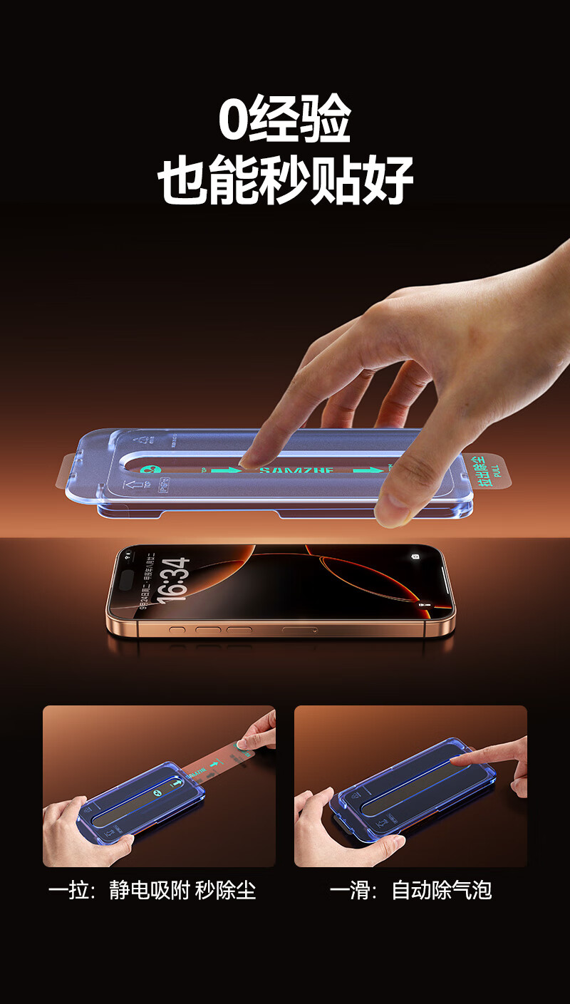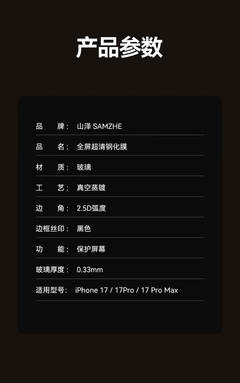 山泽(SAMZHE)晶盾膜【全屏防摔丨2片超值装】适用iPhone17钢化膜苹果17手机保护贴膜抗指纹防爆防摔无尘仓