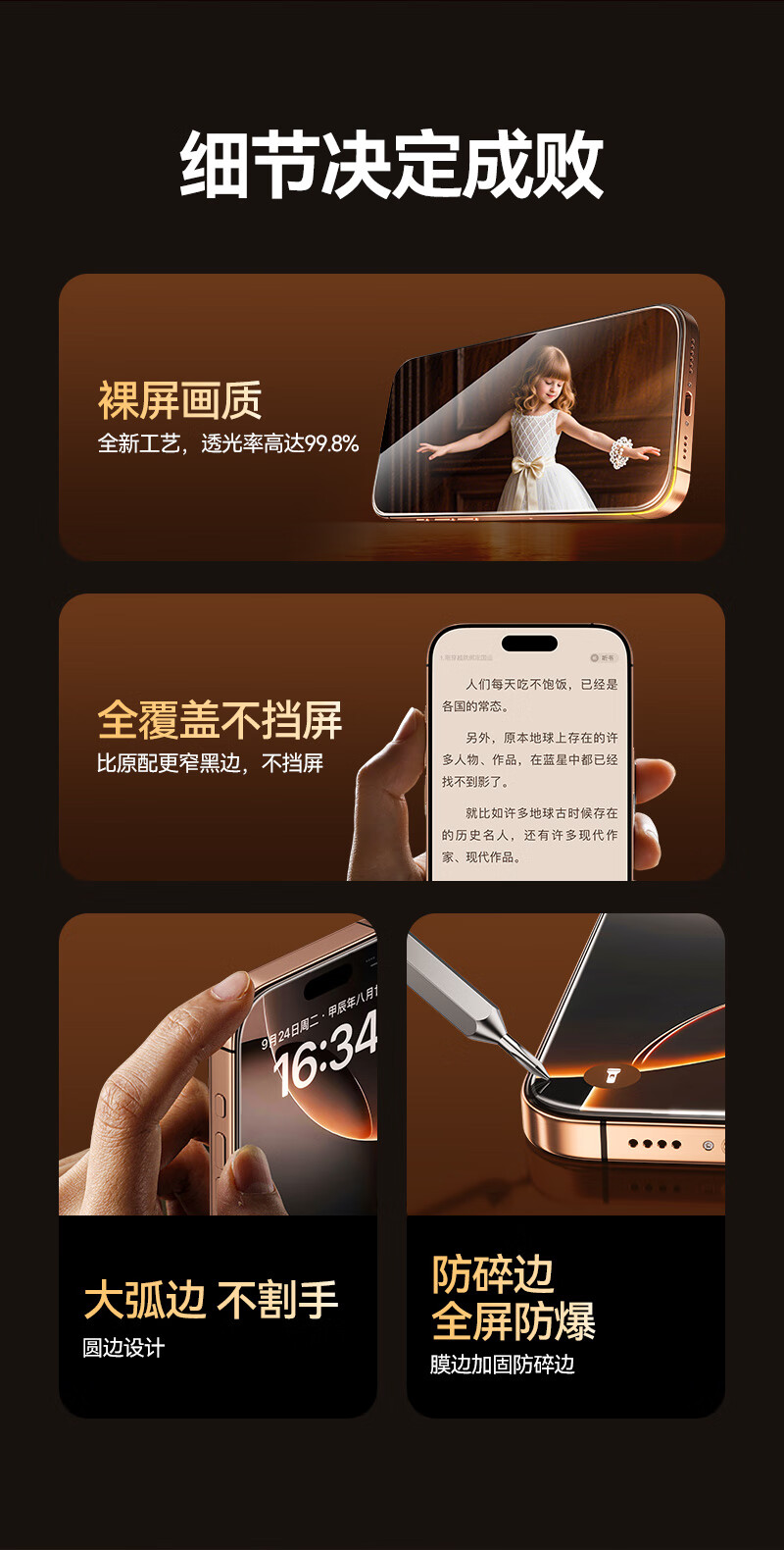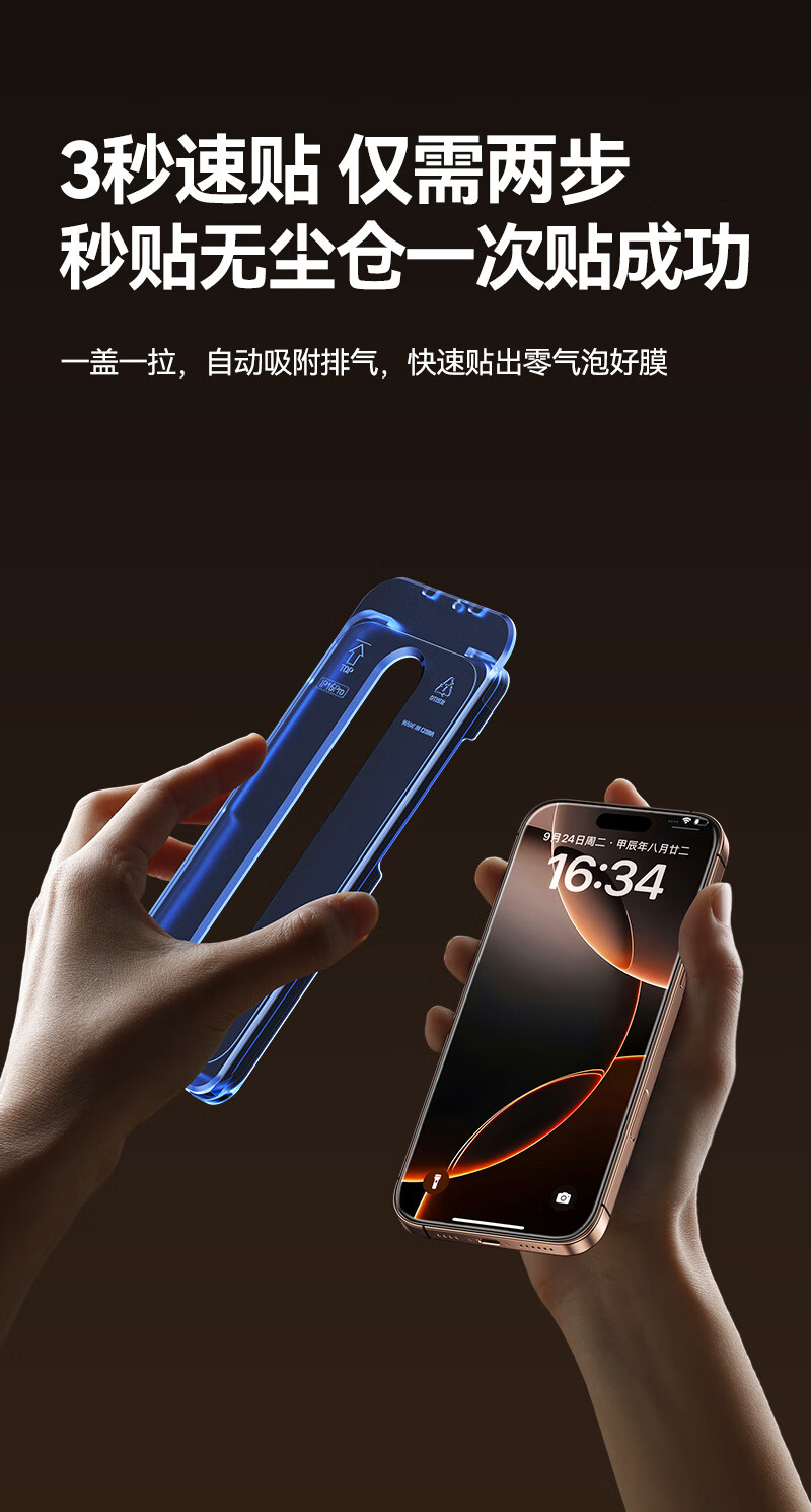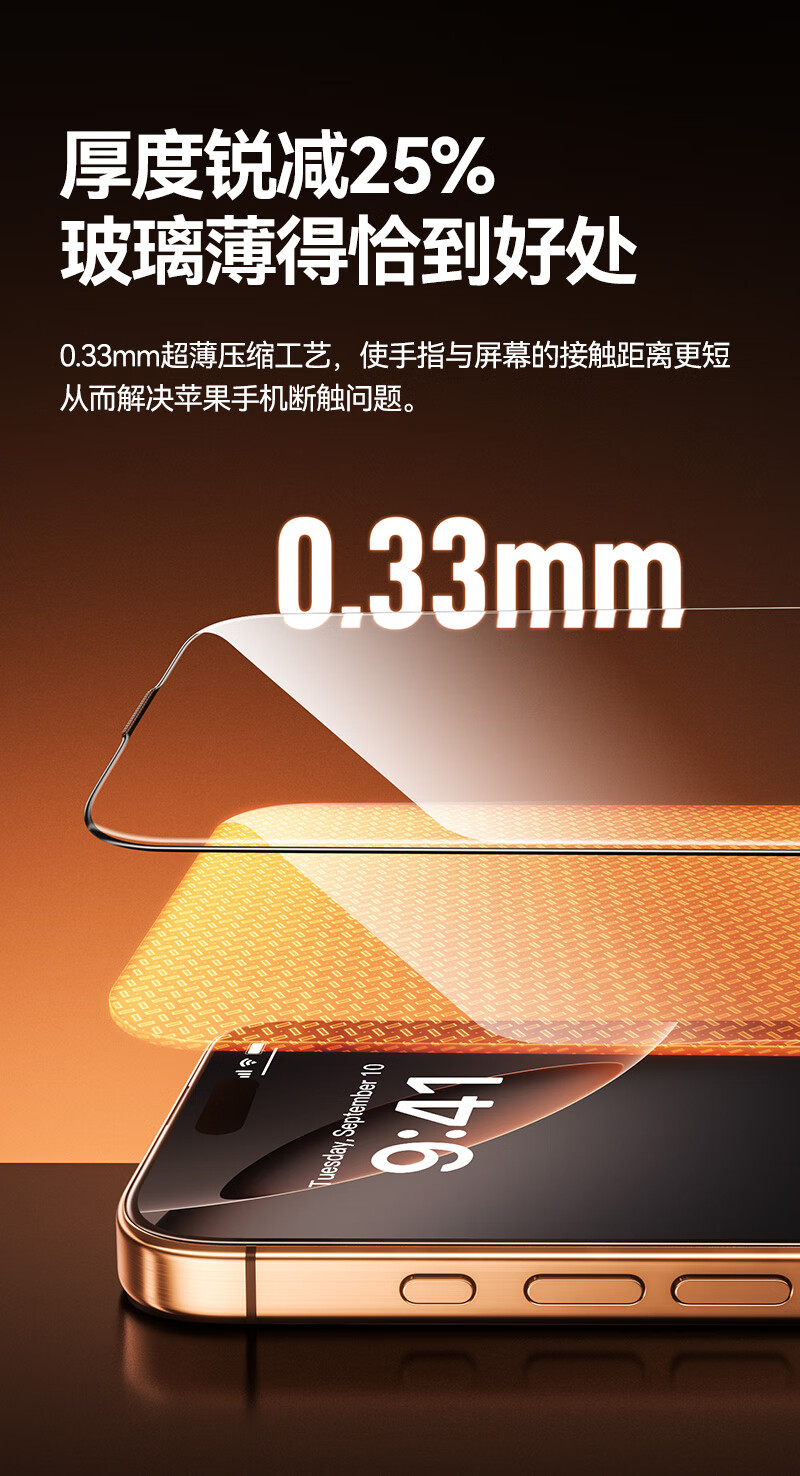 山泽(SAMZHE)晶盾膜【全屏防摔丨2片超值装】适用iPhone17钢化膜苹果17手机保护贴膜抗指纹防爆防摔无尘仓
