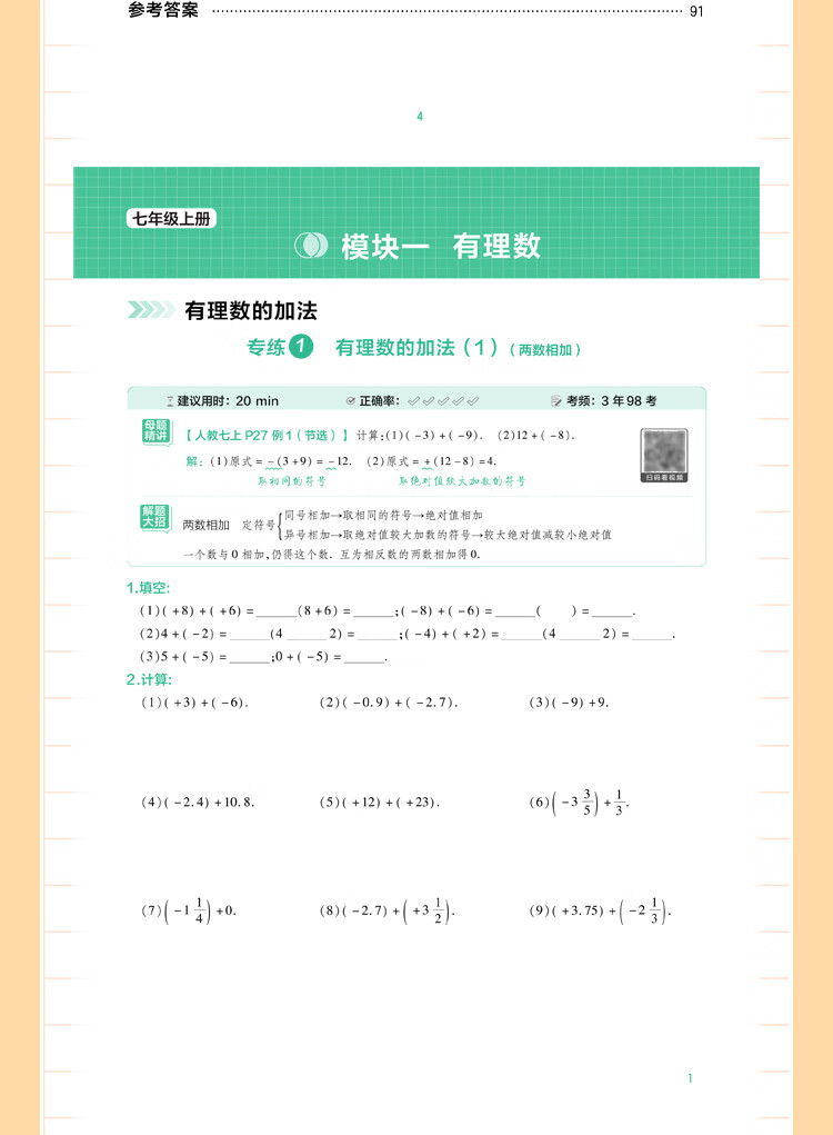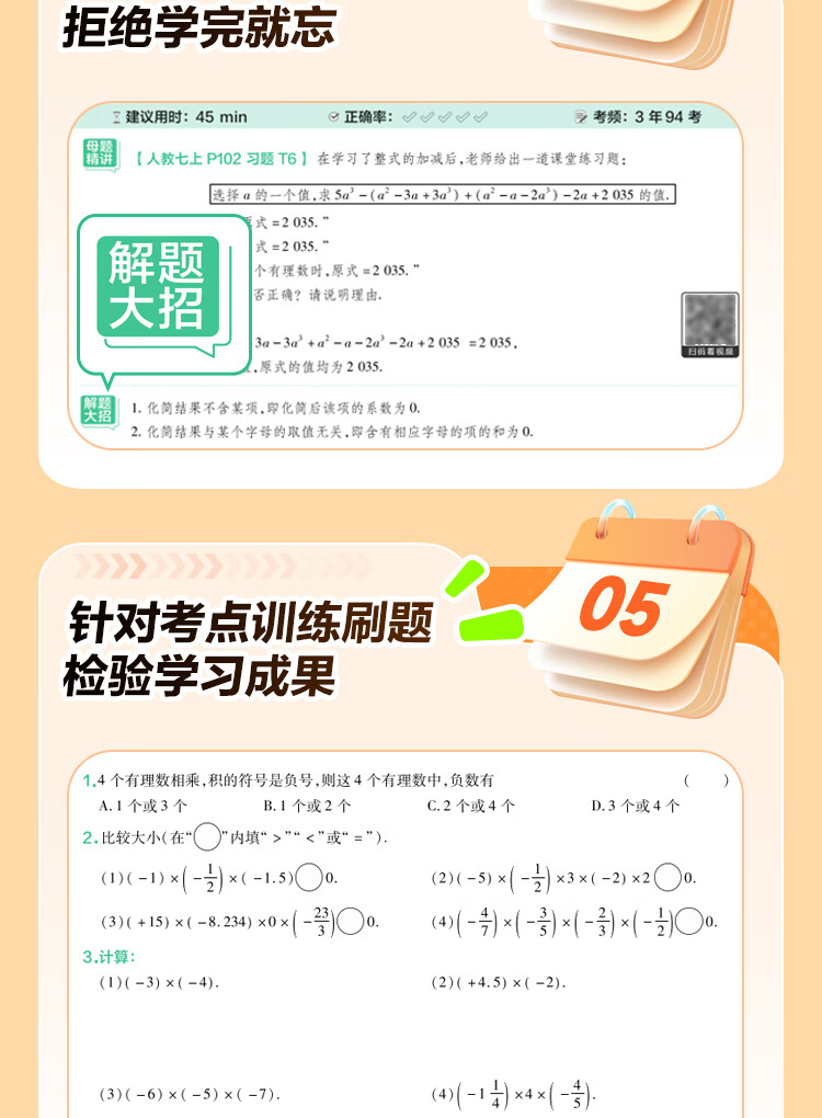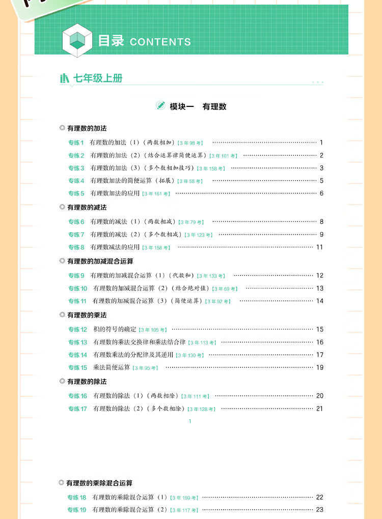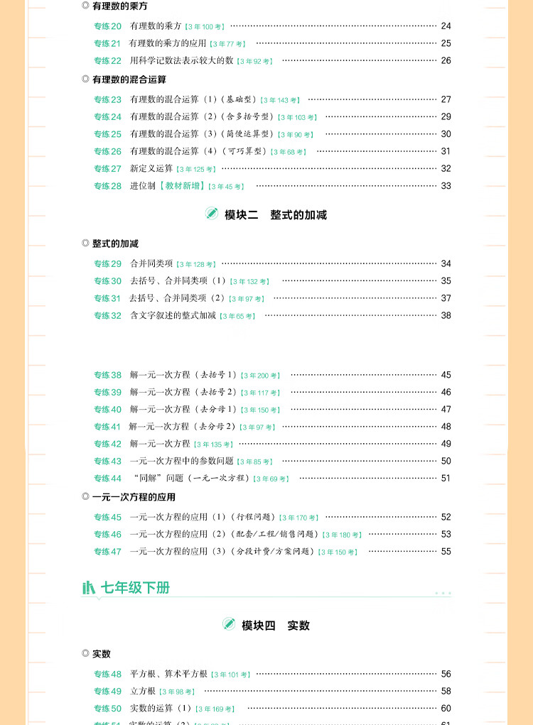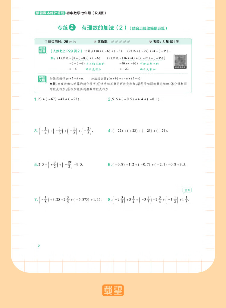 2025新载望初中跟着课本练计算题压轴题七年级上册下册人教北师大苏科版数学专项训练初一必刷题强化思维训练 【1本】计算题 人教版