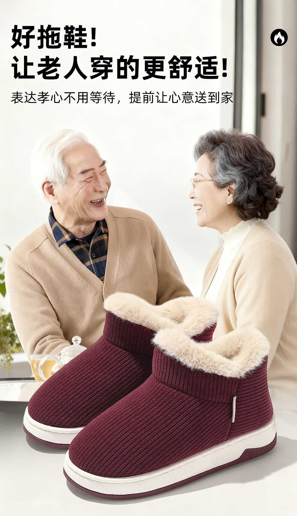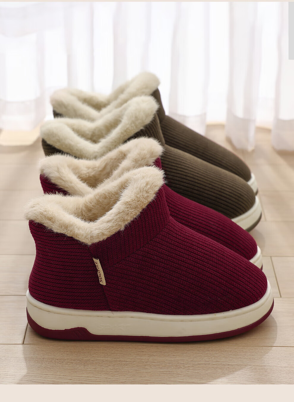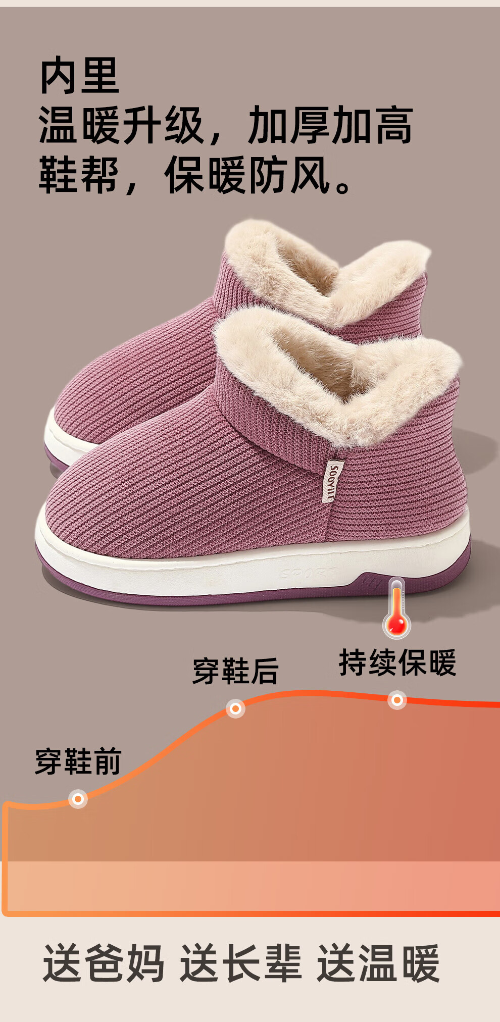 FZT老人防滑棉拖鞋女士冬季包跟室内家居2025新款毛毛加绒厚底棉鞋女 卡其色 36-37 正码