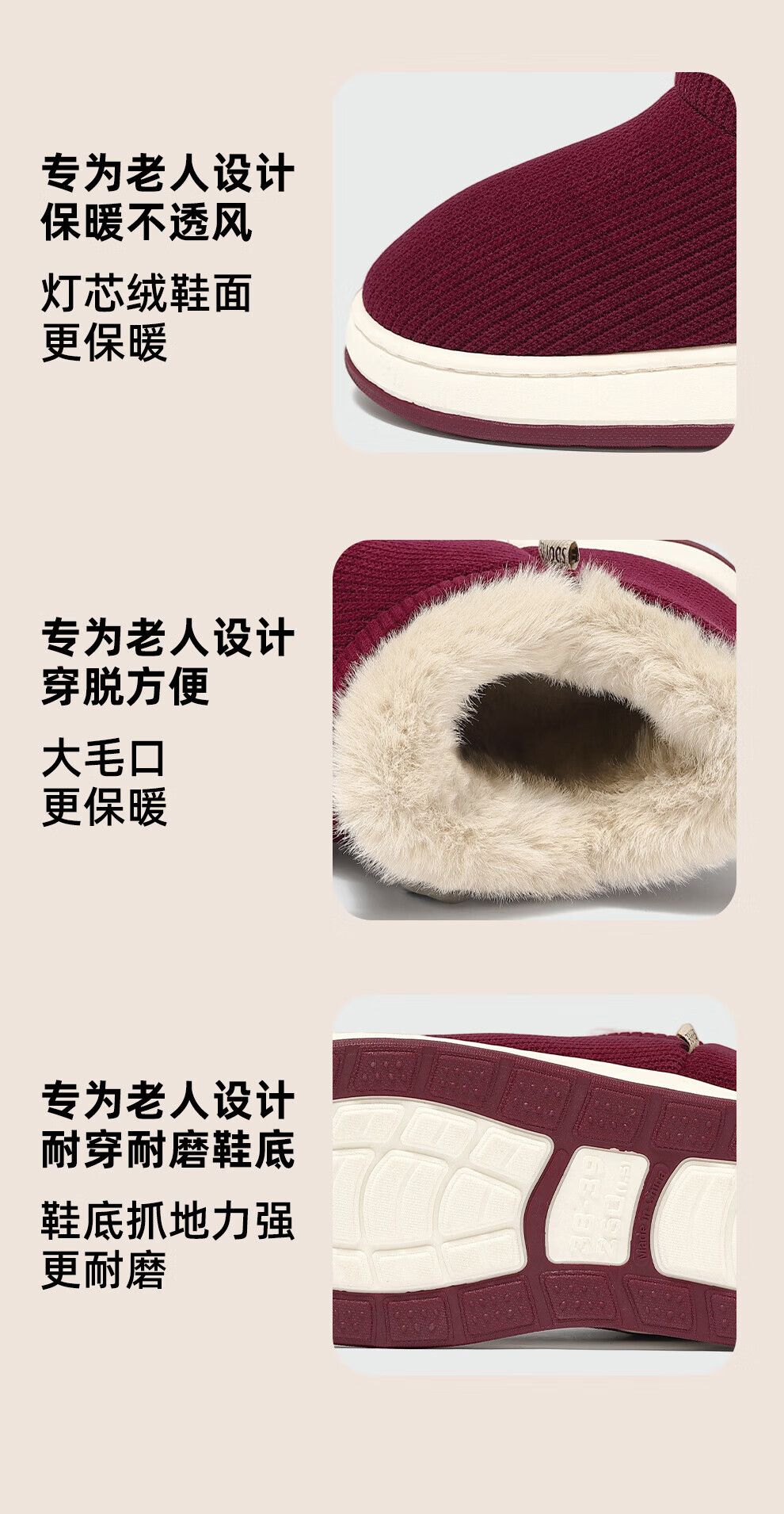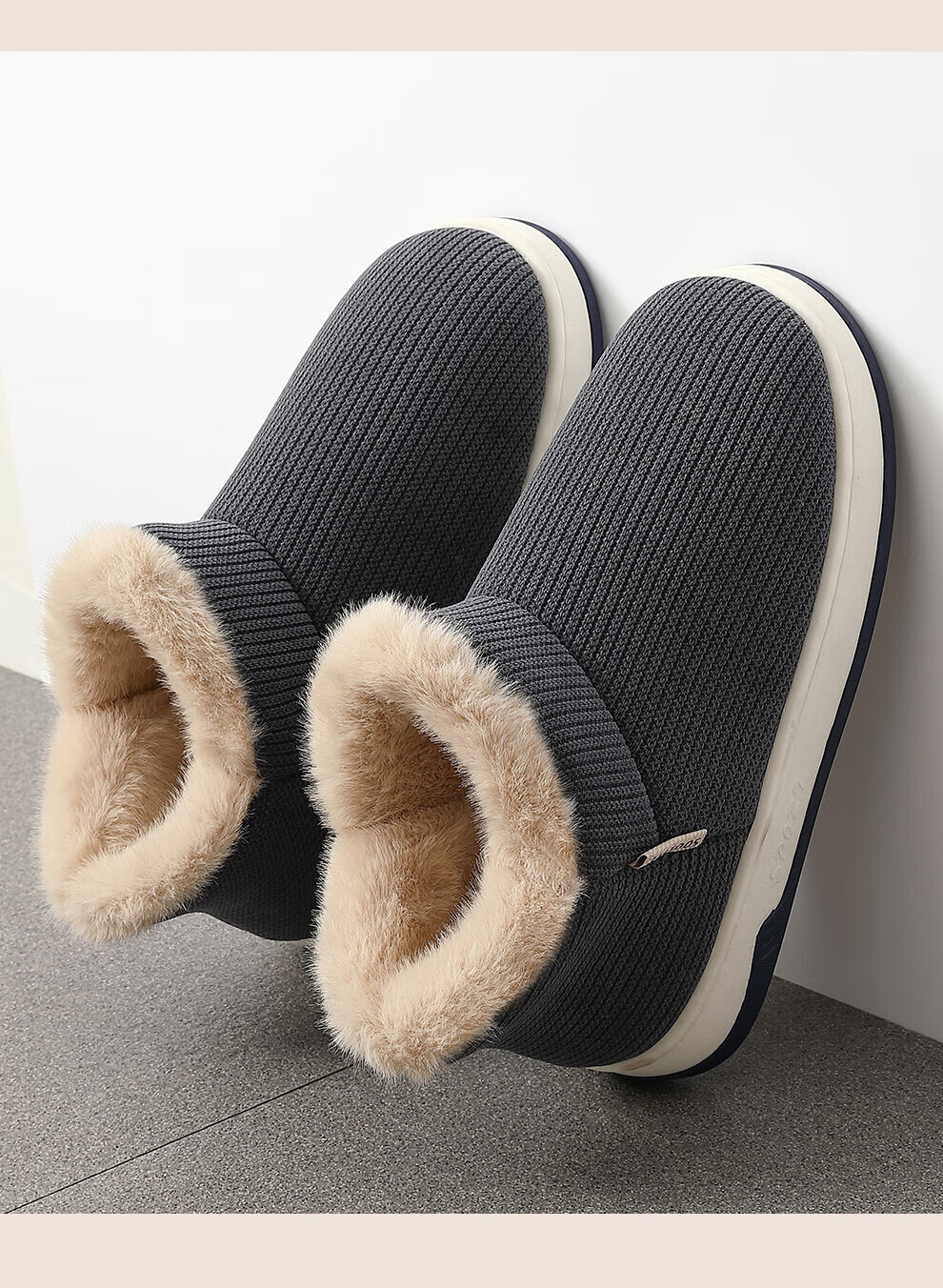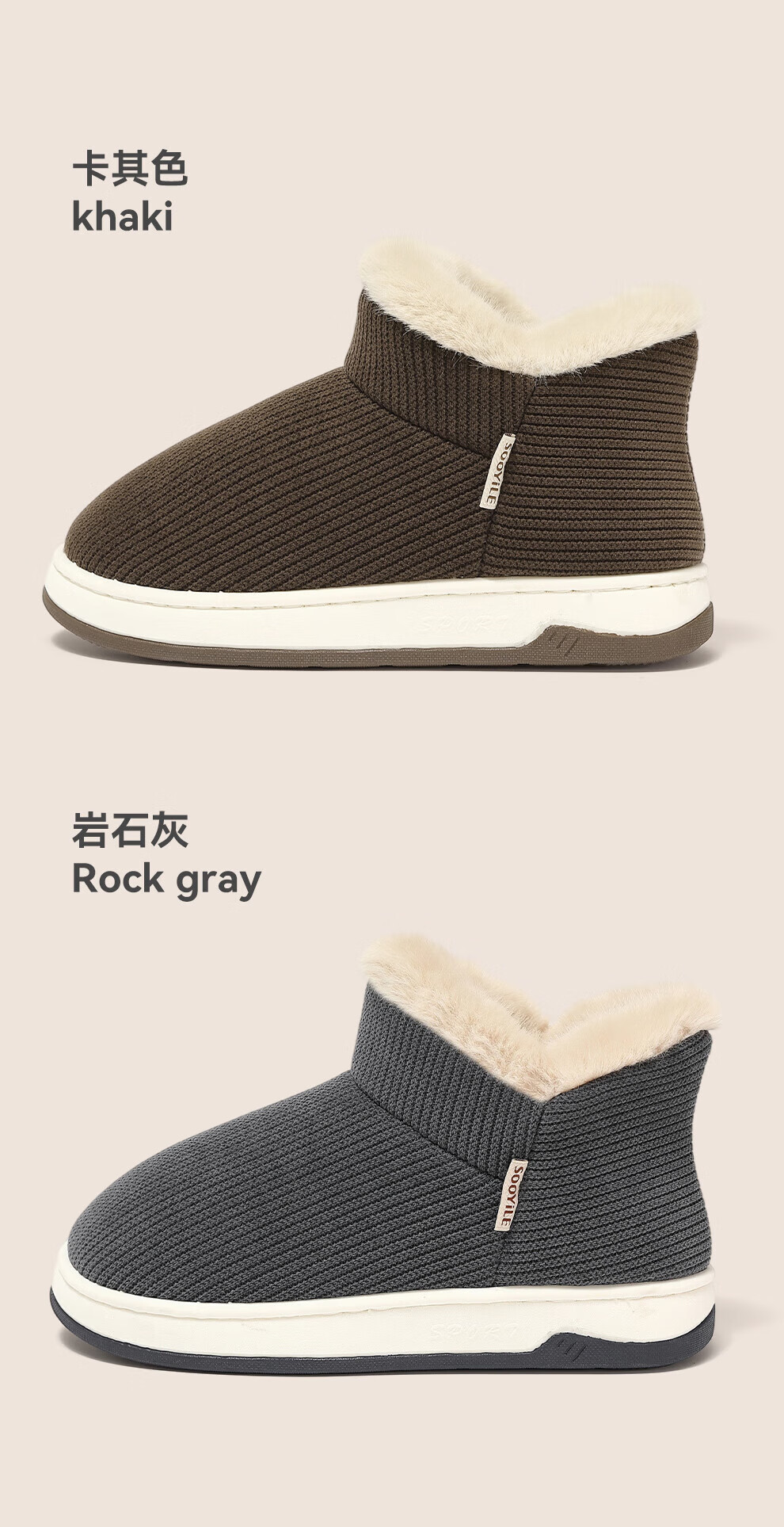 FZT老人防滑棉拖鞋女士冬季包跟室内家居2025新款毛毛加绒厚底棉鞋女 卡其色 36-37 正码