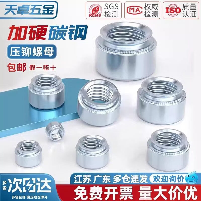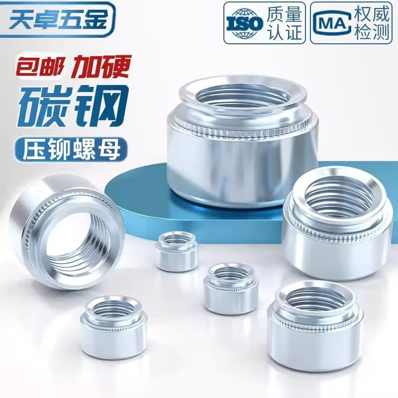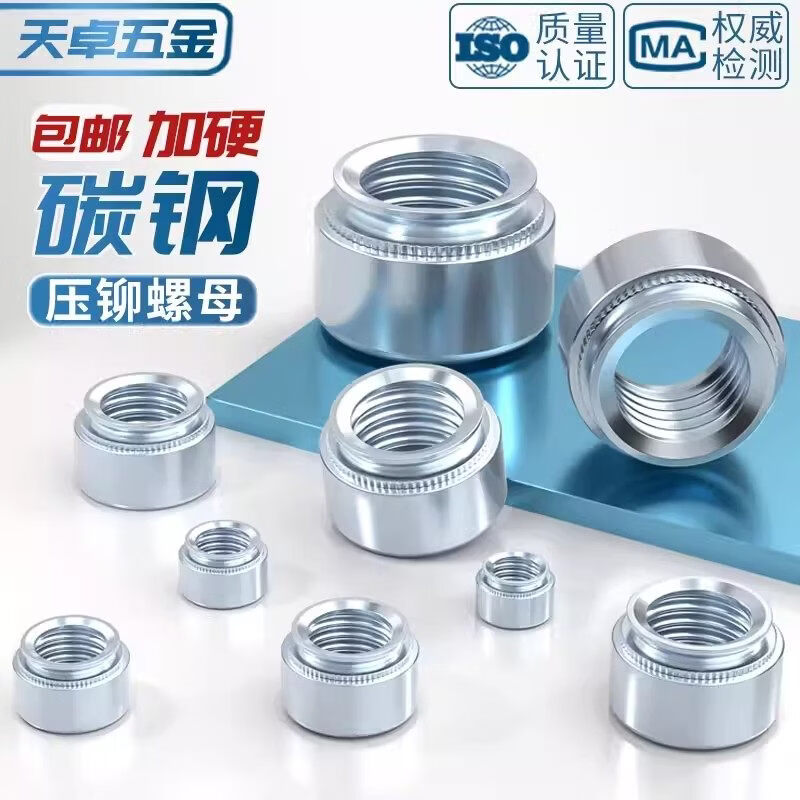 天卓五金国标压铆螺母镀锌压板螺帽压卯件s-m2m3m4m5-0m6-1m8-2m10m12L S-M2-0 (100个/蓝白锌)