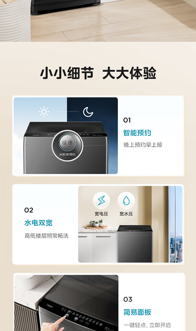 美的(Midea)随心洗 波轮洗衣机全自动家用 8公斤 直驱变频 专利免清洗 MB80V36DT 以旧换新 国家补贴 京东自营
