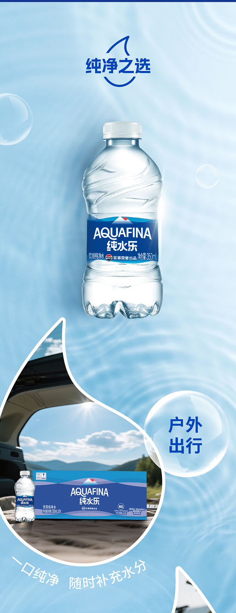 百事可乐【热门商品】纯水乐 纯净水 饮用水 350ml*24小瓶装 办公商务会议