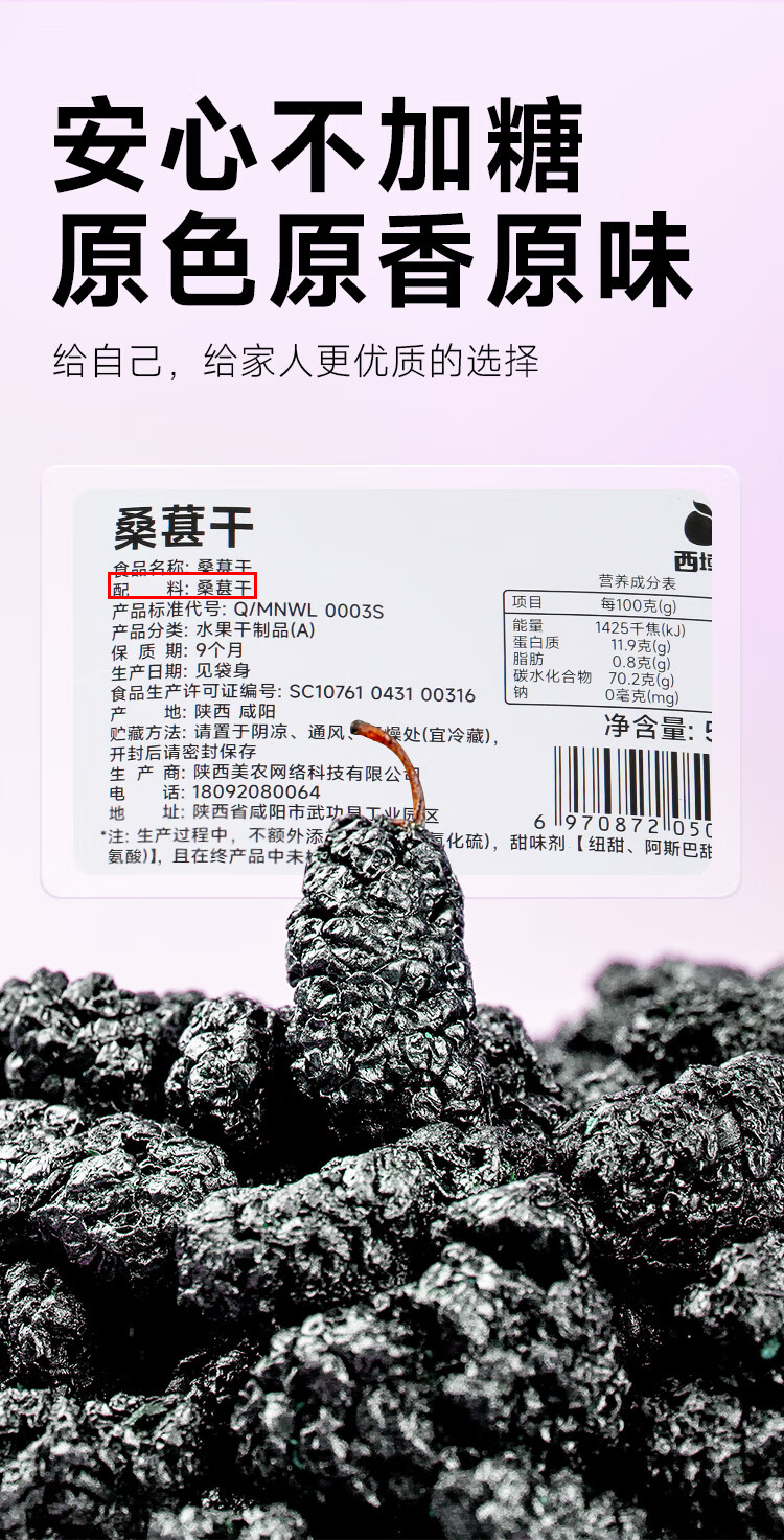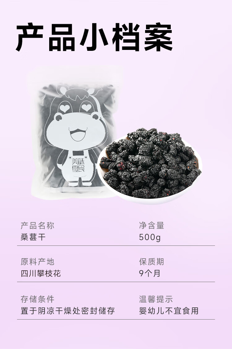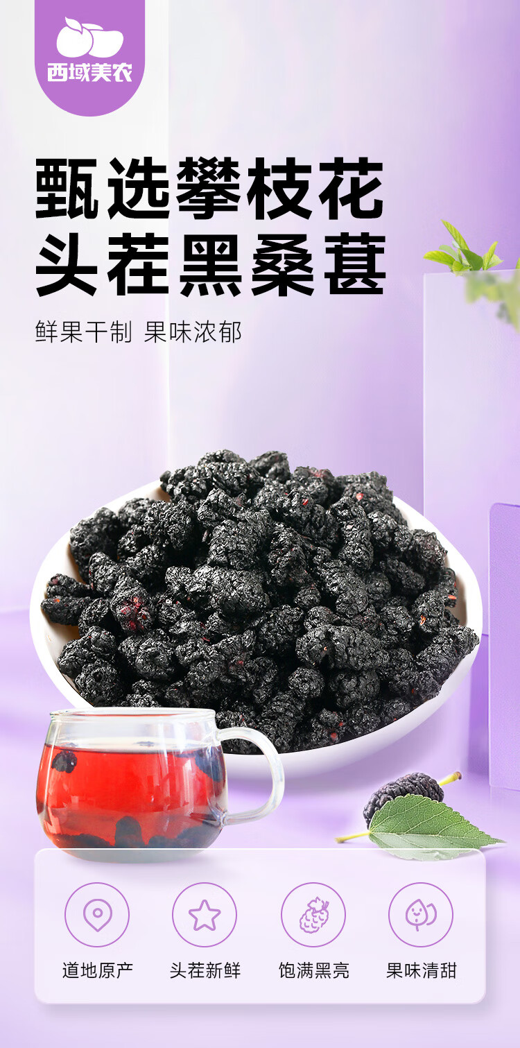 西域美农桑葚干500g 精选免洗攀枝花桑子 养生茶黑桑葚干吃泡酒泡茶