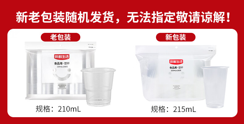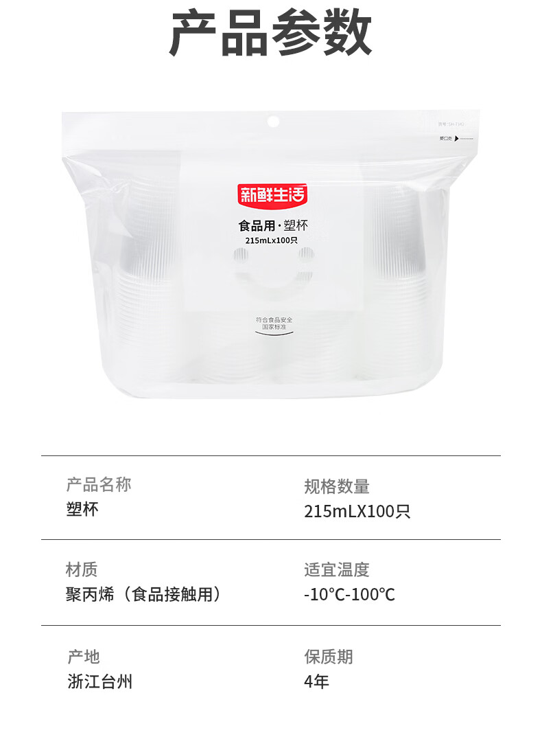 新鲜生活一次性杯子航空杯加厚食品级塑料水杯京东自营太空杯210ml*100只