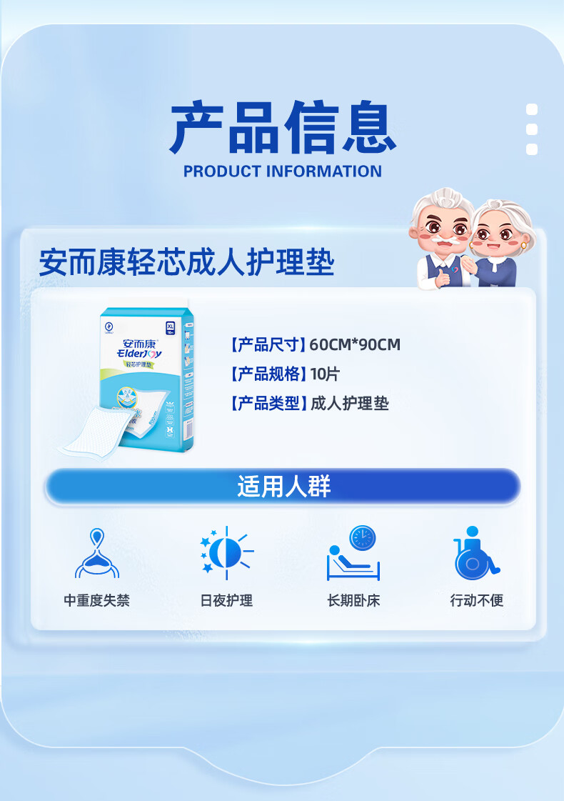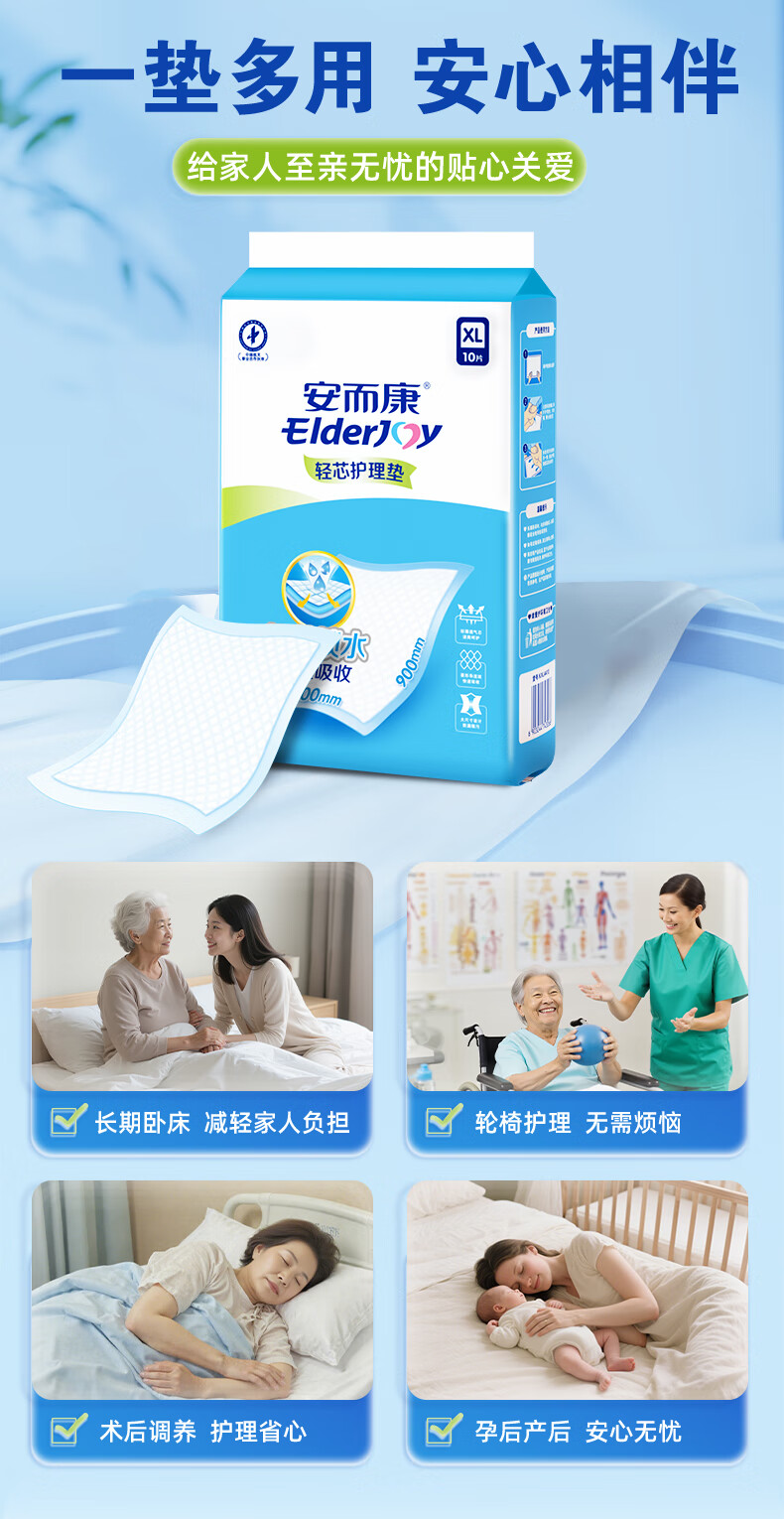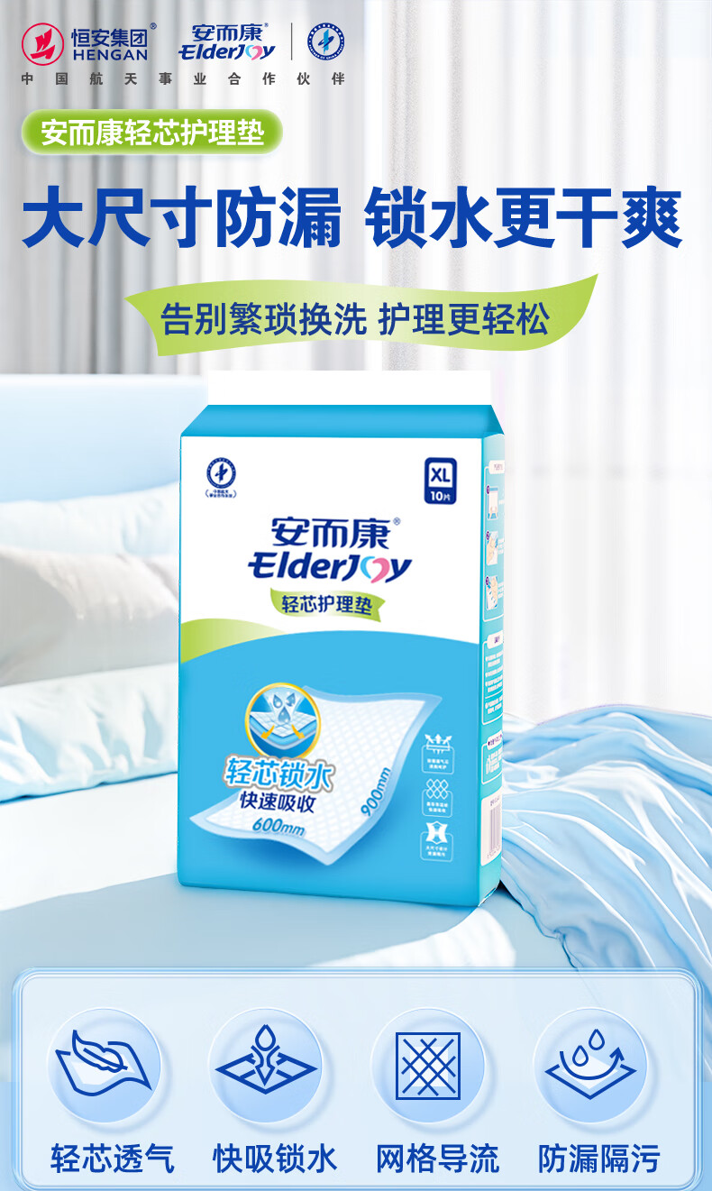 安而康(Elderjoy)轻芯护理垫XL码10片60*90cm隔尿垫老人护理垫产妇婴儿产褥垫