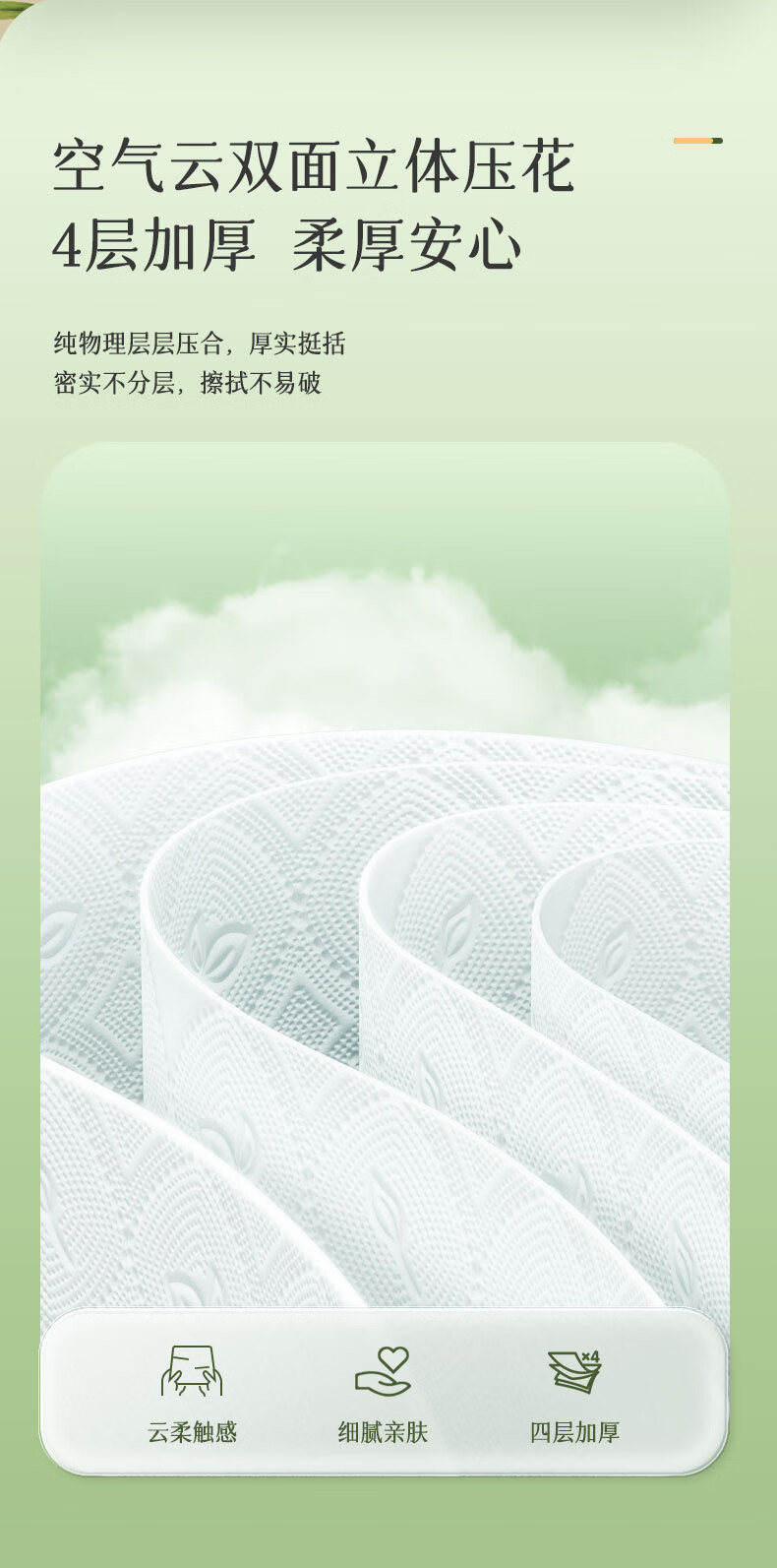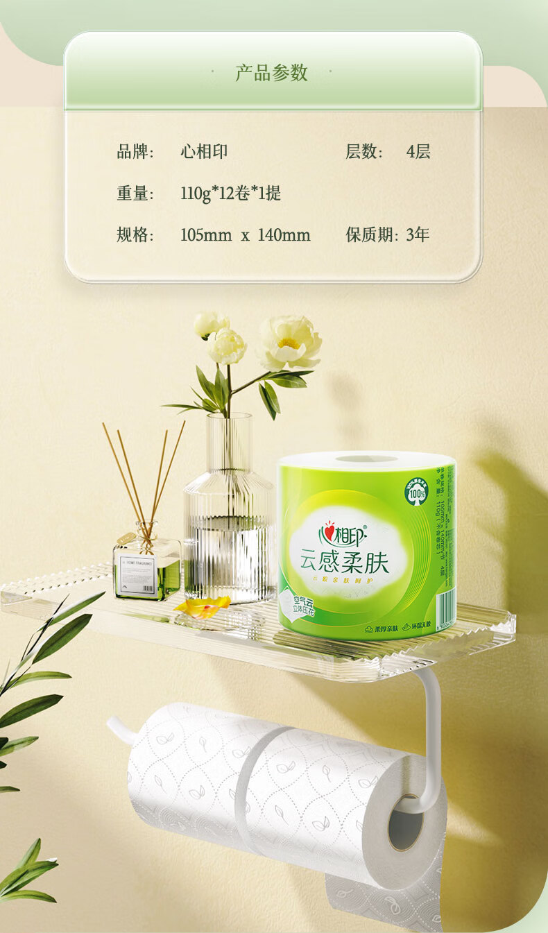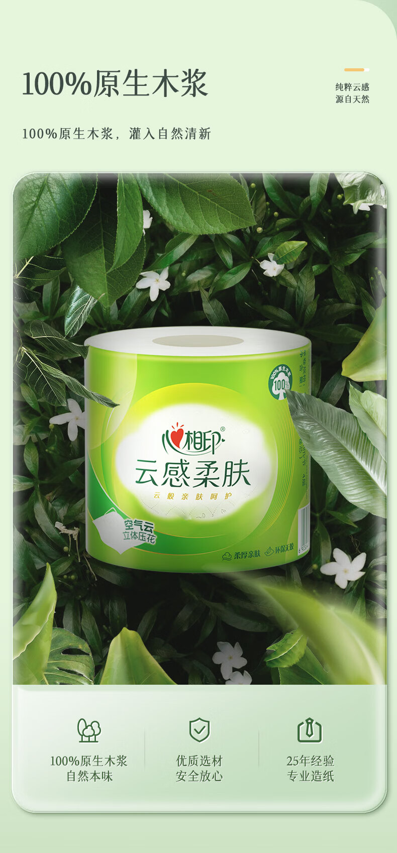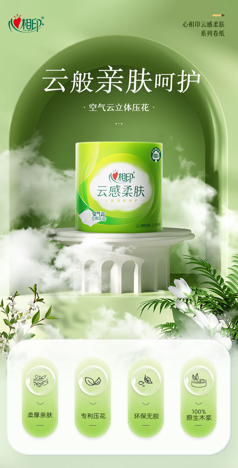 心相印【田栩宁推荐】有芯卷纸云感柔肤 4层110g*12卷 柔韧亲肤提装