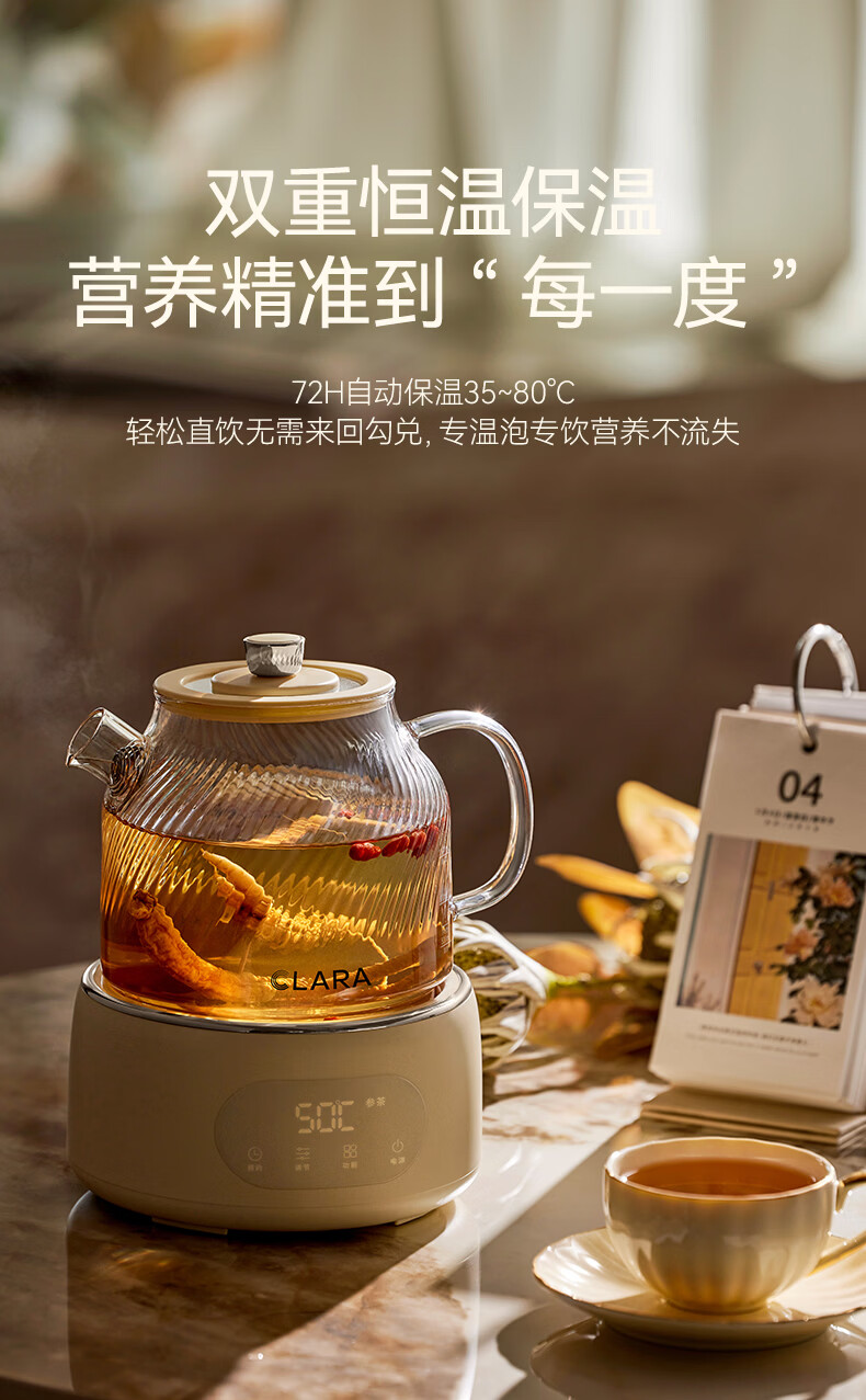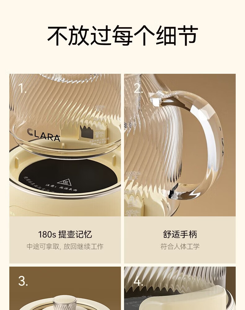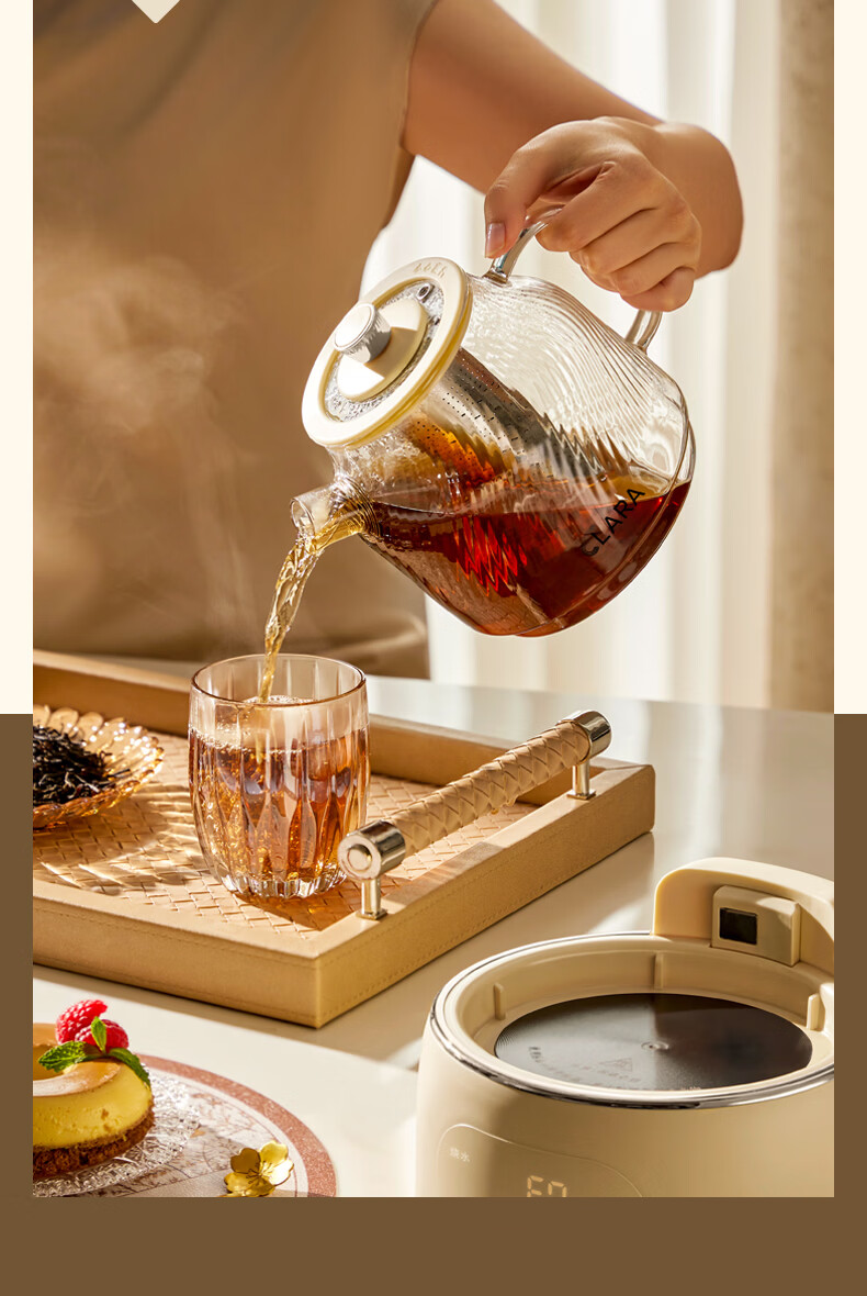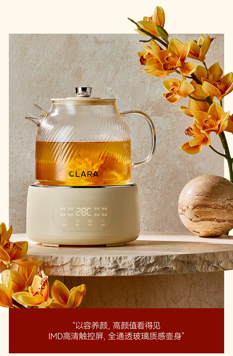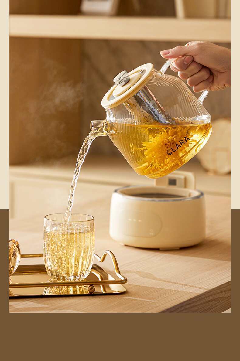 CLARA可莱养生壶全玻璃恒温壶煮茶壶煮茶器1L办公室必备家用花茶壶烧水壶电热水壶(标准款)