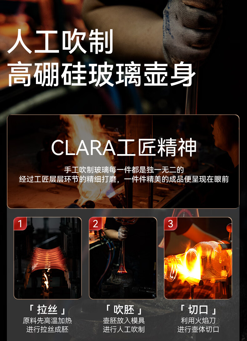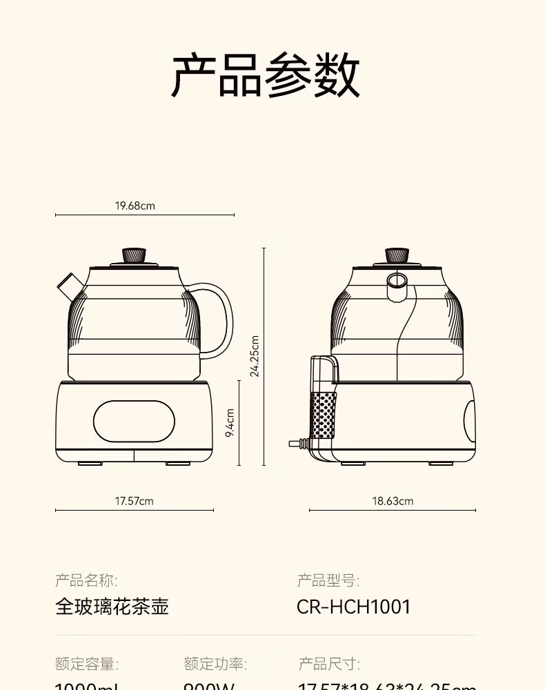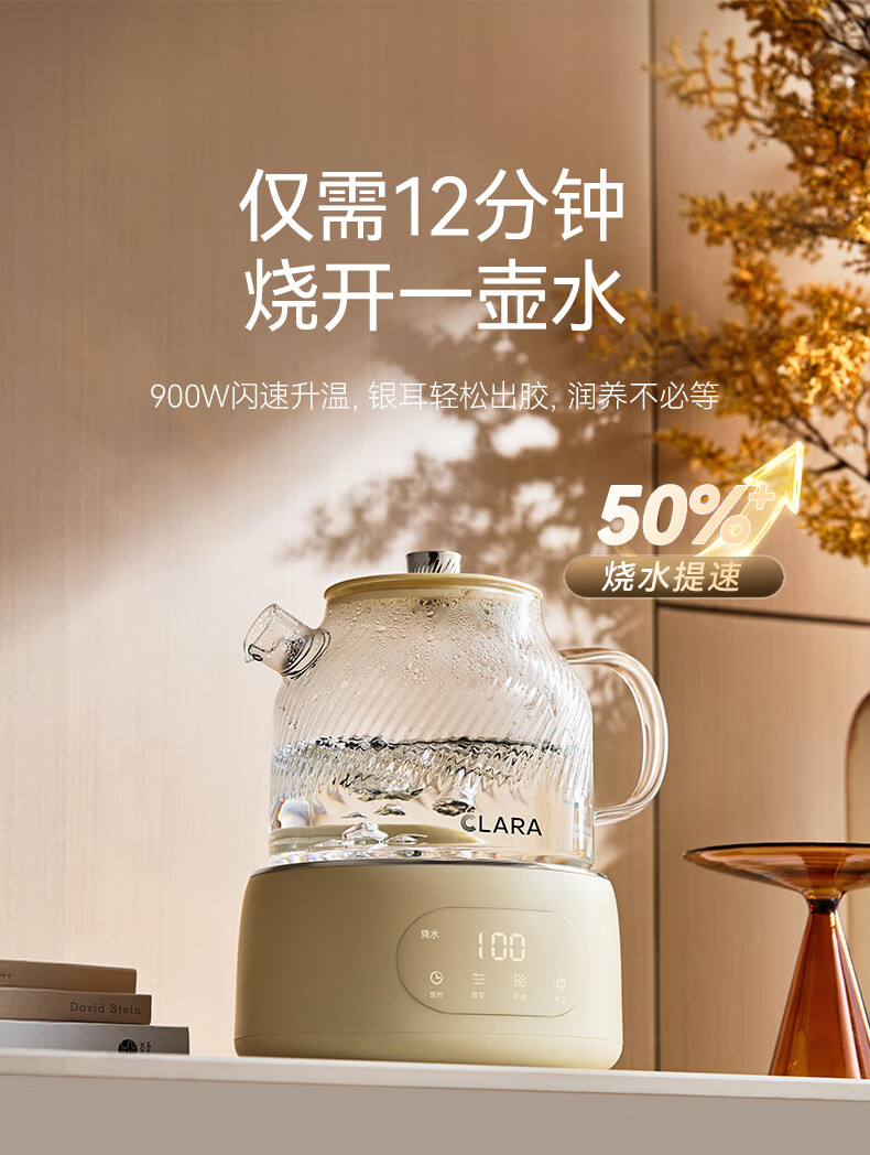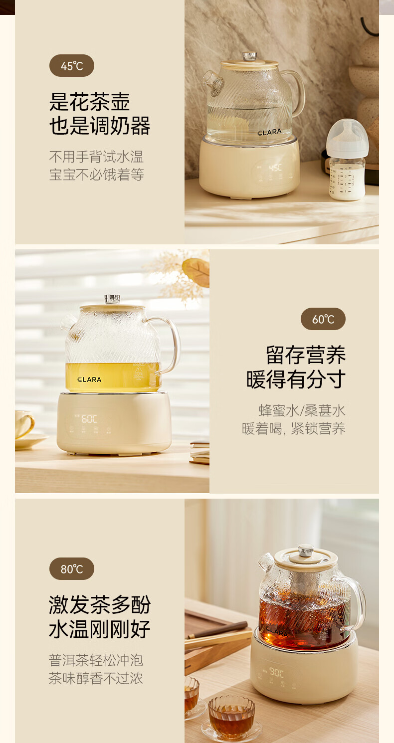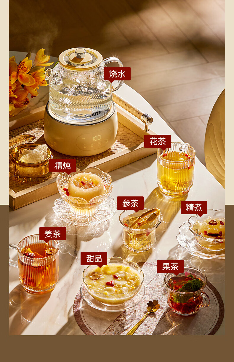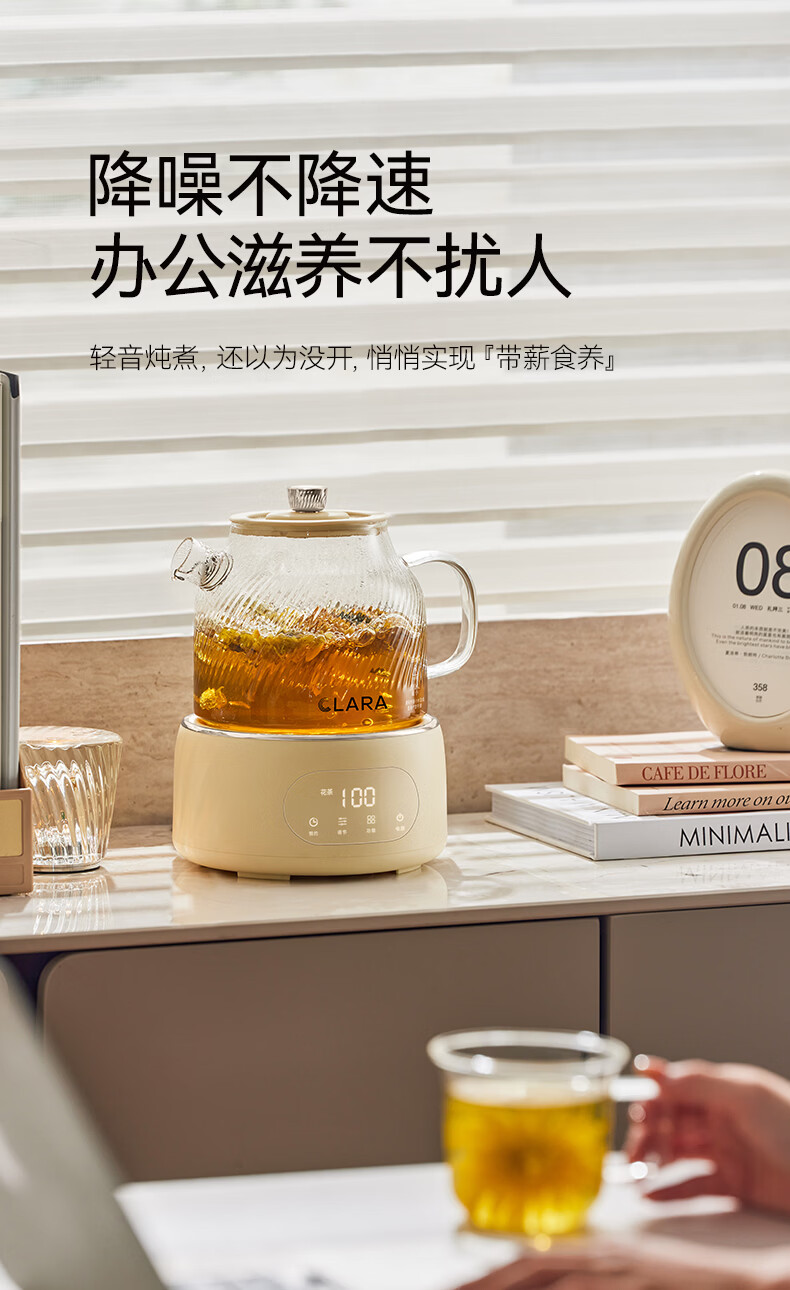 CLARA可莱养生壶全玻璃恒温壶煮茶壶煮茶器1L办公室必备家用花茶壶烧水壶电热水壶(标准款)