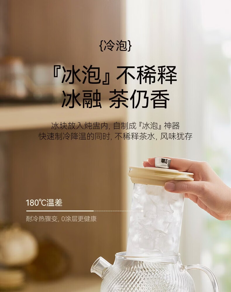 西可养生壶全玻璃大容量花茶壶0胶水0金属恒温炖煮煮茶器办公室保温壶家用烧水壶电热水壶1.5L带炖盅