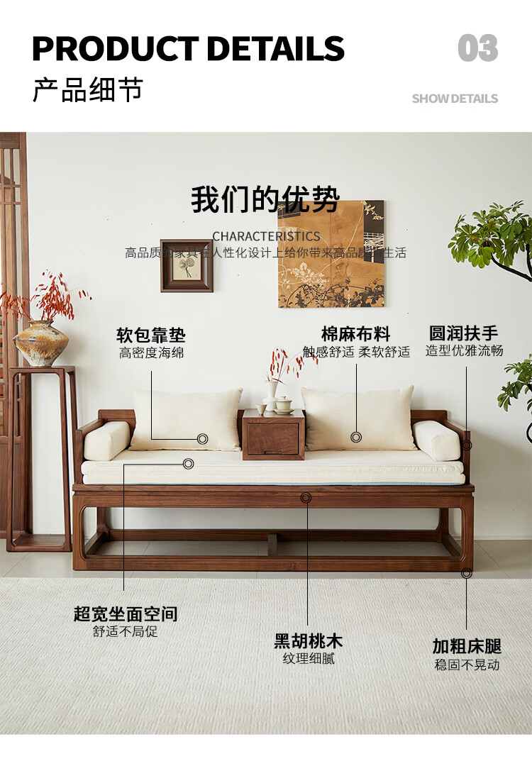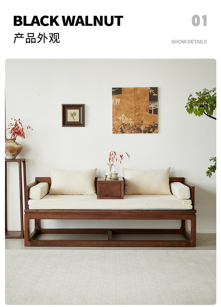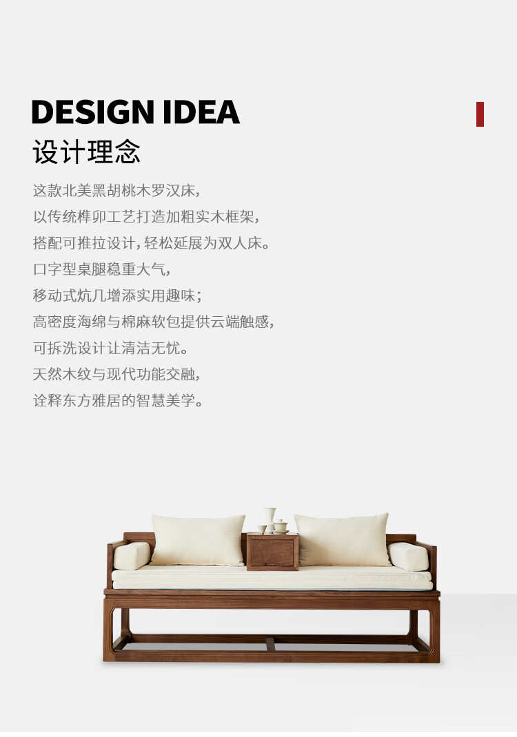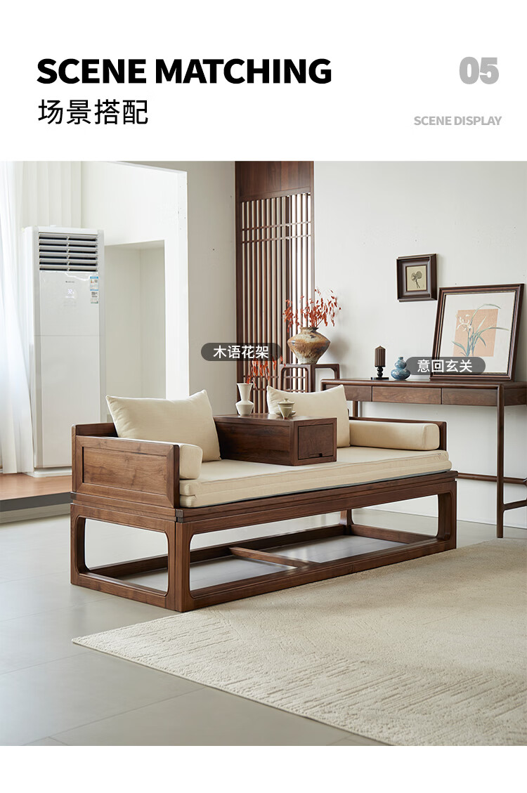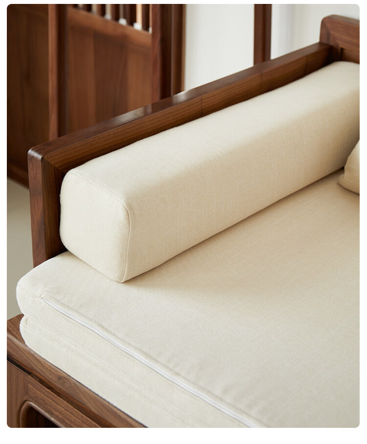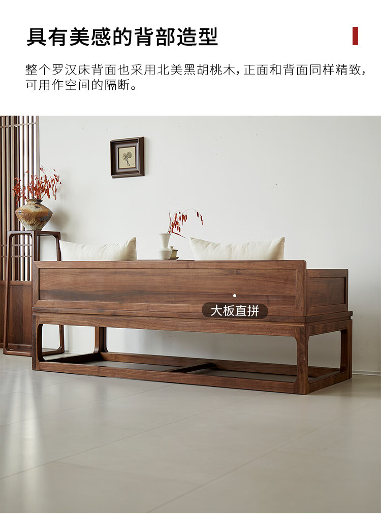 梵而罗汉床实木沙发床北美黑胡桃新中式坐卧两用推拉式布艺罗汉沙发 玲珑罗汉床【两用-推拉式】