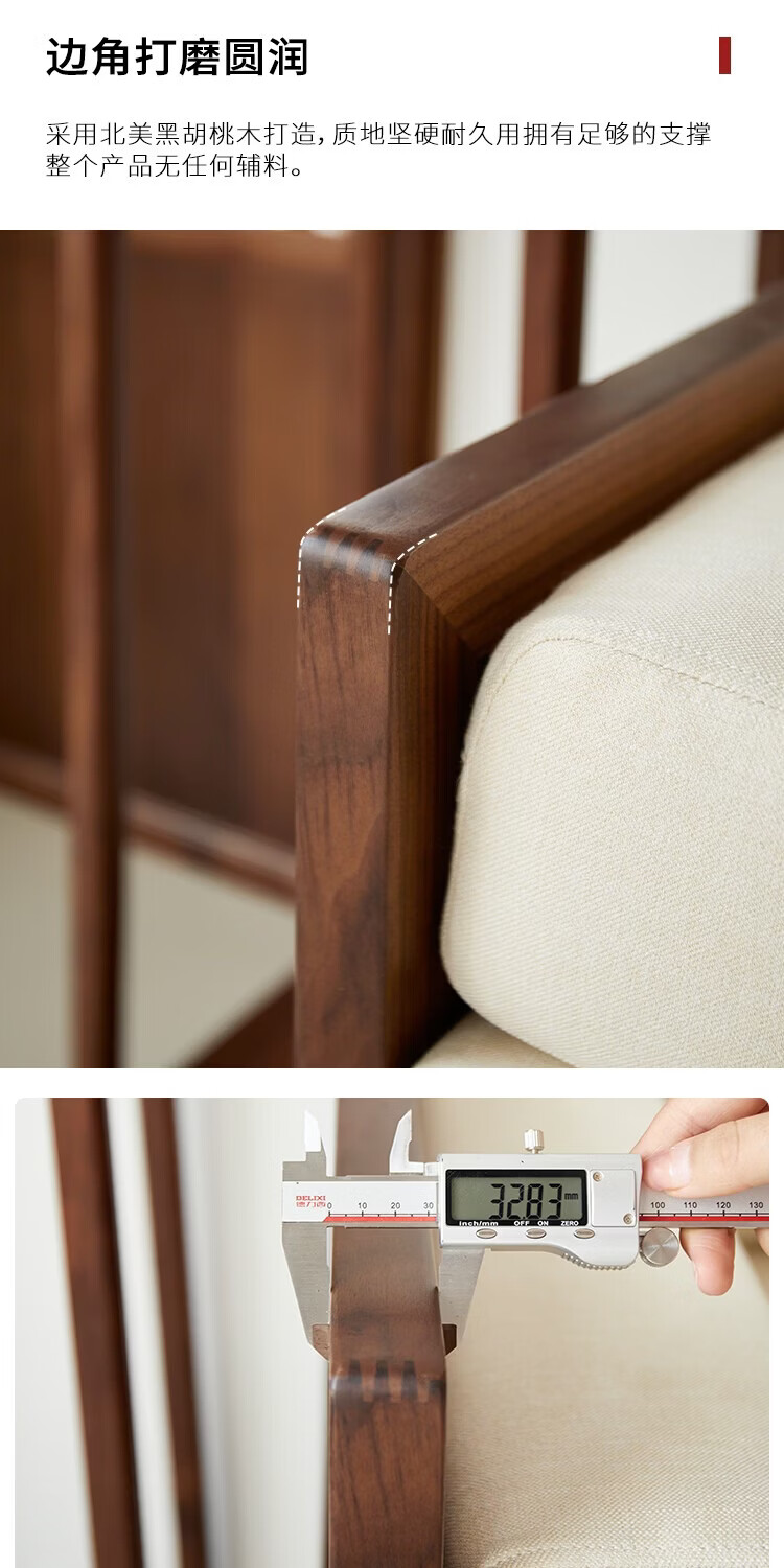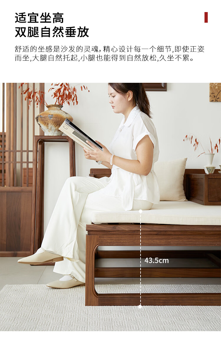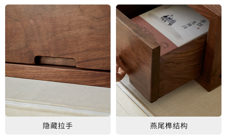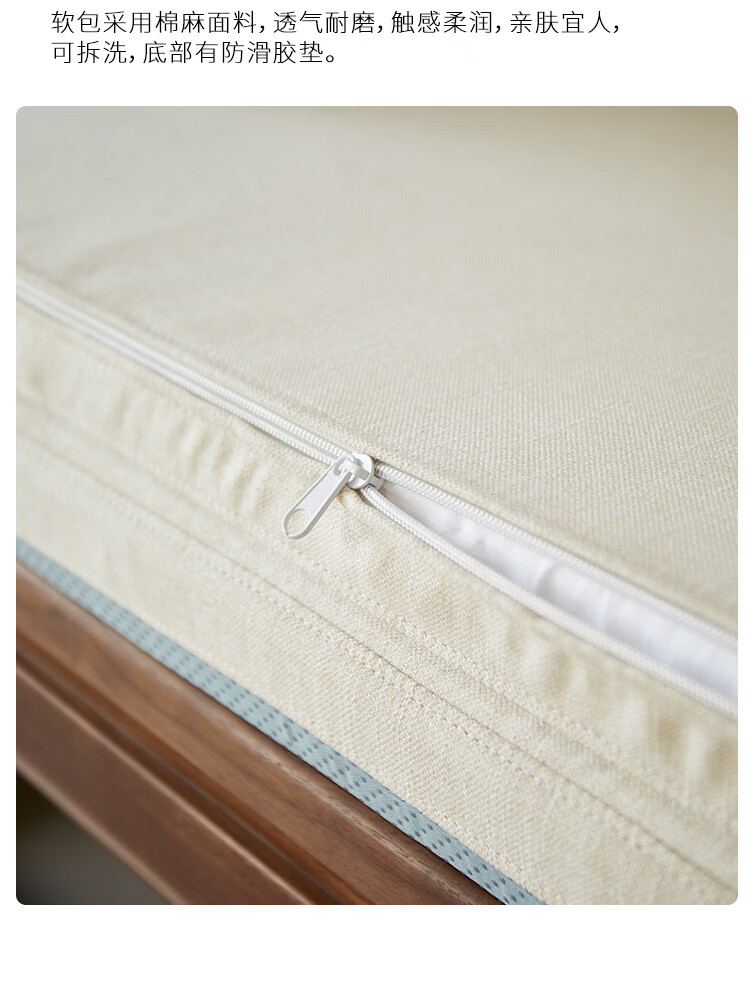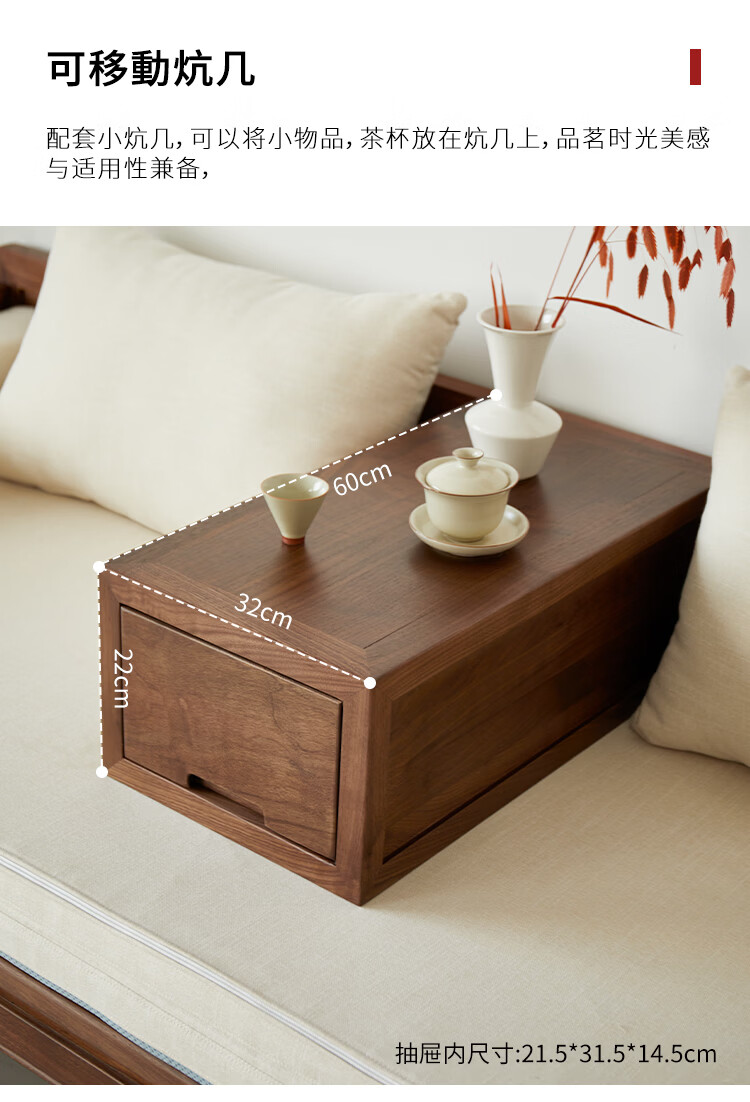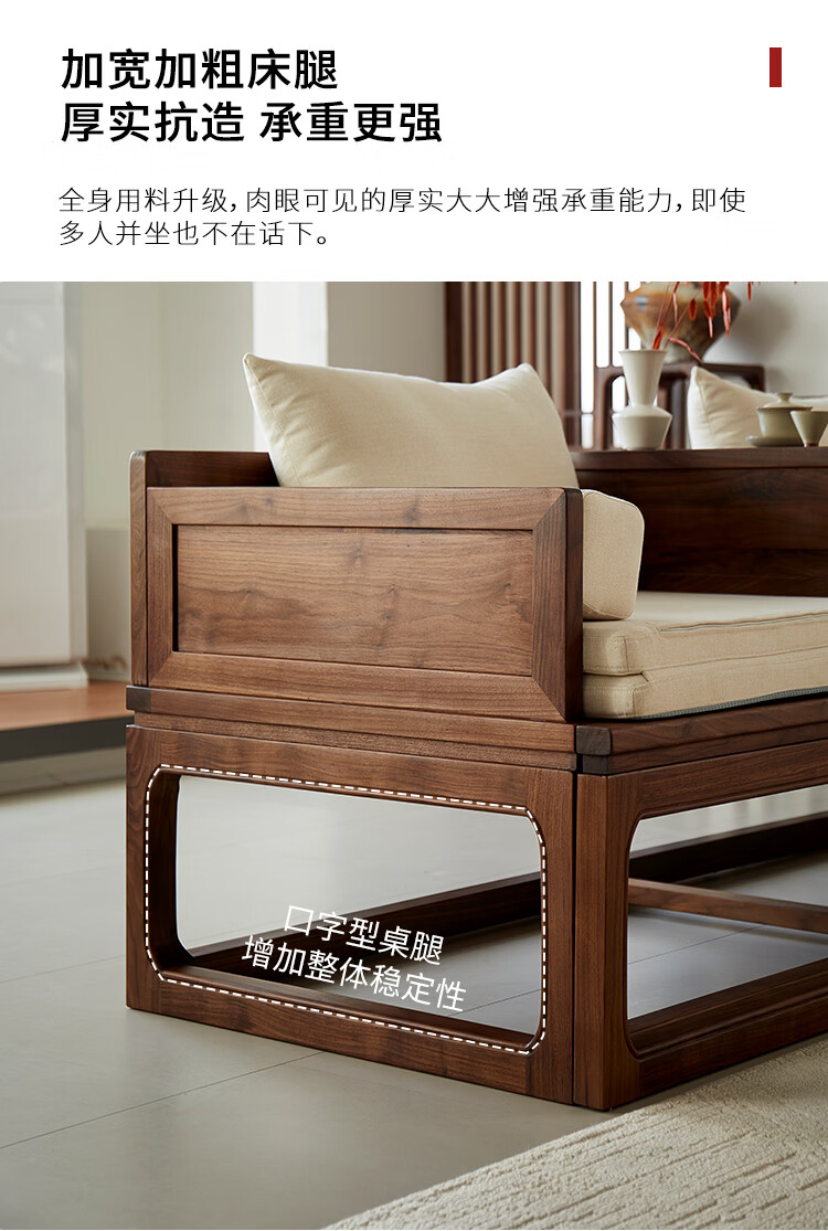 梵而罗汉床实木沙发床北美黑胡桃新中式坐卧两用推拉式布艺罗汉沙发 玲珑罗汉床【两用-推拉式】