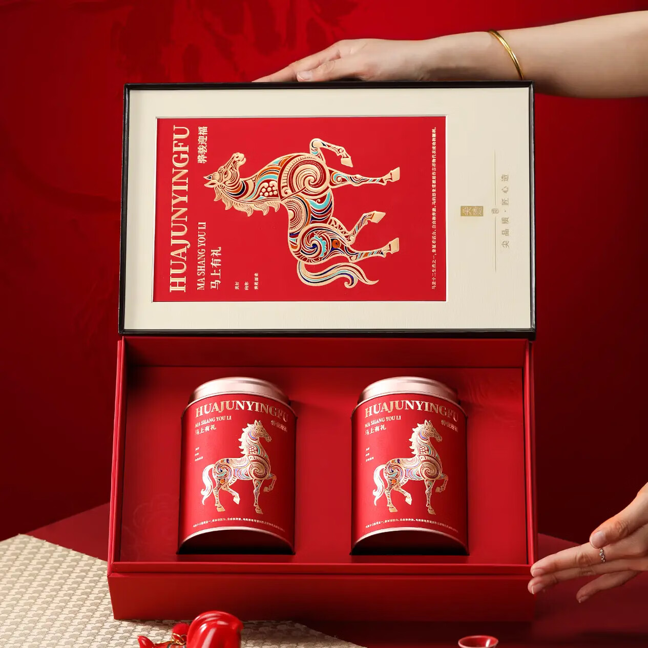 立香园年货送礼金骏眉红茶福建武夷原产蜜香型礼盒装铁盒罐装送长辈茶叶 马年新款礼盒250克摆泡独立包装