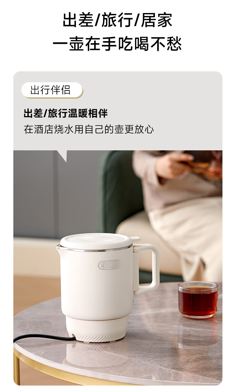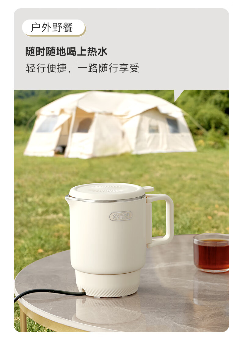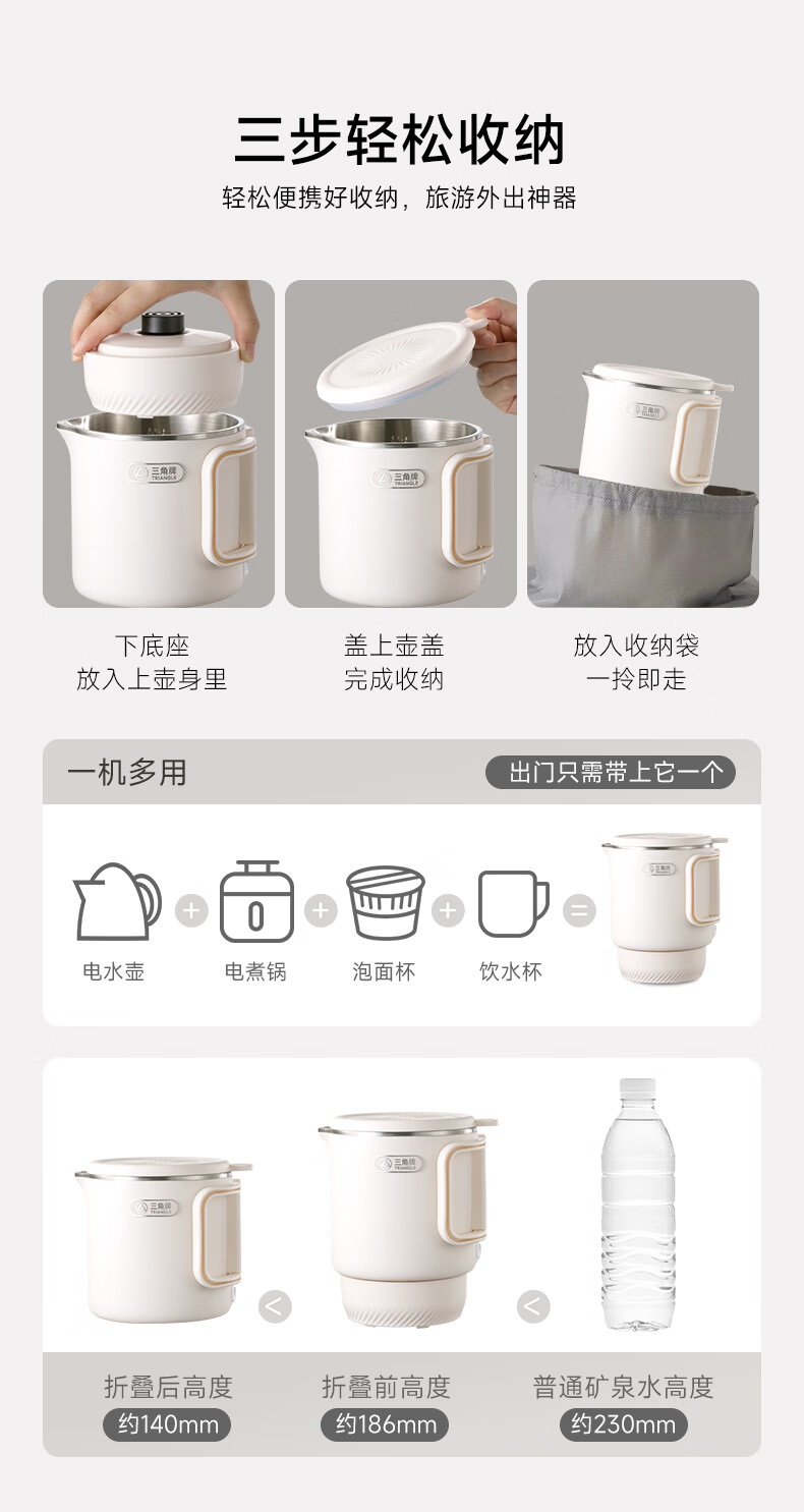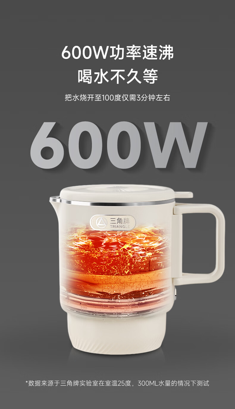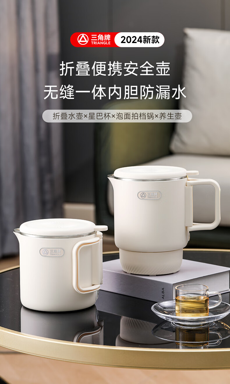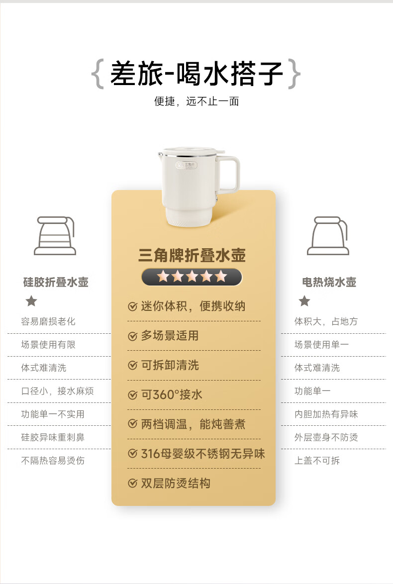 三角牌(Triangle)便携式折叠烧水壶食品级316不锈钢泡奶杯恒温电热水壶小型烧水杯旅行出差电水壶304保温杯 0.8L 【母婴级316不锈钢】送收纳袋