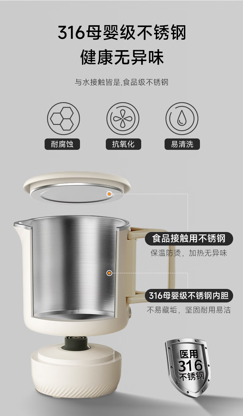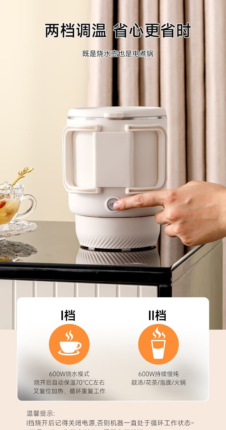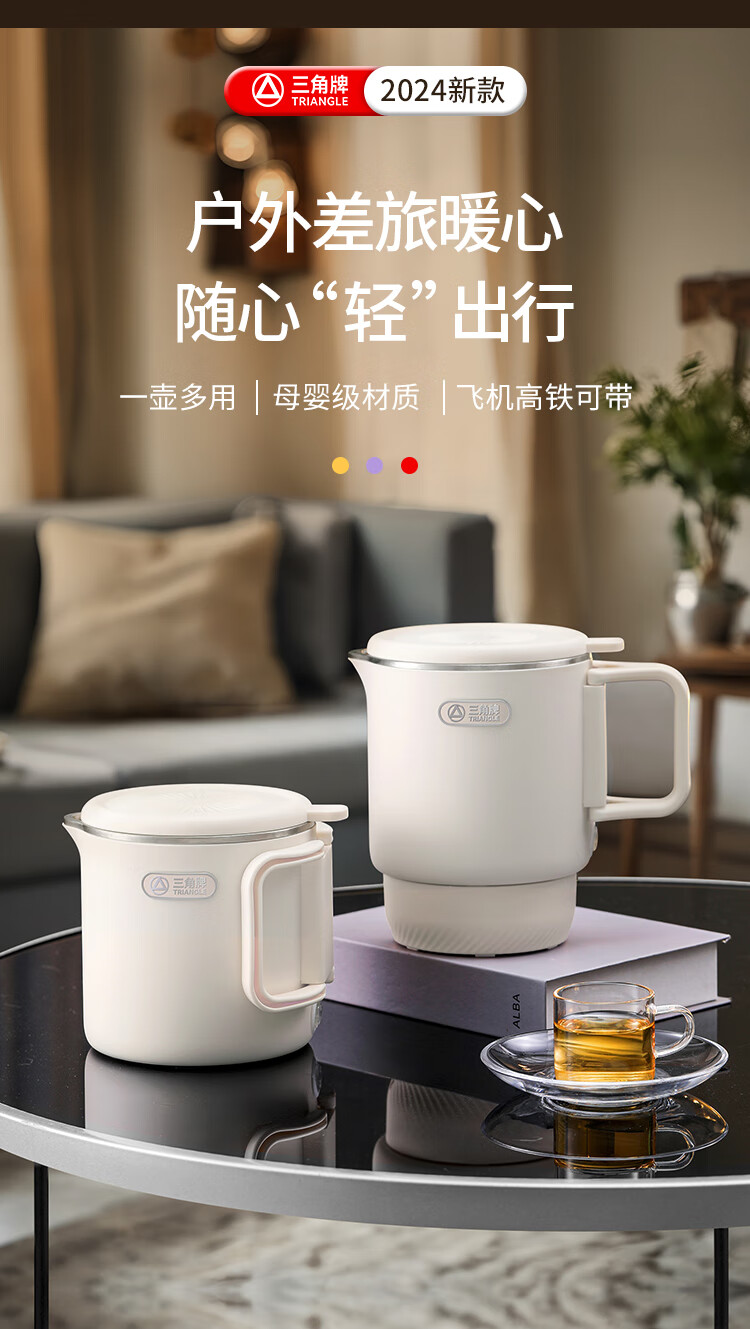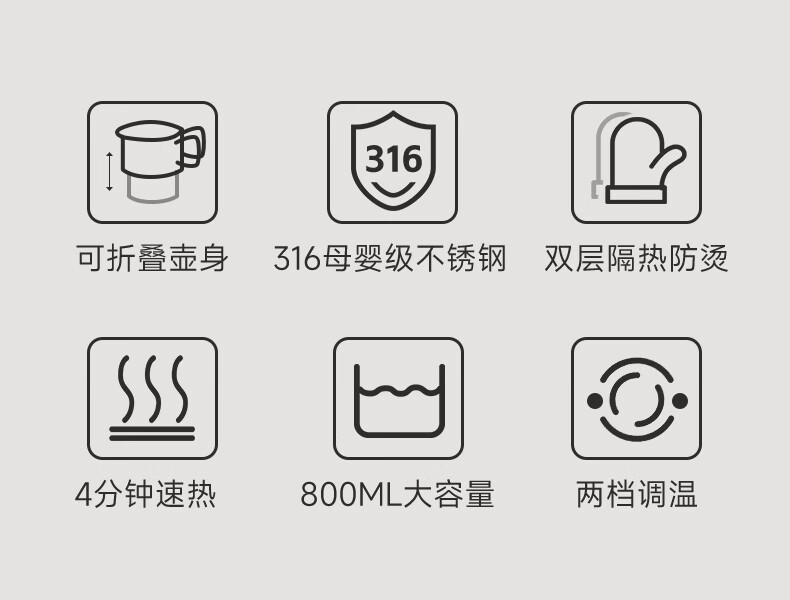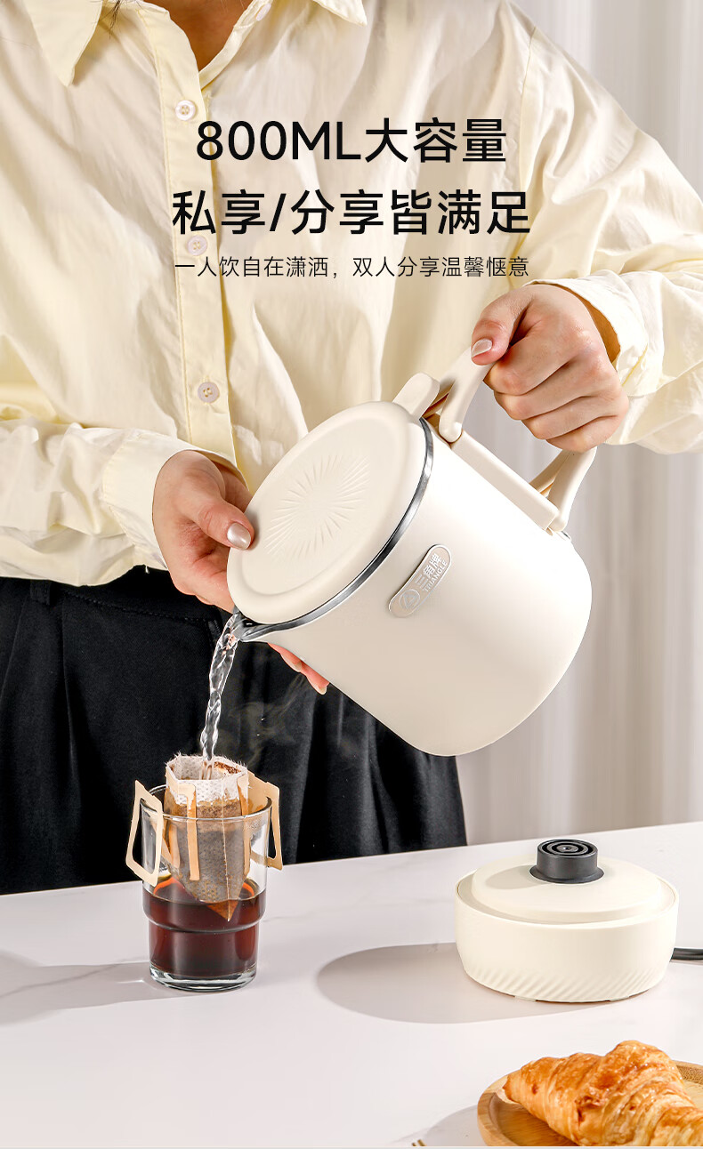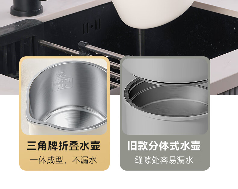 三角牌(Triangle)便携式折叠烧水壶食品级316不锈钢泡奶杯恒温电热水壶小型烧水杯旅行出差电水壶304保温杯 0.8L 【母婴级316不锈钢】送收纳袋