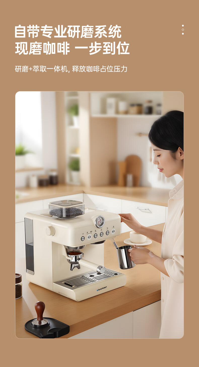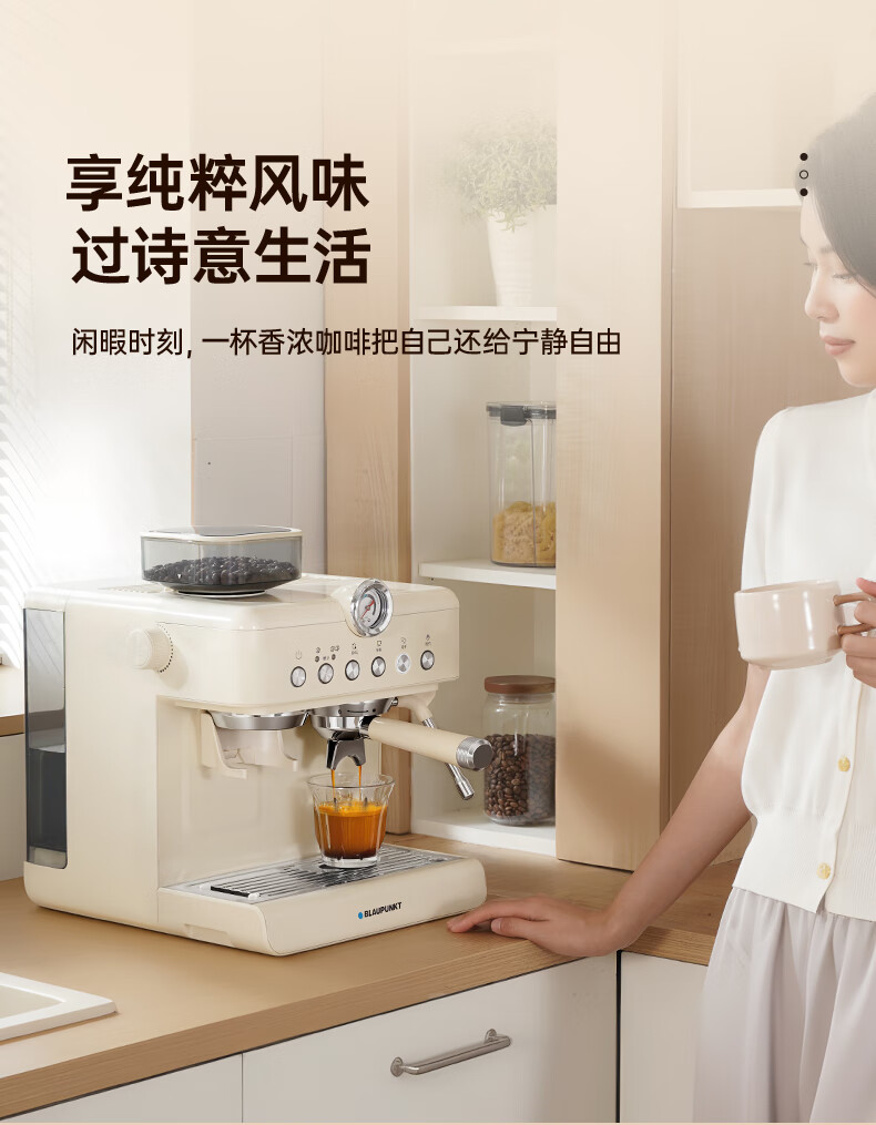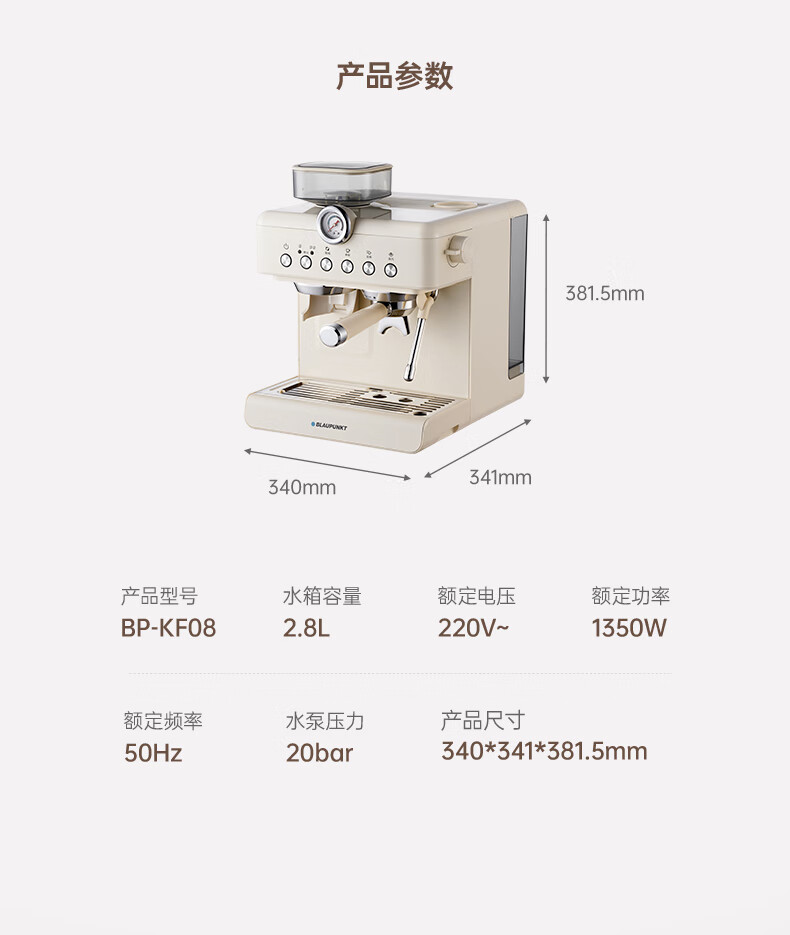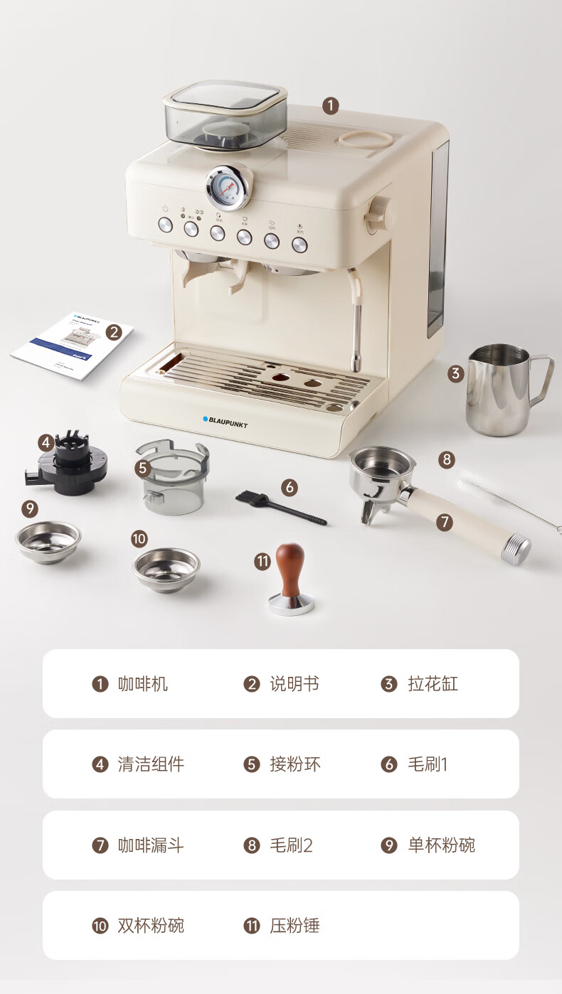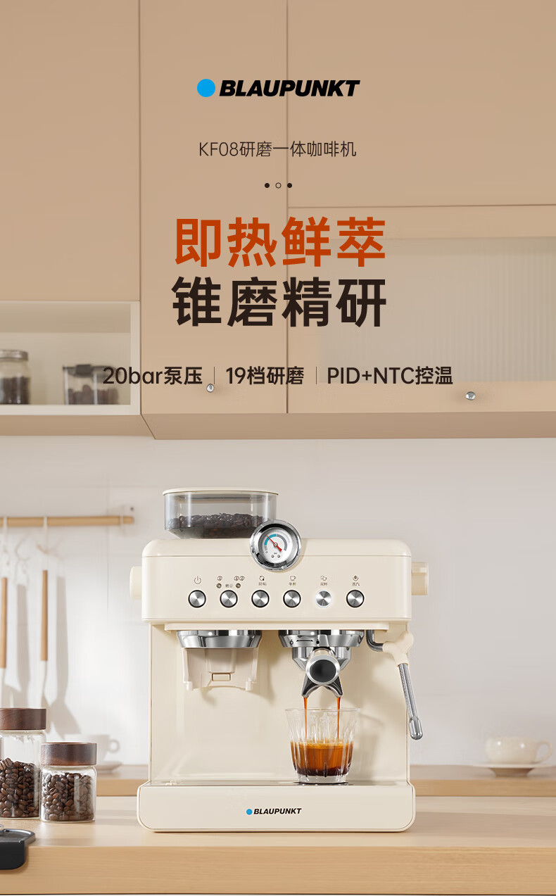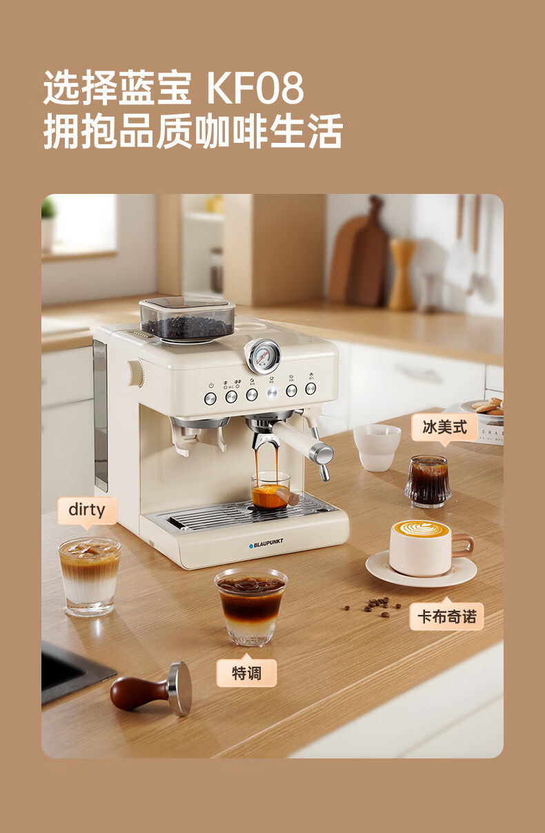 BLAUPUNKT【国家补贴15%】2025新品蓝宝研磨一体咖啡机58MM冲煮头家用小型浓缩意式美式全半自动咖啡机KF08 KF08官方标配