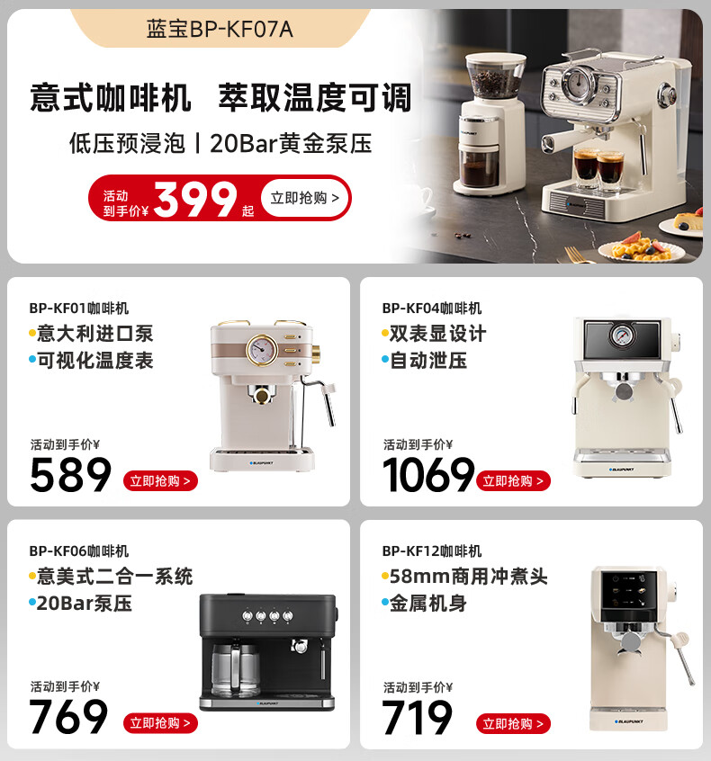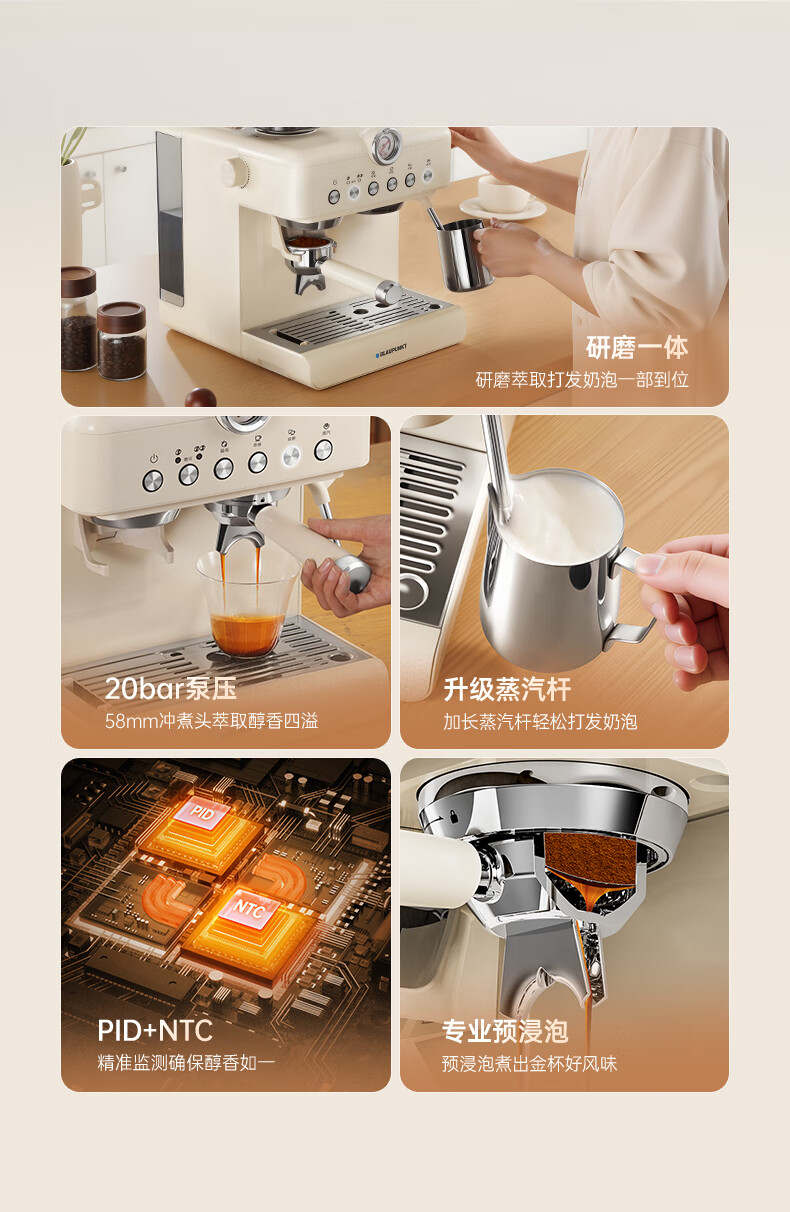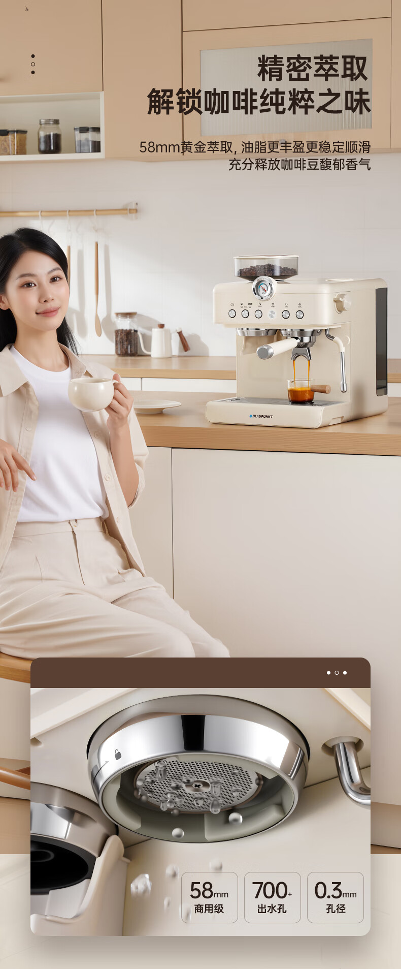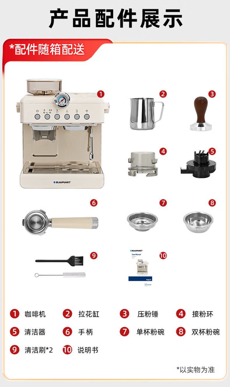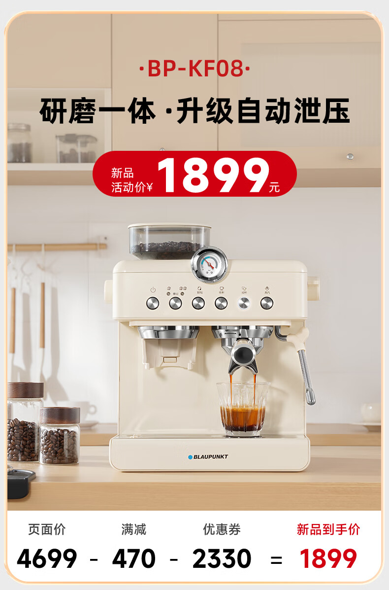 BLAUPUNKT【国家补贴15%】2025新品蓝宝研磨一体咖啡机58MM冲煮头家用小型浓缩意式美式全半自动咖啡机KF08 KF08官方标配