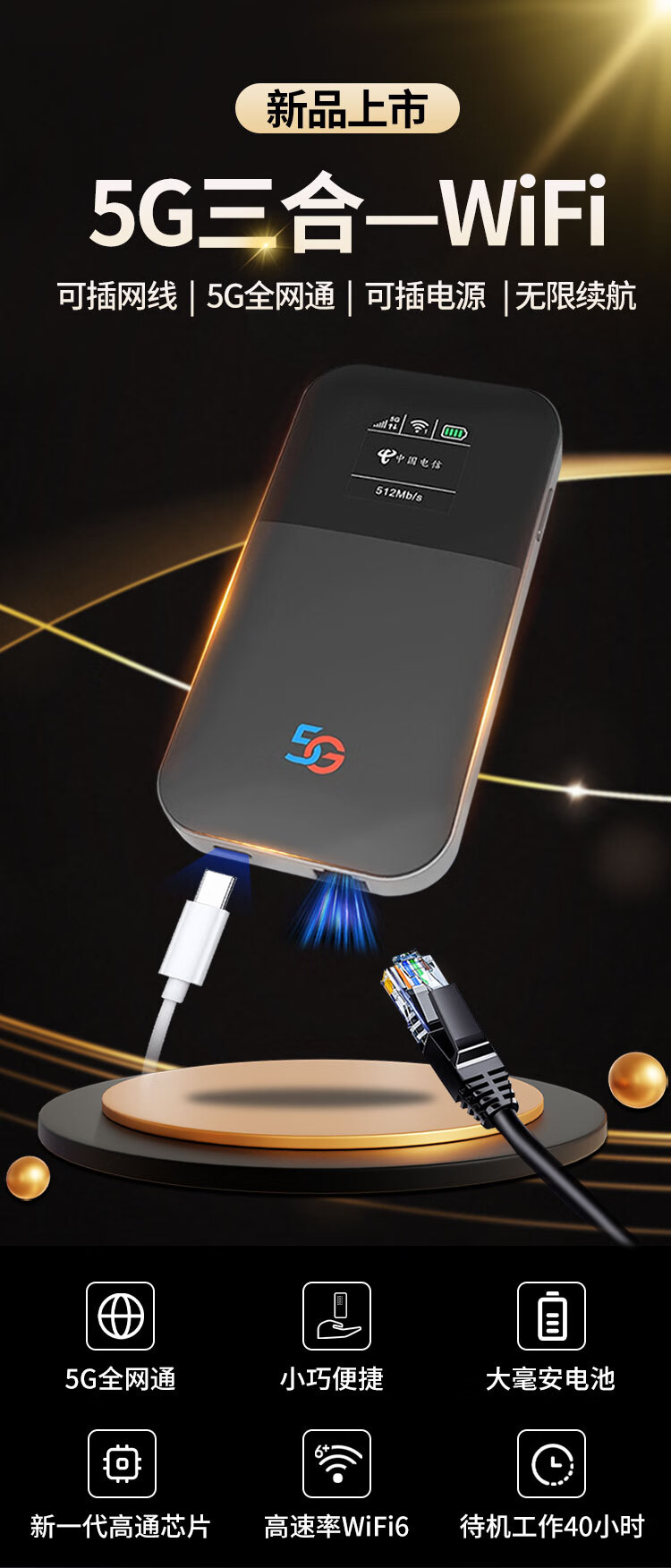 怀光长纵高通骁龙X55高端5G芯片随身wifi6便携式可插卡车载热点无限流量多功能千兆宽带无线网卡移动路由器 5G高通骁龙芯片 可插卡路由器三合一【全球通】