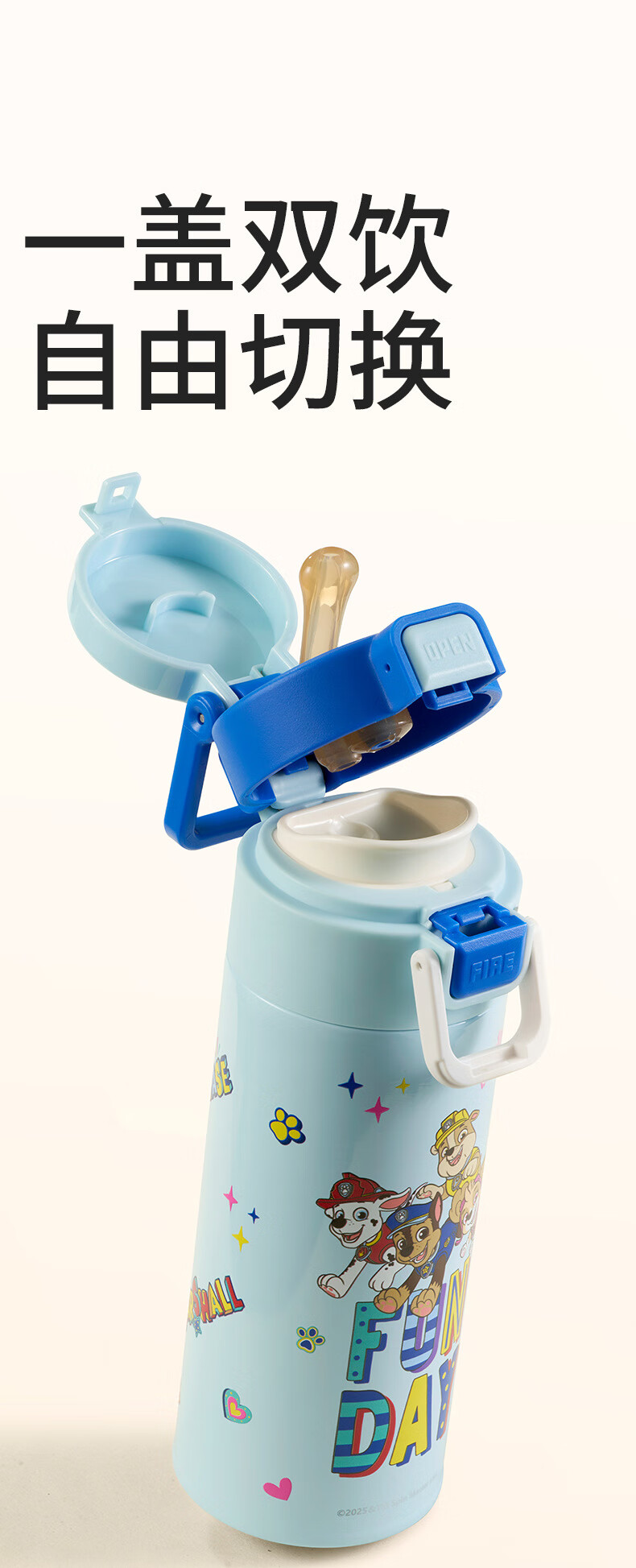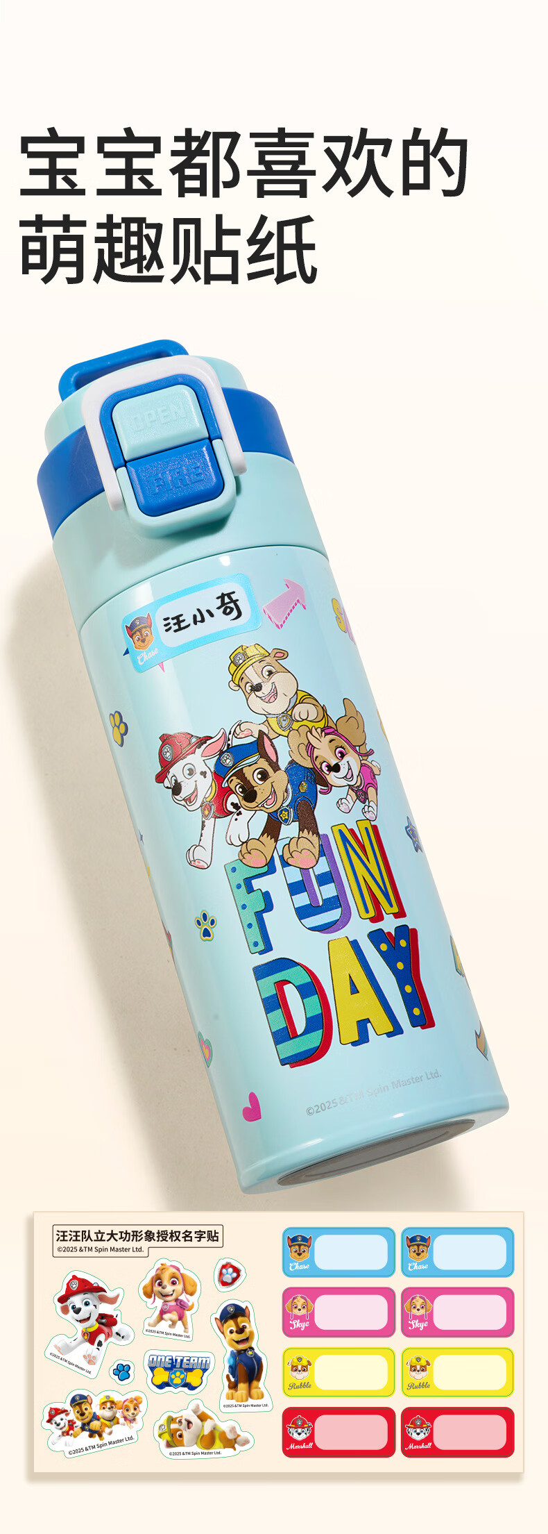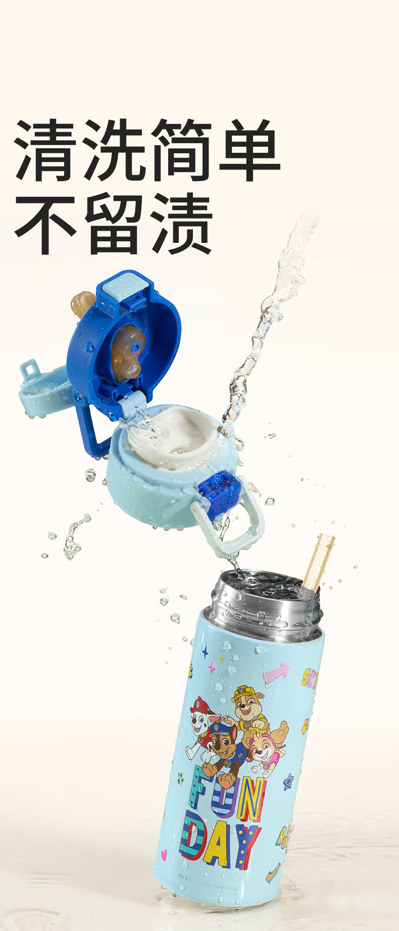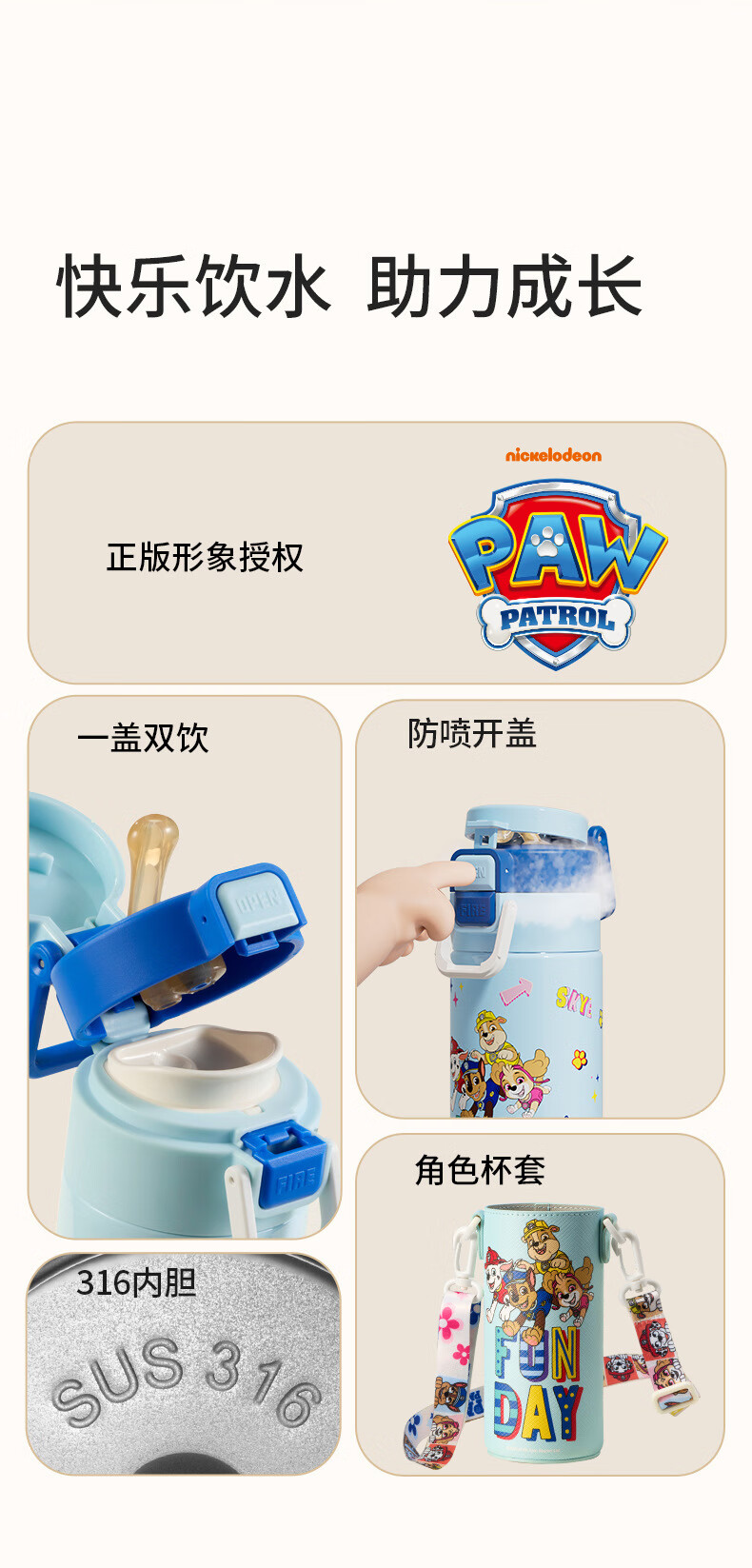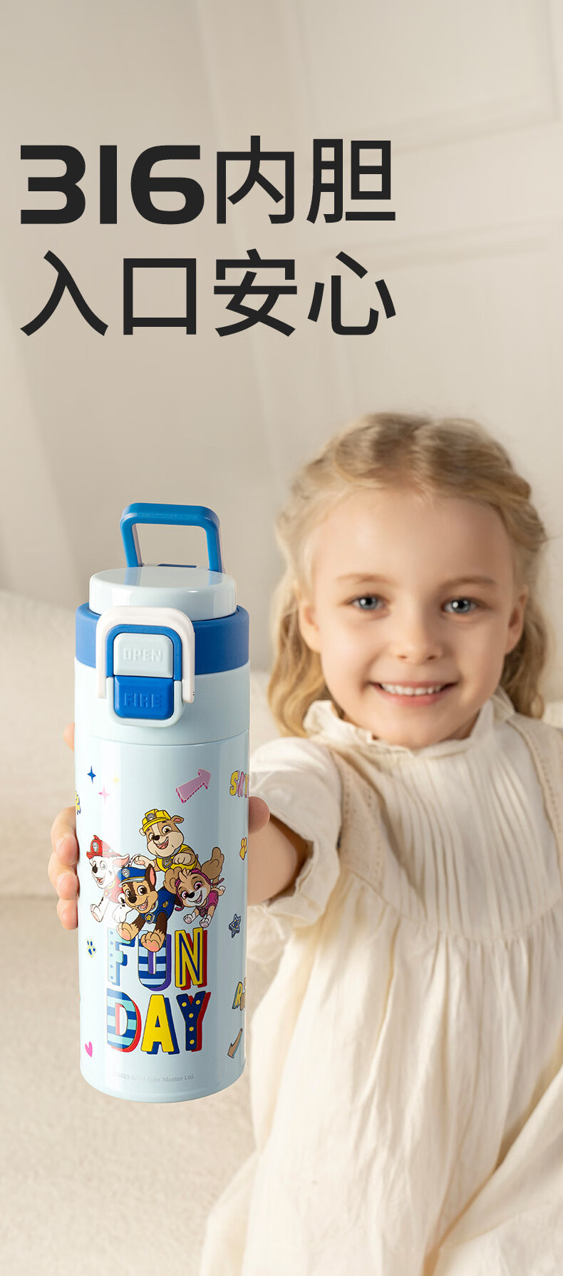 草莓生活汪汪队儿童316不锈钢保温杯小学生幼儿园卡通便携直饮吸管水杯子 蓝色【赠送清洁套装】400ml