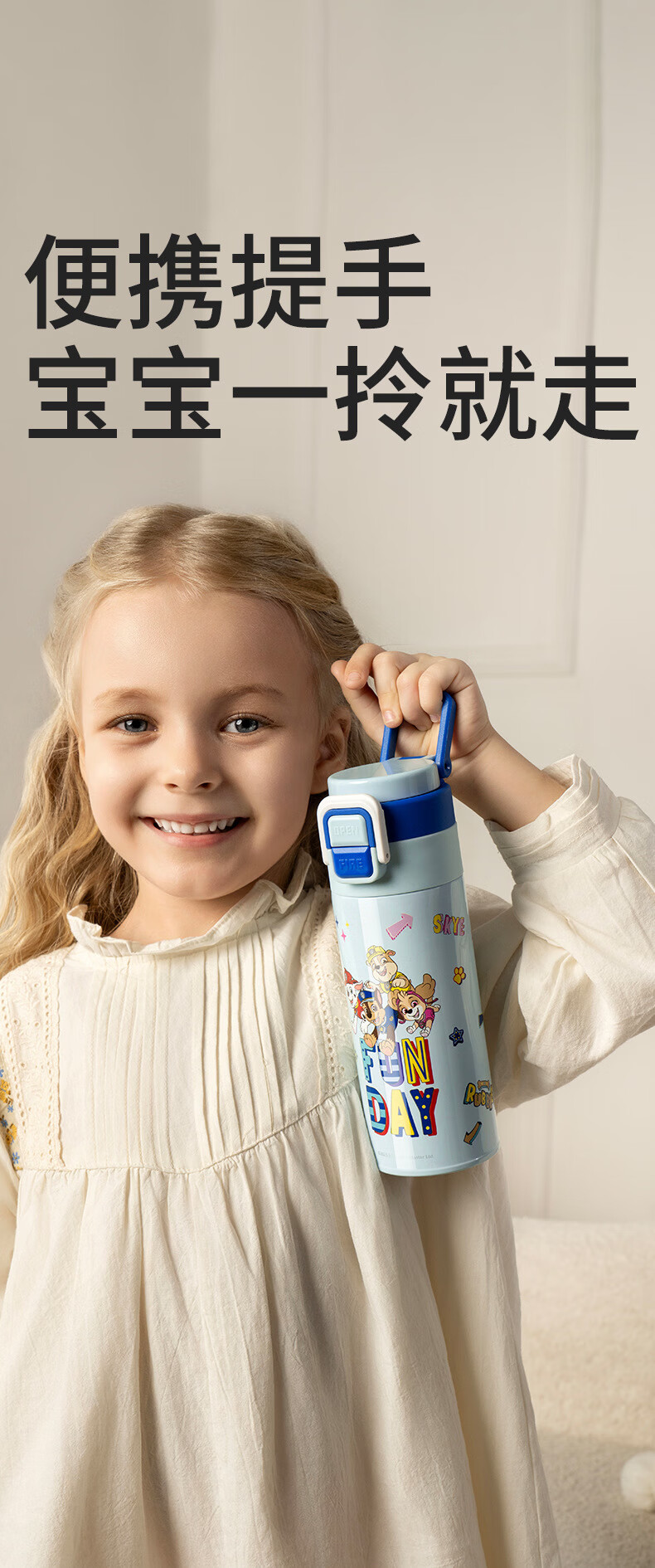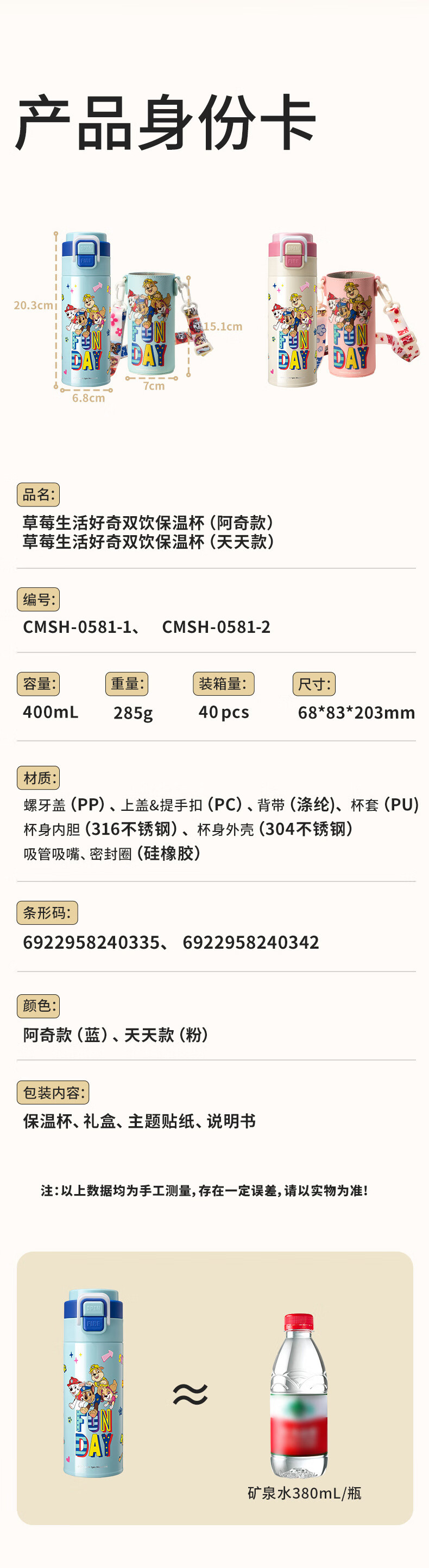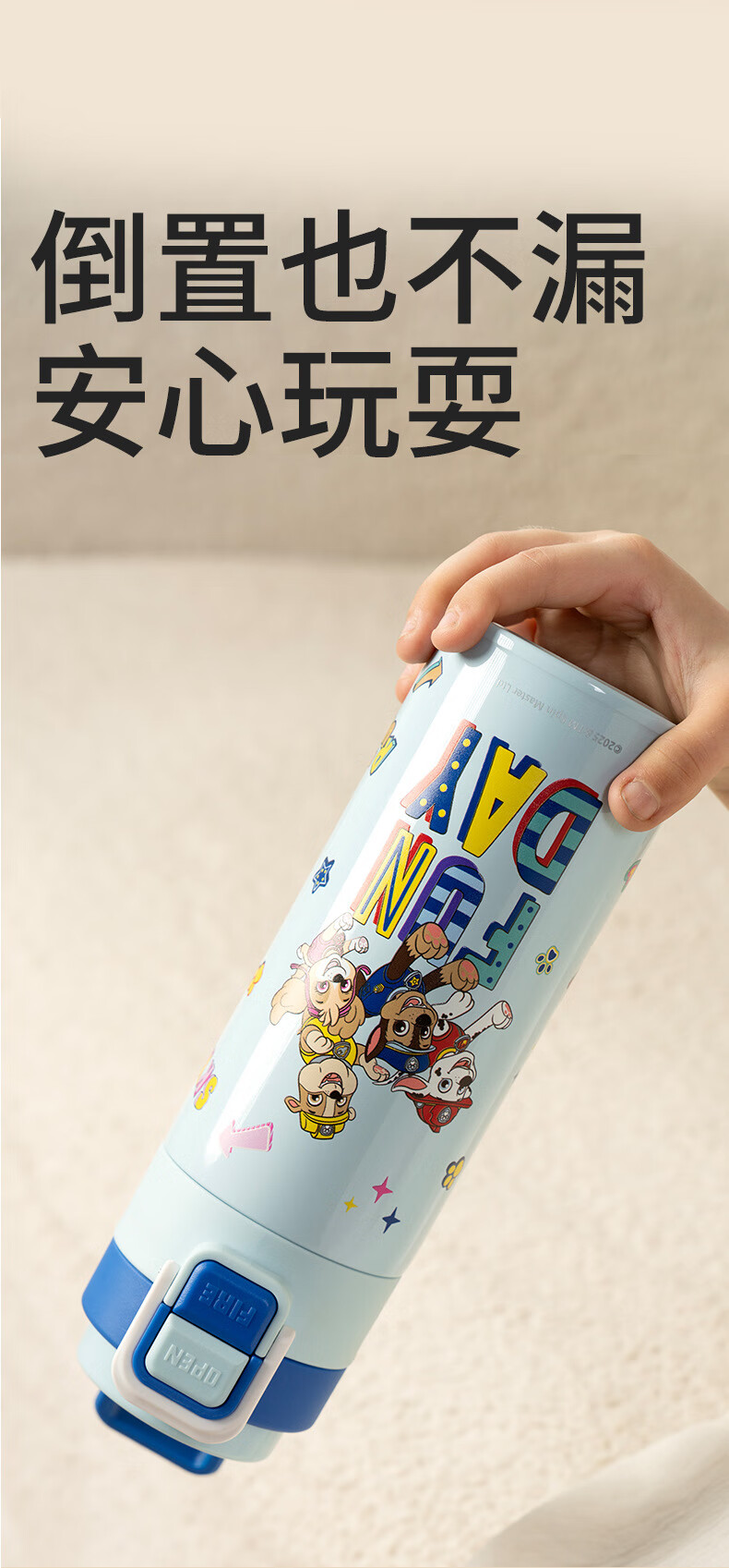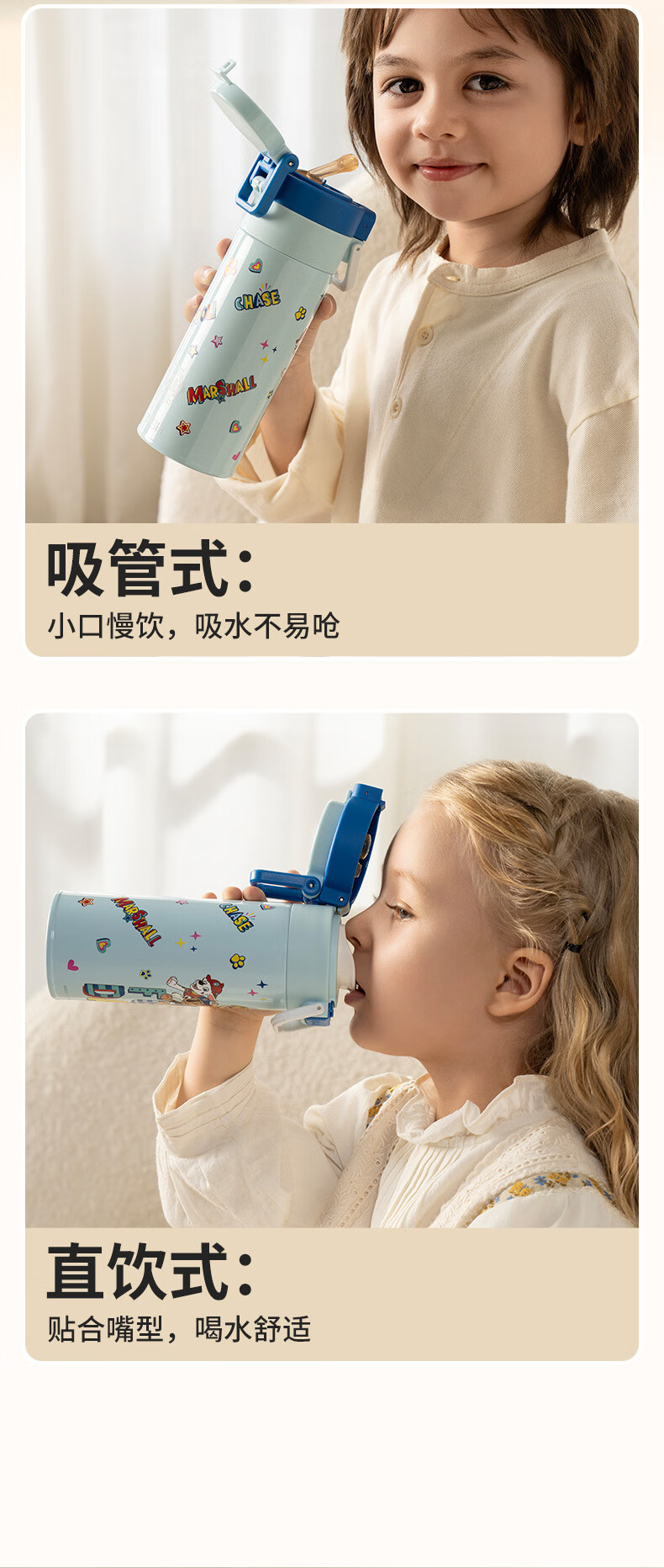 草莓生活汪汪队儿童316不锈钢保温杯小学生幼儿园卡通便携直饮吸管水杯子 蓝色【赠送清洁套装】400ml