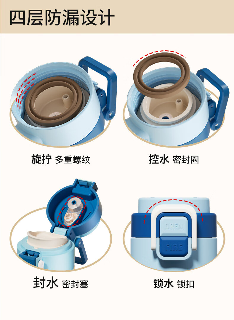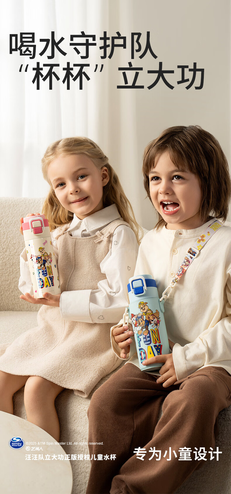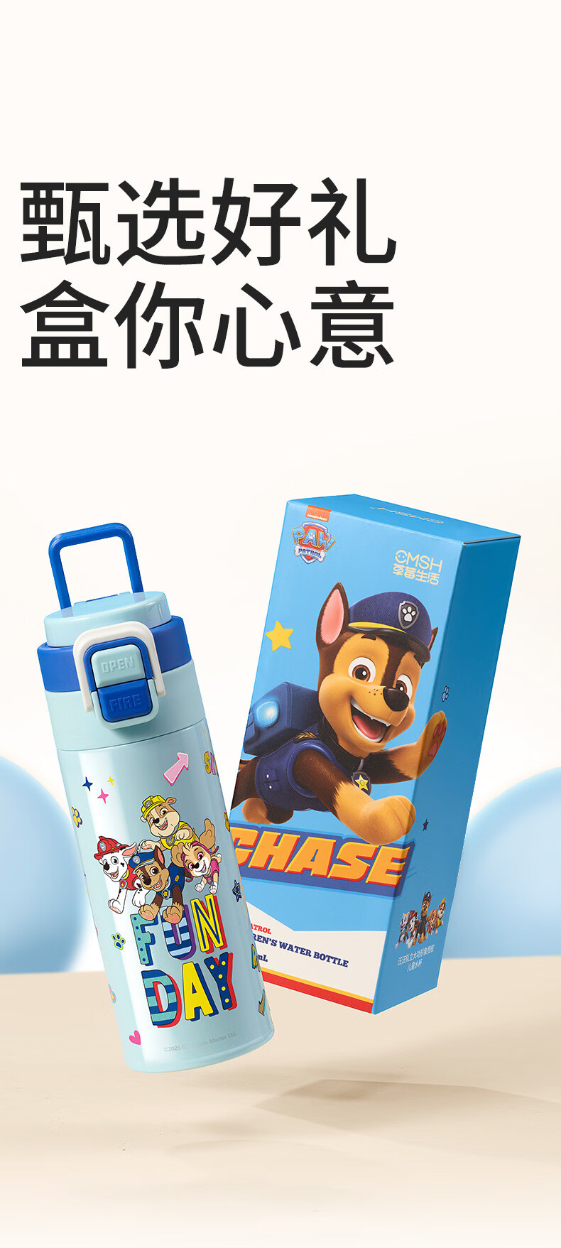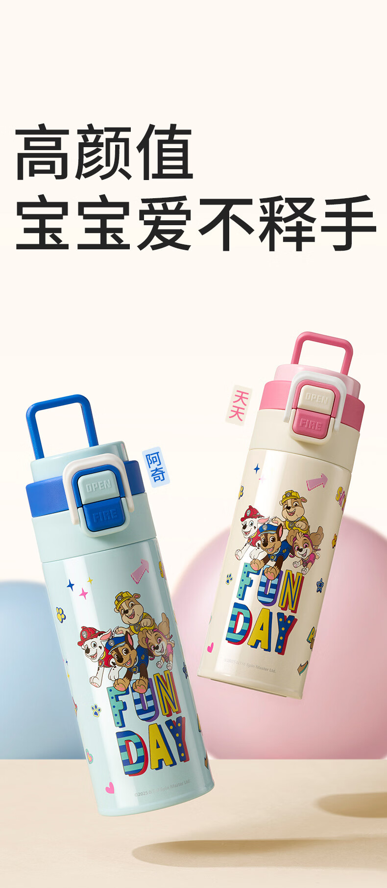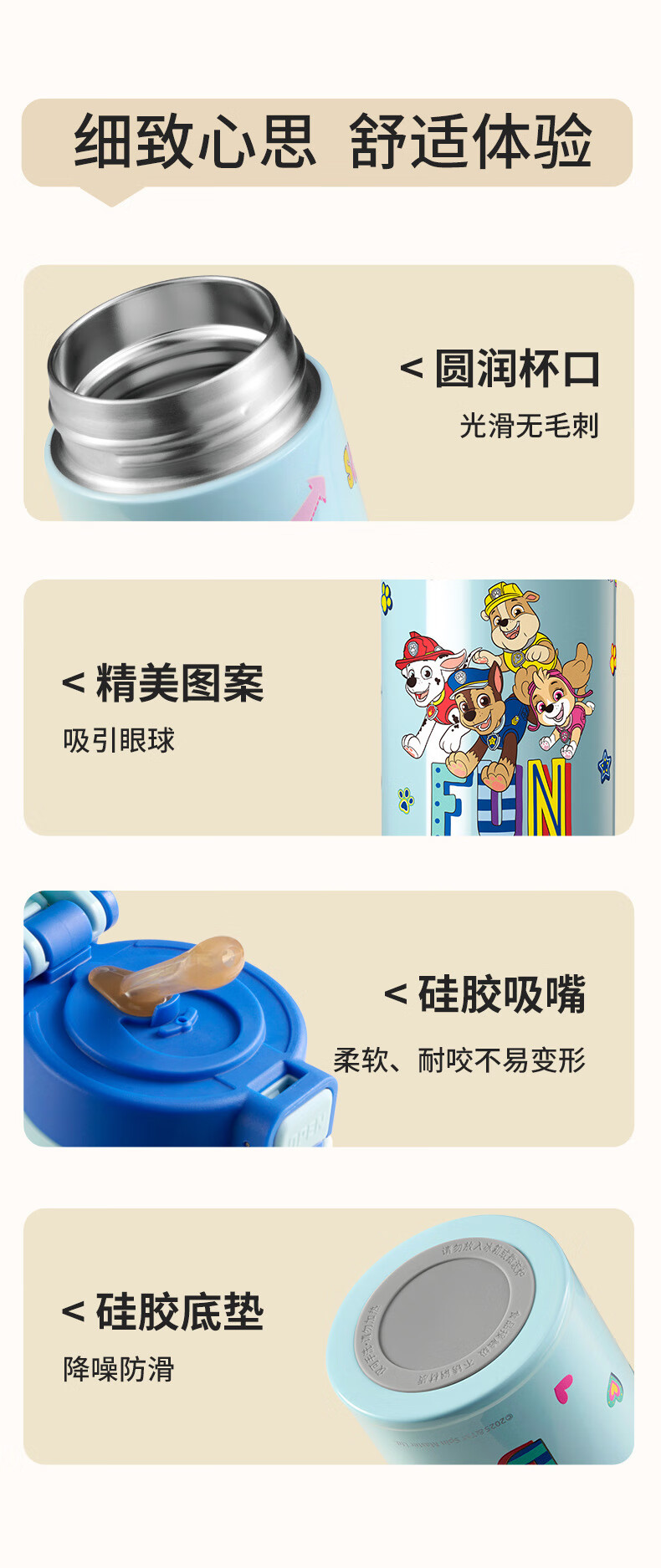 草莓生活汪汪队儿童316不锈钢保温杯小学生幼儿园卡通便携直饮吸管水杯子 蓝色【赠送清洁套装】400ml