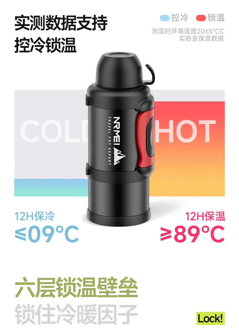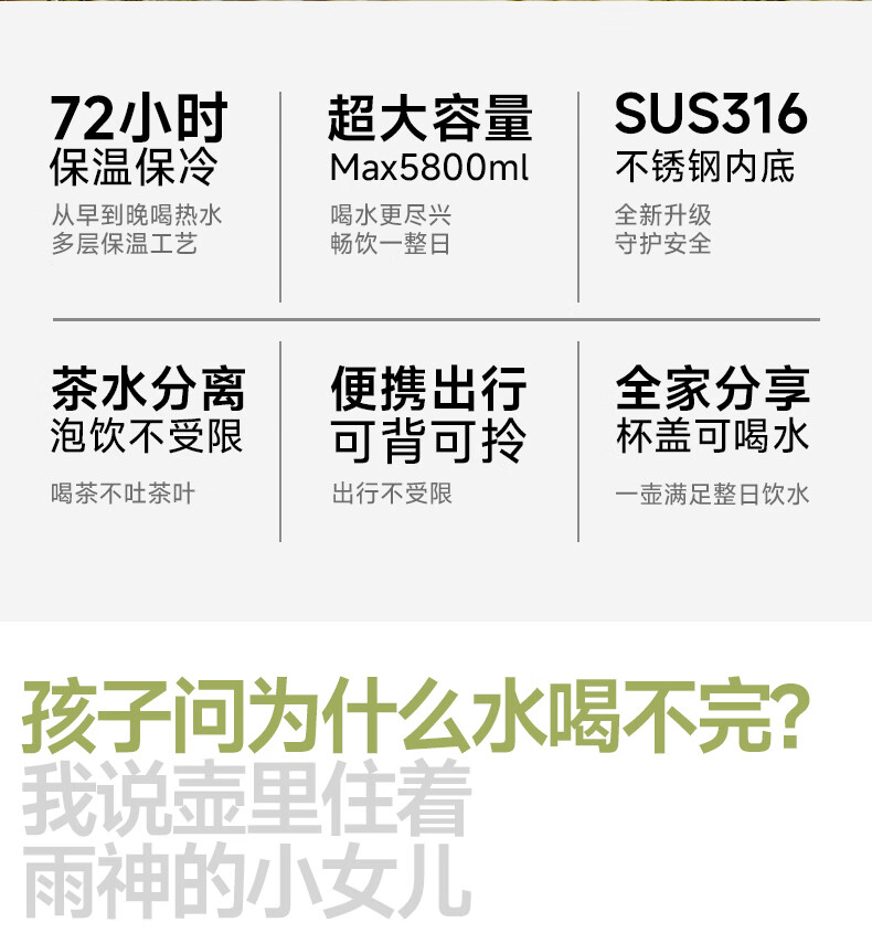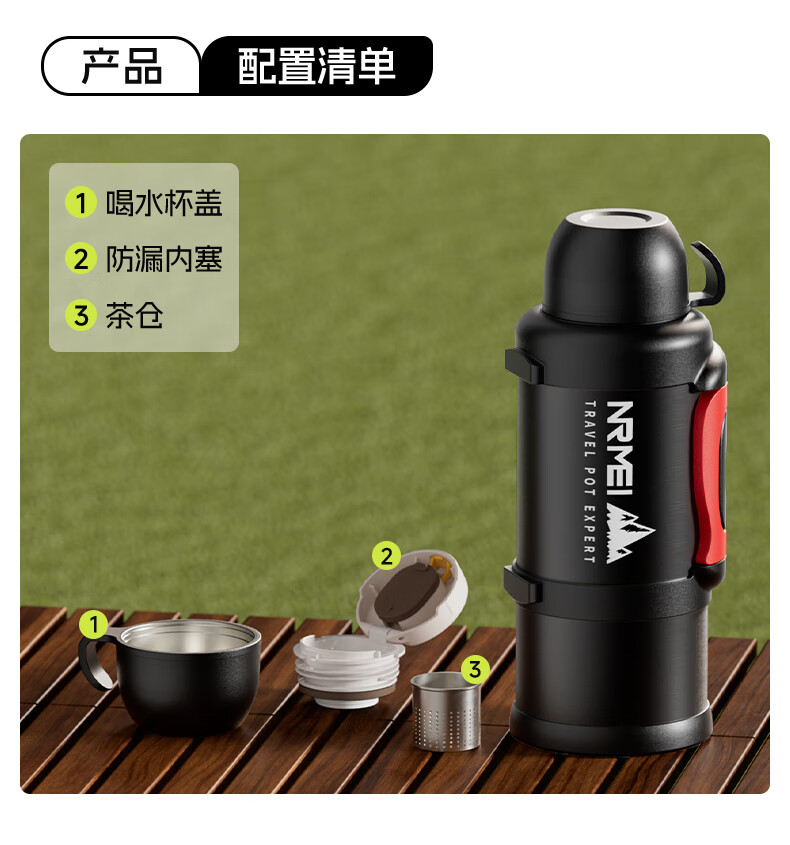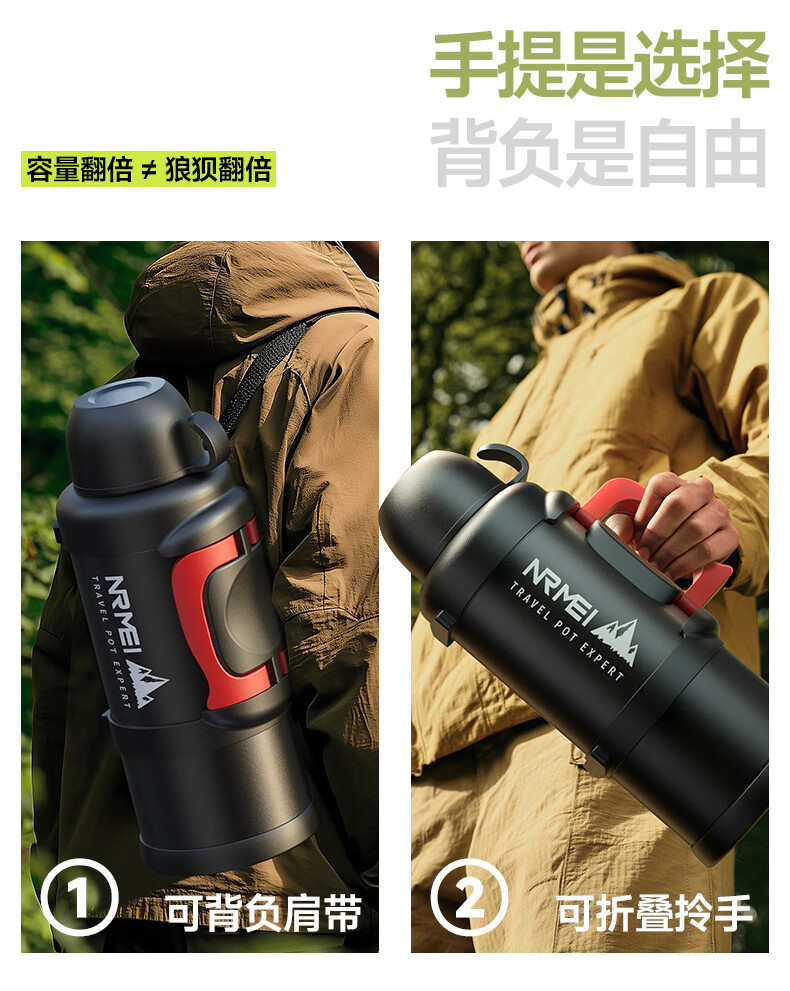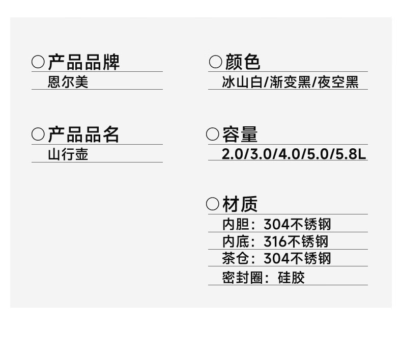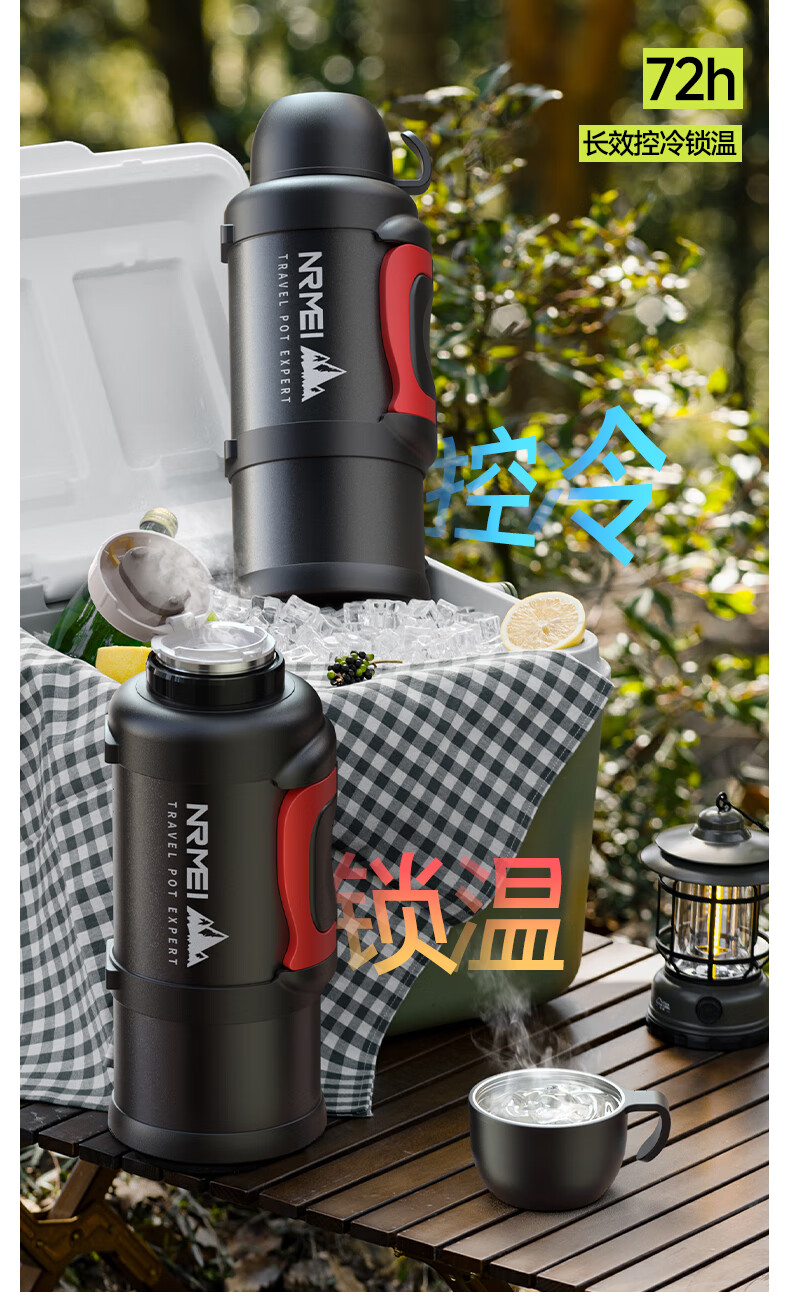 恩尔美(nRMEi)保温壶大容量316不锈钢便携车载户外旅行保温水壶家用保温热水瓶 【长效保温锁冷】冰山白2.0L【抗菌316/独立茶仓/】