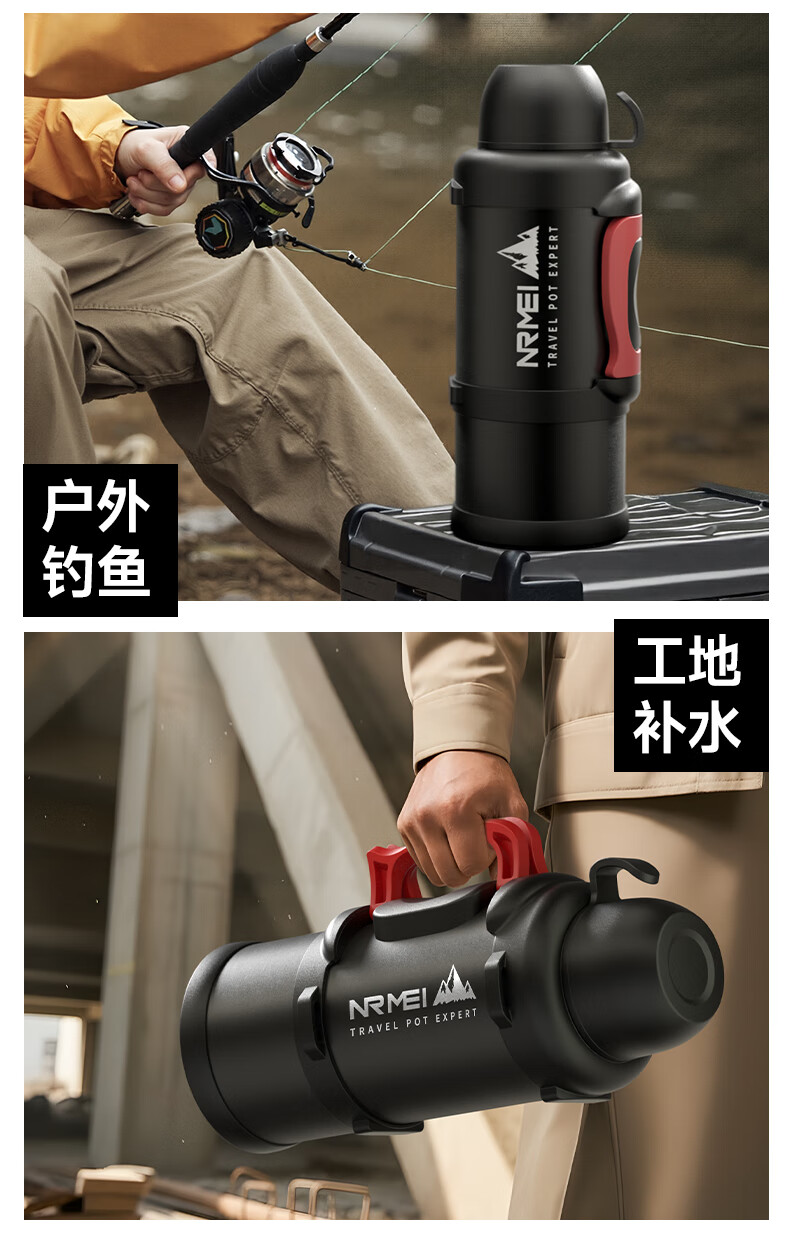 恩尔美(nRMEi)保温保冷杯大容量316L不锈钢男士吨桶吨大肚户外运动水壶冰霸杯子 黑色2000ml【冷热双保+316L】