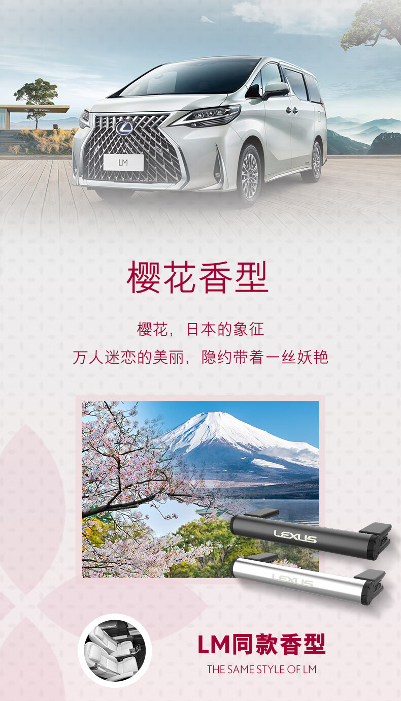 雷克萨斯汽车用品 车内香味尊享车载香氛( LM同款香型) 黑色扩香器+1支香棒 樱花香