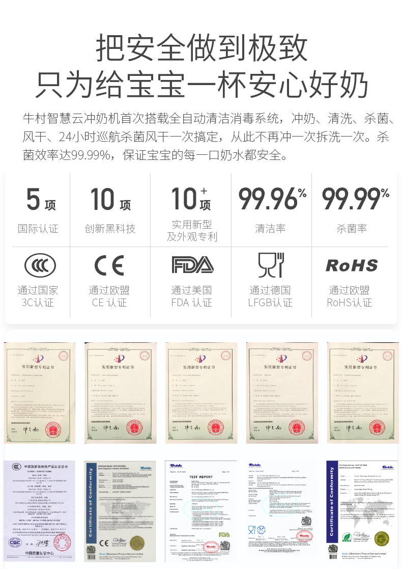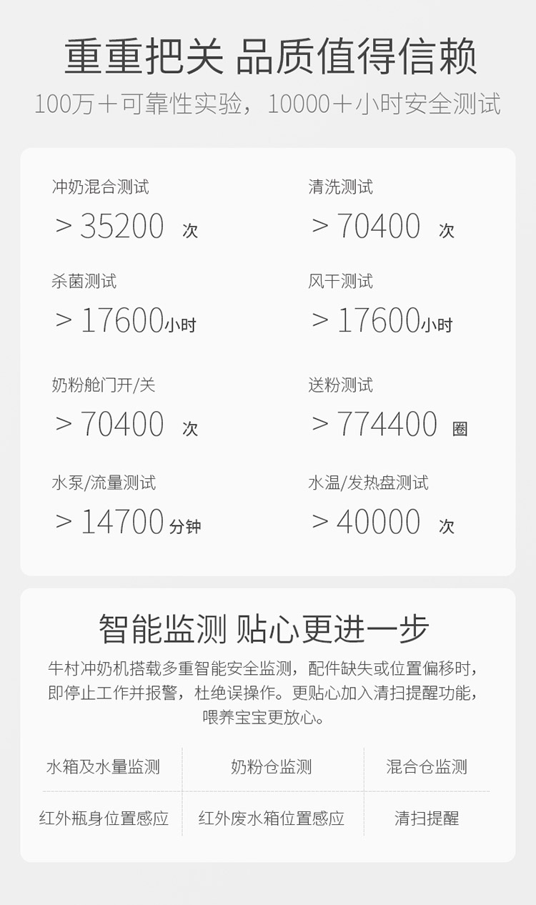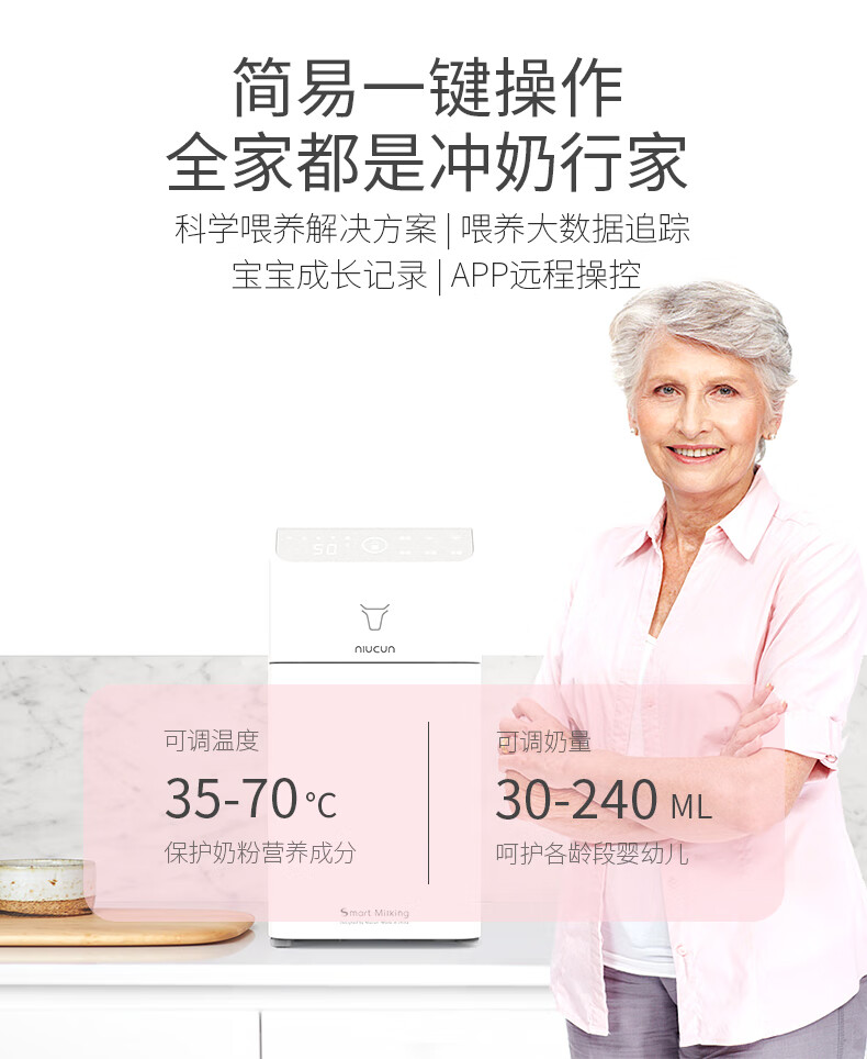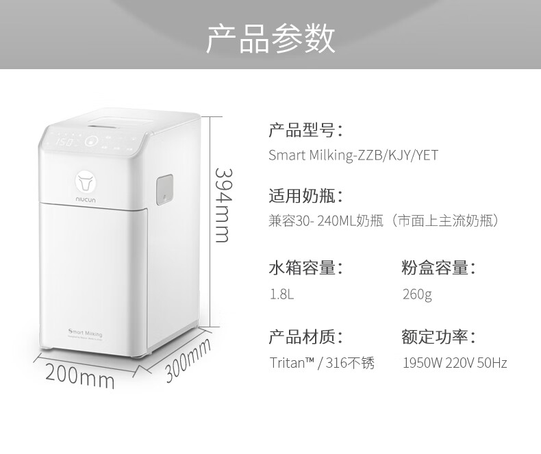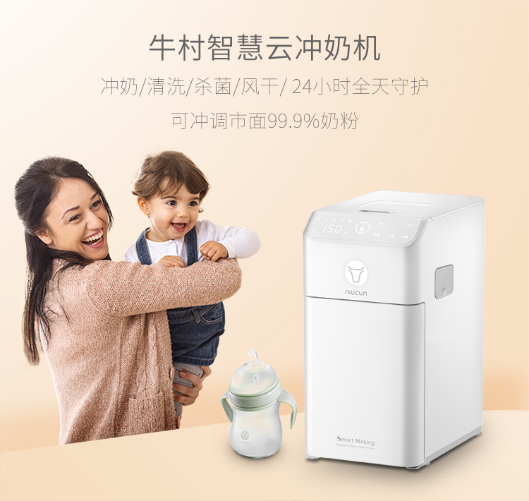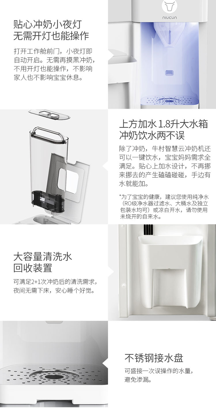 牛村智能冲奶全自动婴儿调奶器一键冲奶粉机泡奶机夜奶神器兑奶器充奶 双水路版 1.8L 珍珠白