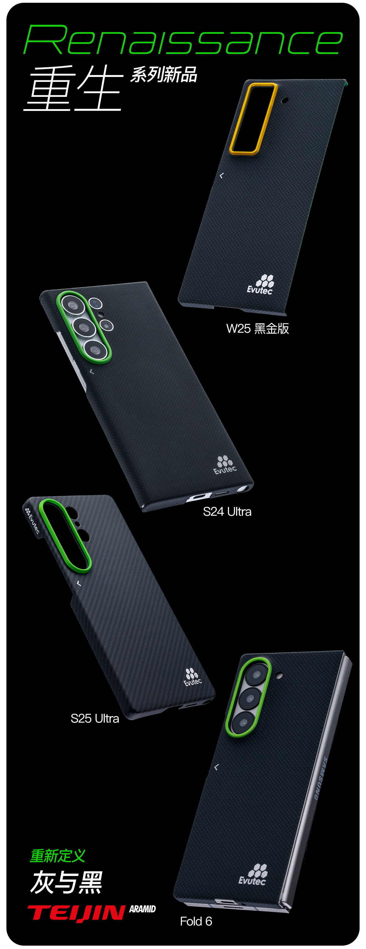 Evutec【重生】三星Fold6/W25/S25U/S24U/灰黑斜纹/芳纶/类凯夫拉编织磁吸一体镜头框高级手机壳 三星 S25 Ultra 重生系列