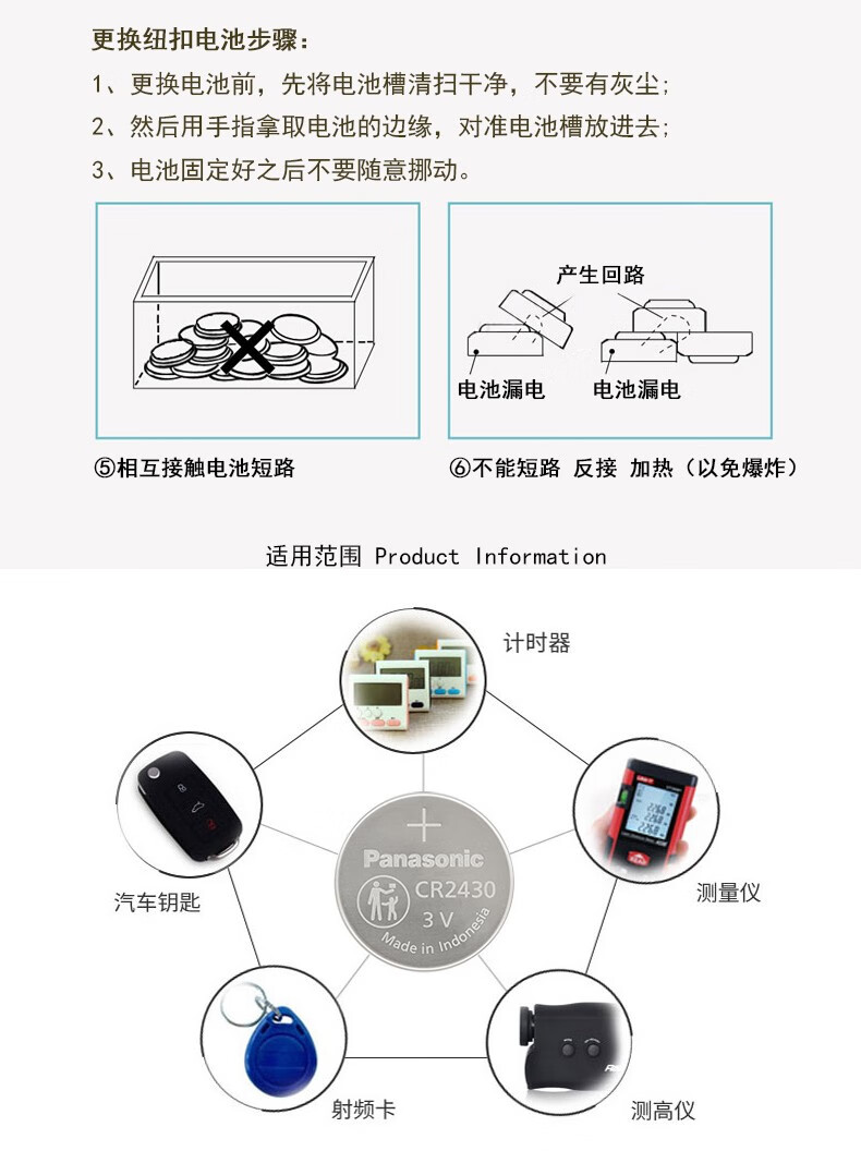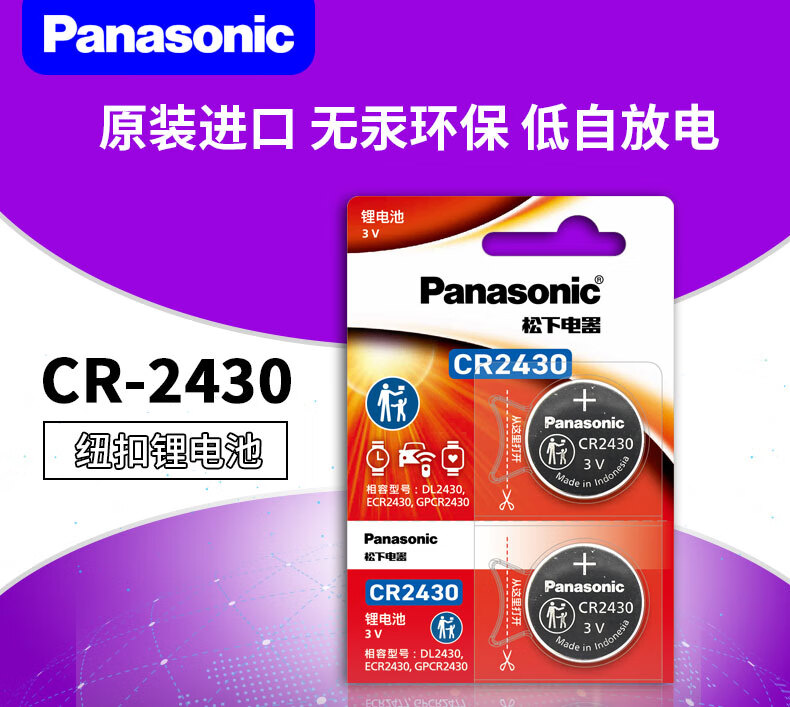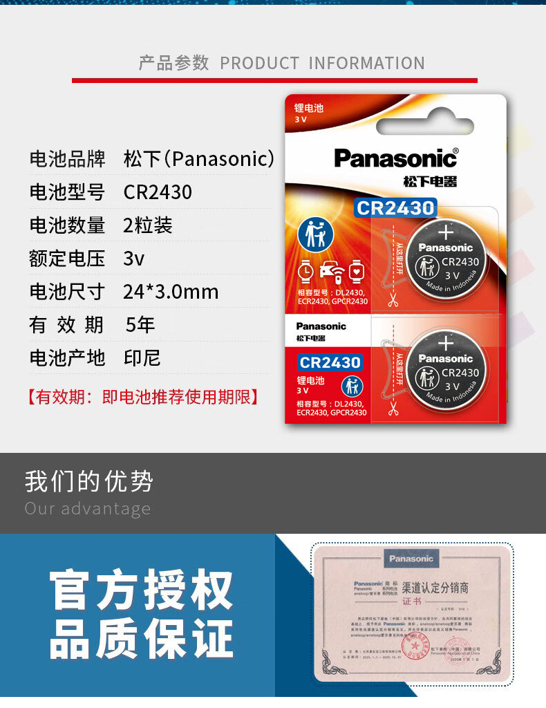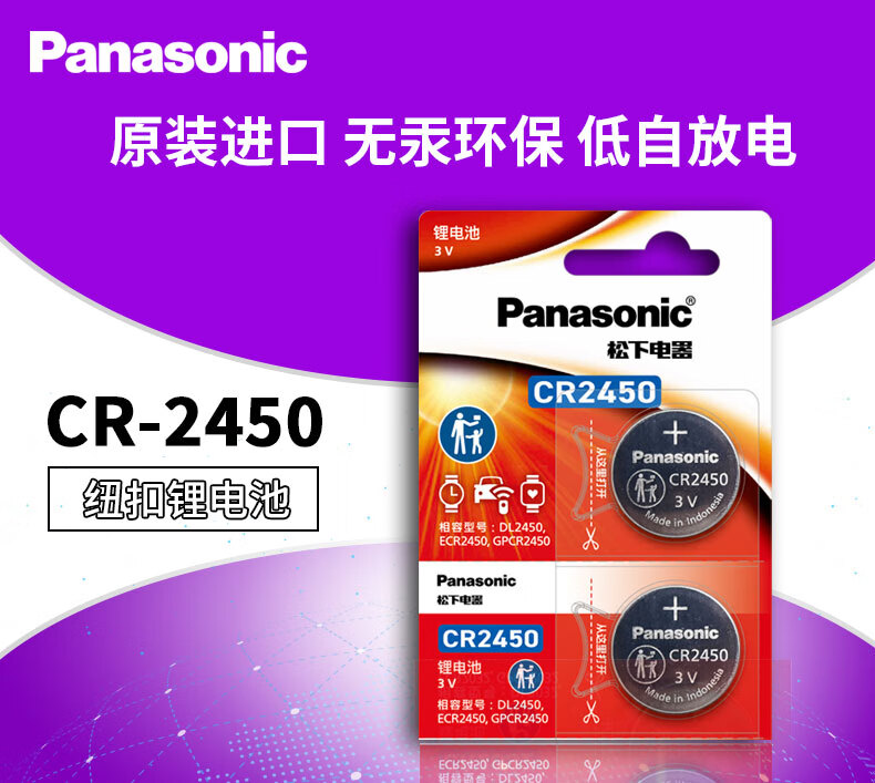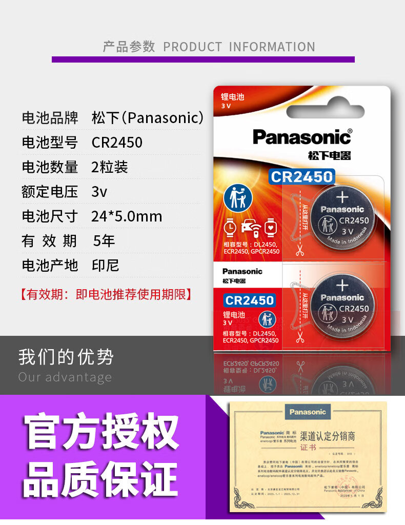 松下进口CR2430纽扣电池3V CR2450适用于好太太 盼盼 朗诗 九牧 红杏绿仪电动升降晾衣架遥控器电子 CR-2450【2粒】