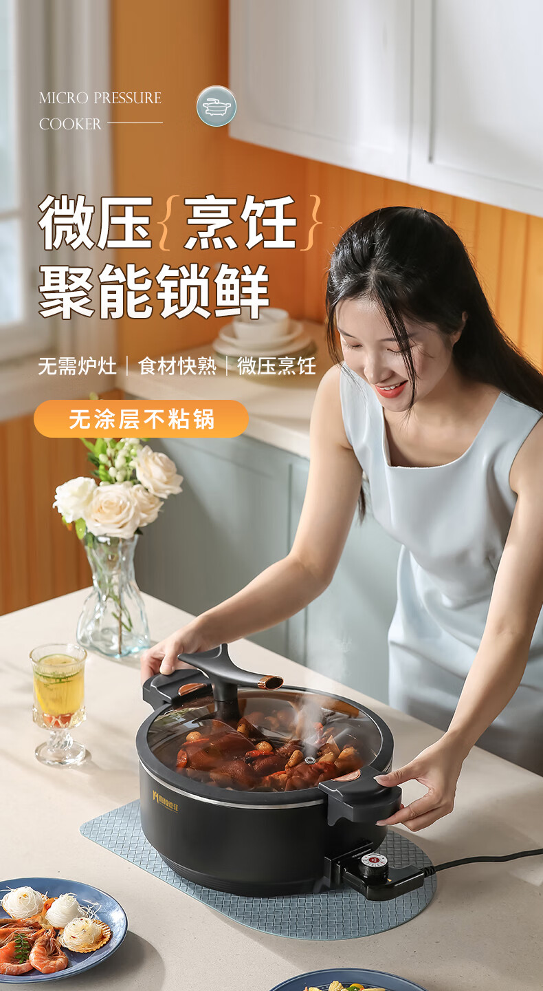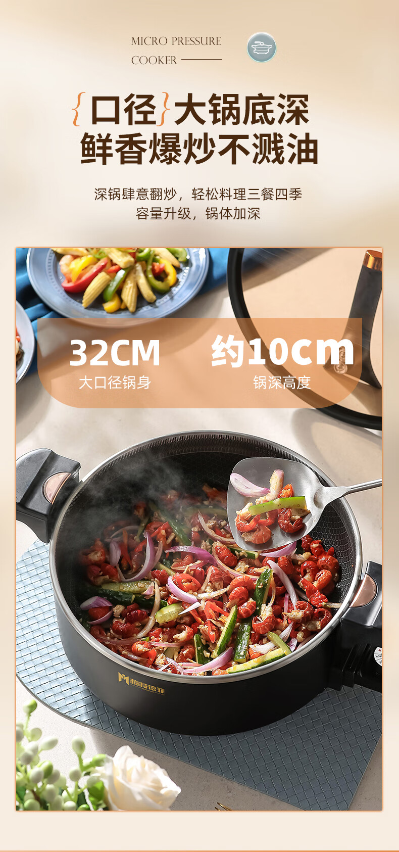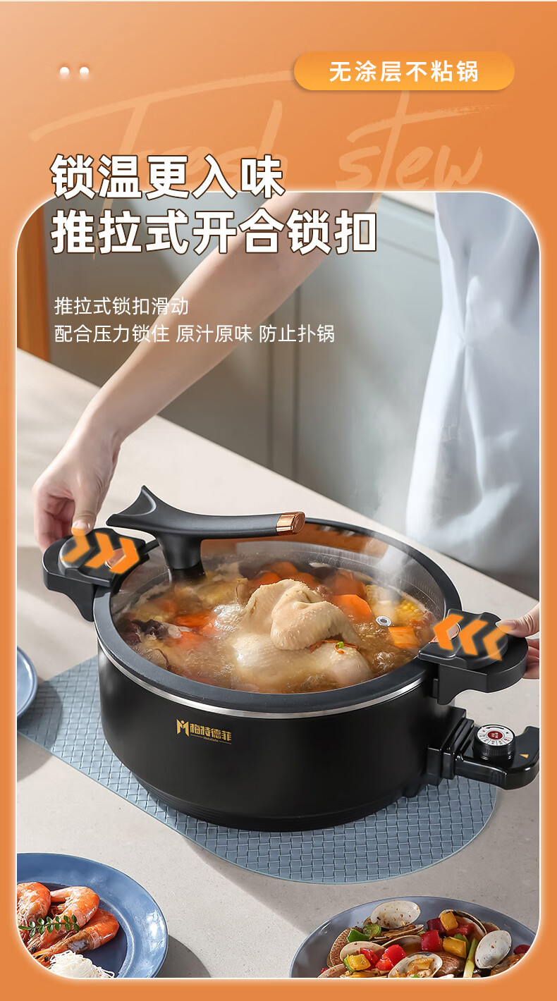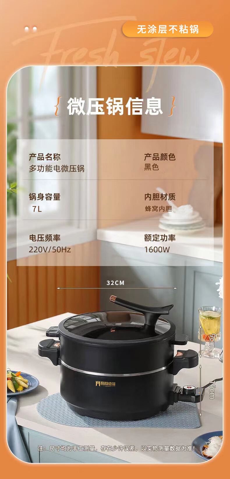 梅特德菲蜂窝晶刻电子微压锅不粘锅电火锅电煮锅家用电炒锅蒸锅多功能一体锅 【奢华黑】30cm口径适合1-4人 6L 【1600W功率】加热快省电耐用