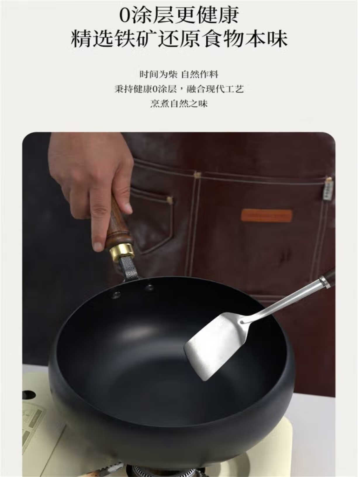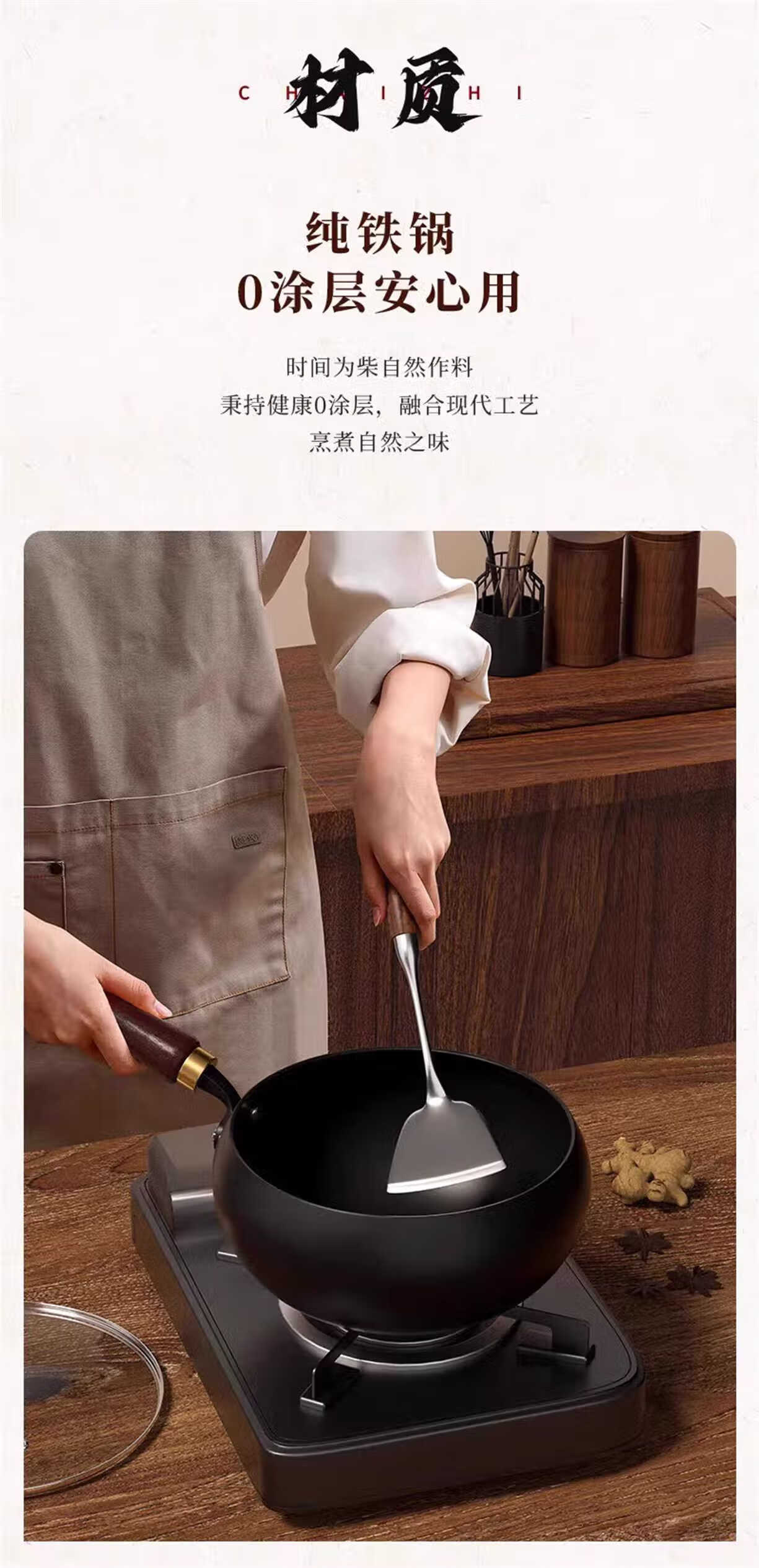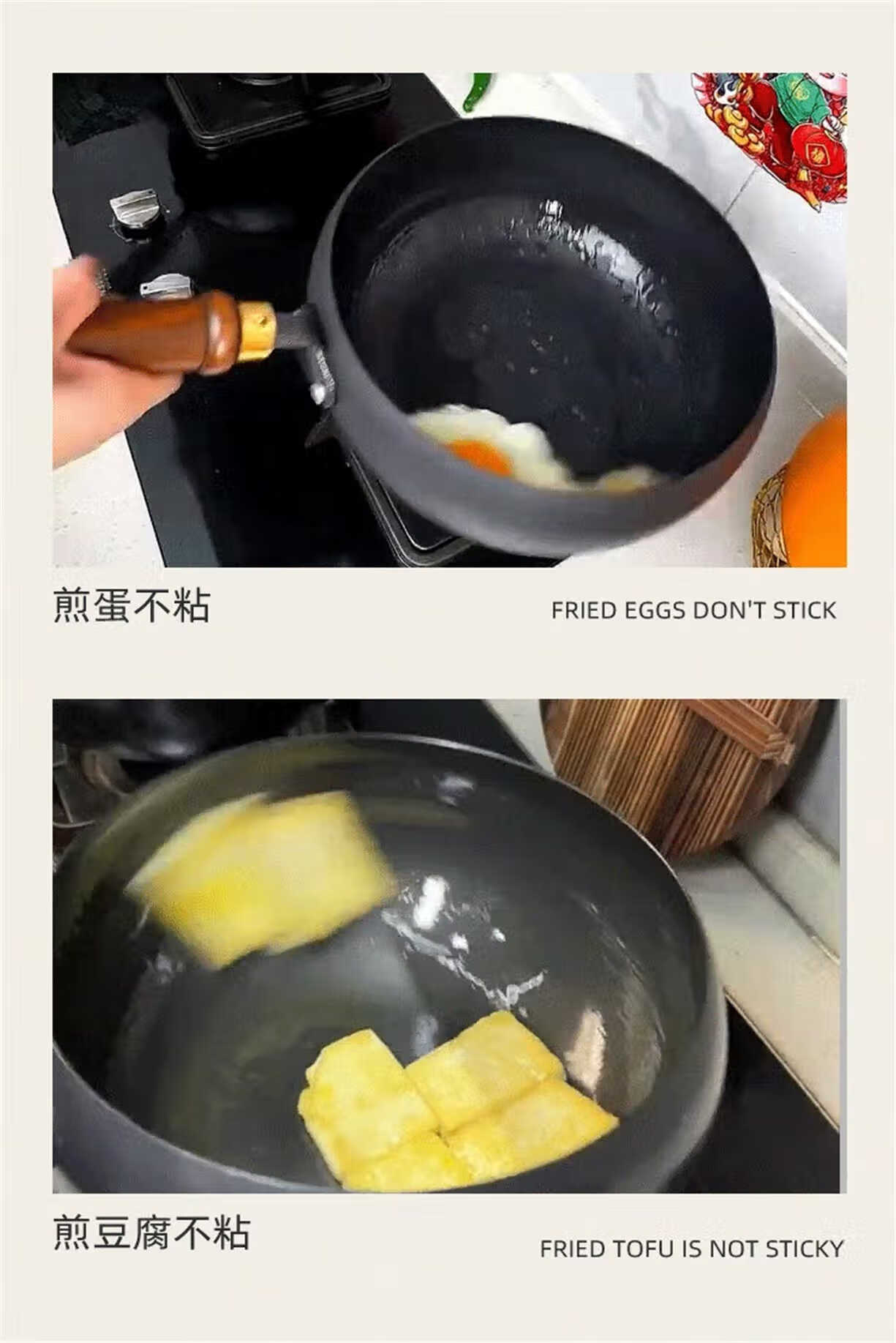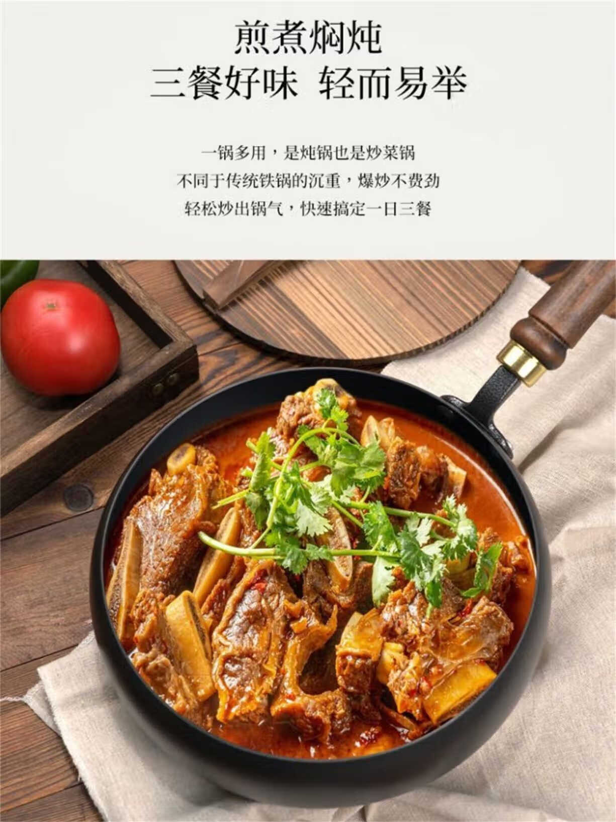 阎铁匠章丘平底煎锅铁锅牛排锅煎蛋锅烙饼锅煎盘少油烟无涂层老式已开锅 木把26CM煎锅 26cm