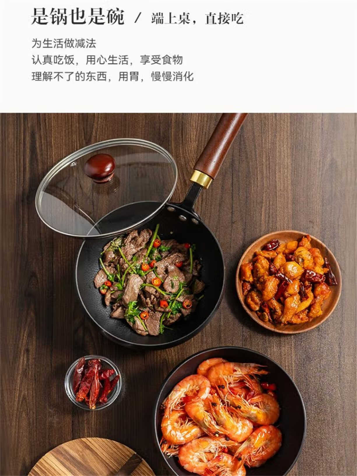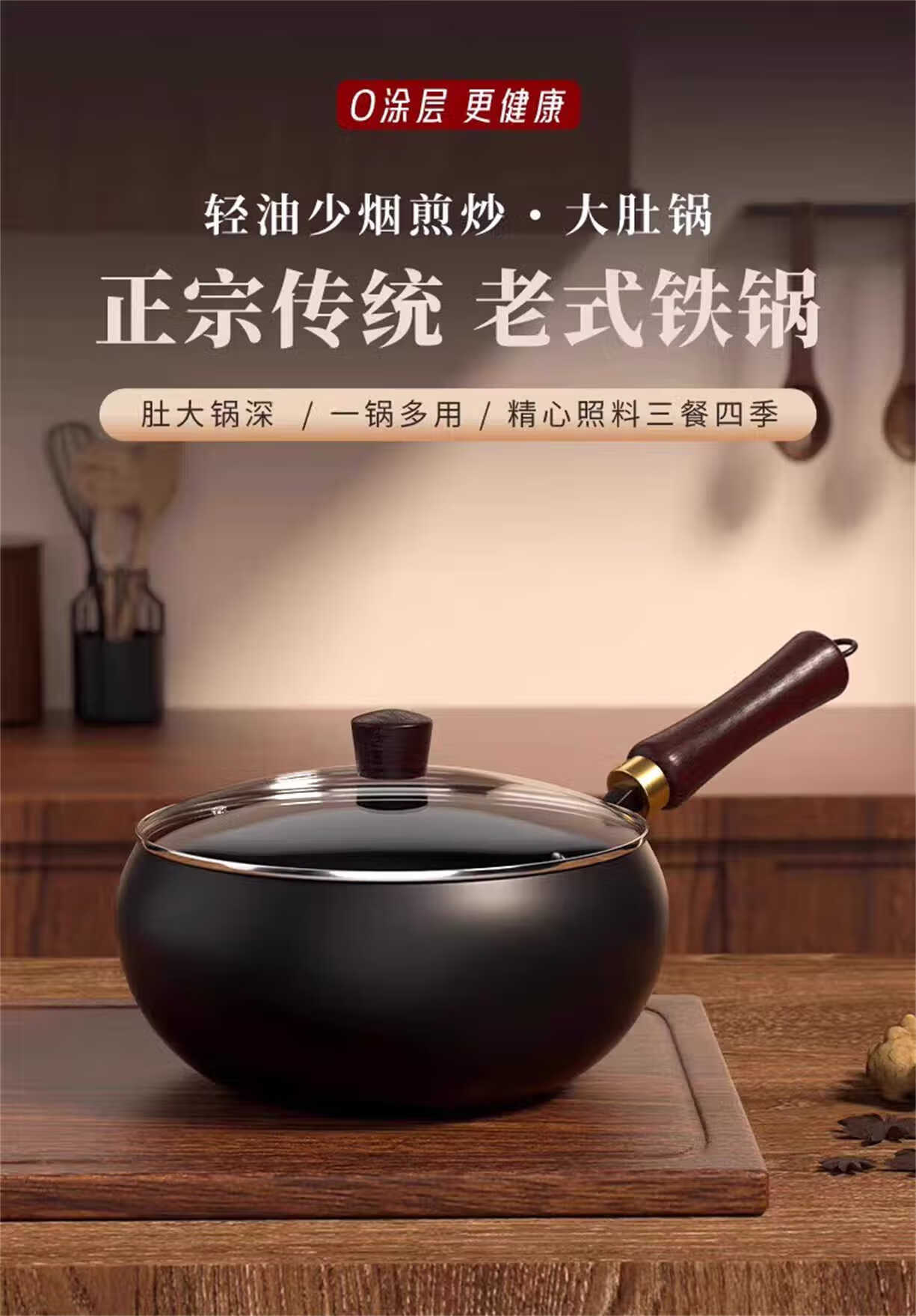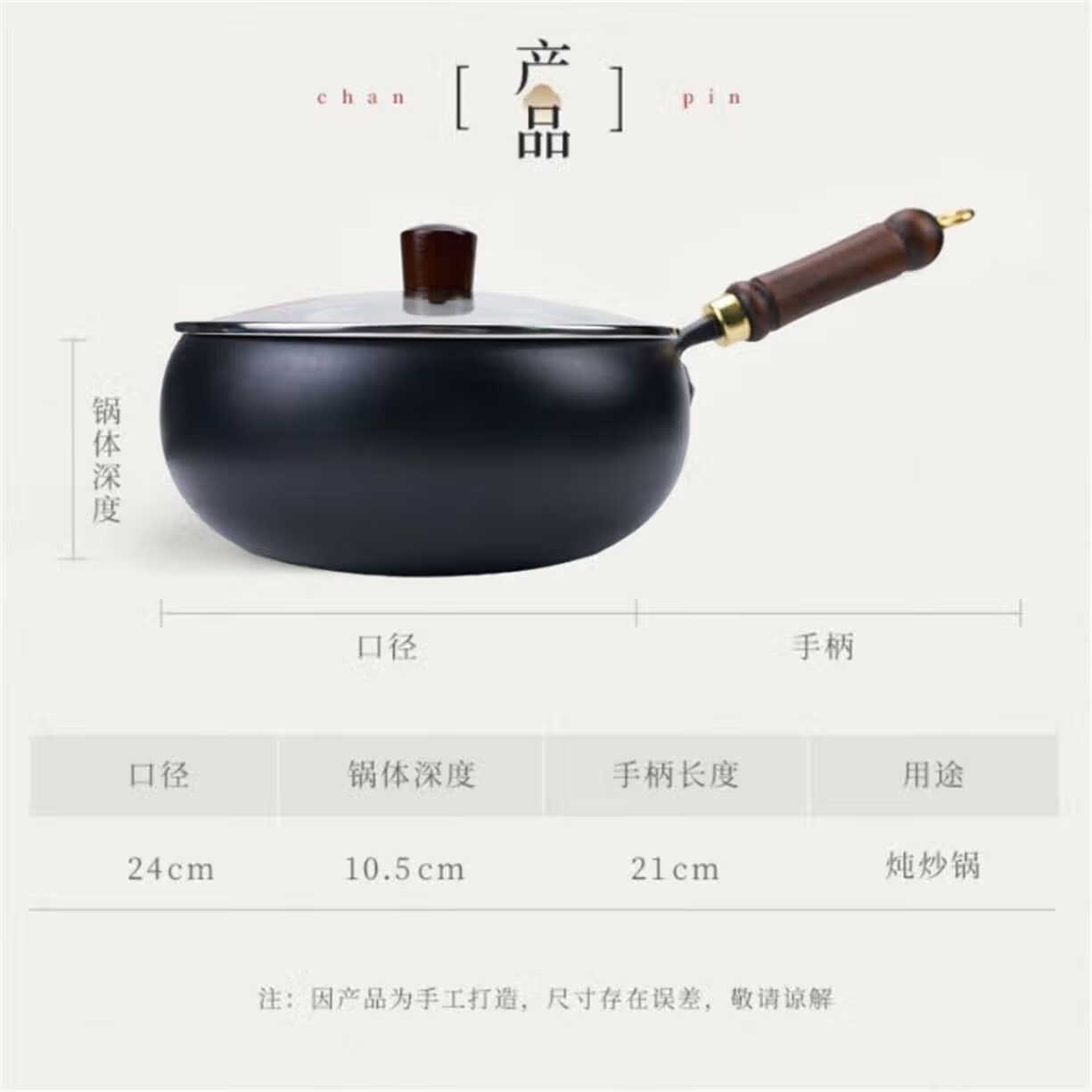 百强一人食大肚铁锅迷你炒锅轻便无涂层不粘锅炒菜锅燃气灶电磁炉通用 配锅盖锅铲不锈不穿孔不粘锅 24cm