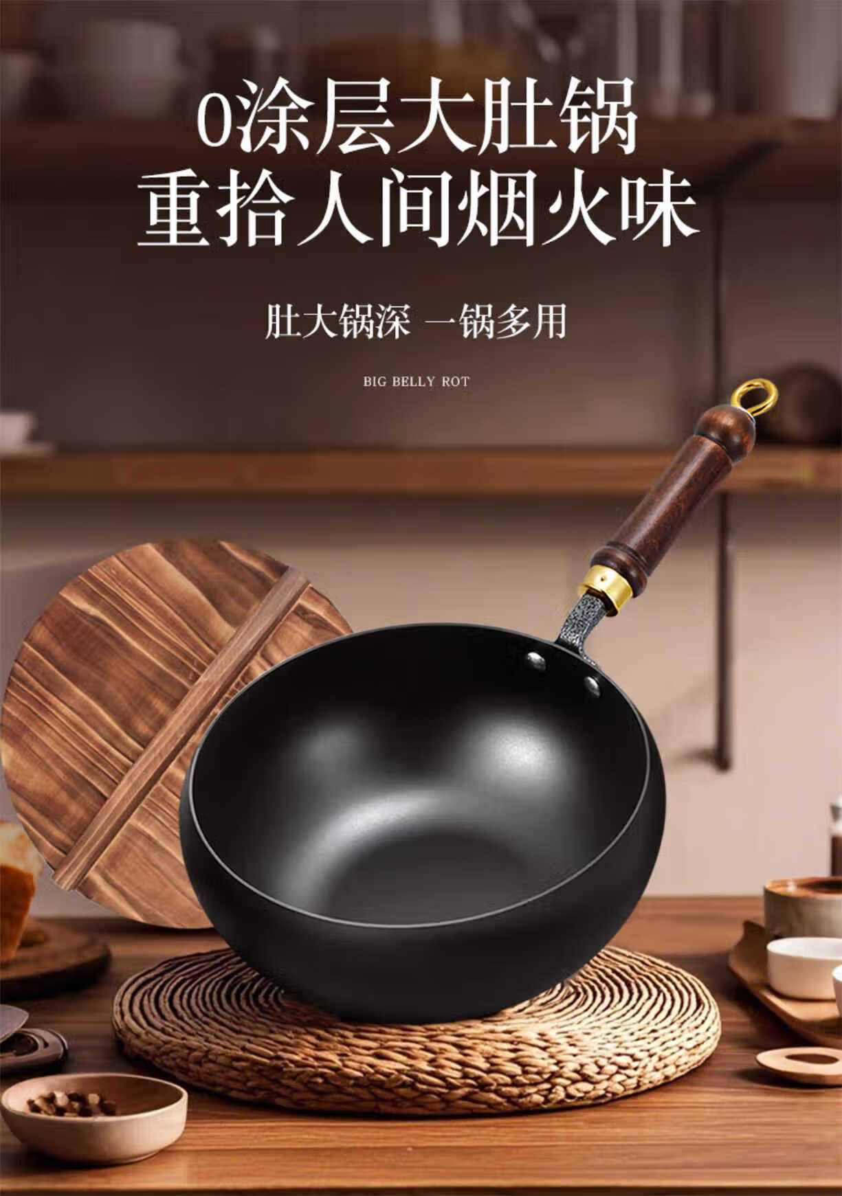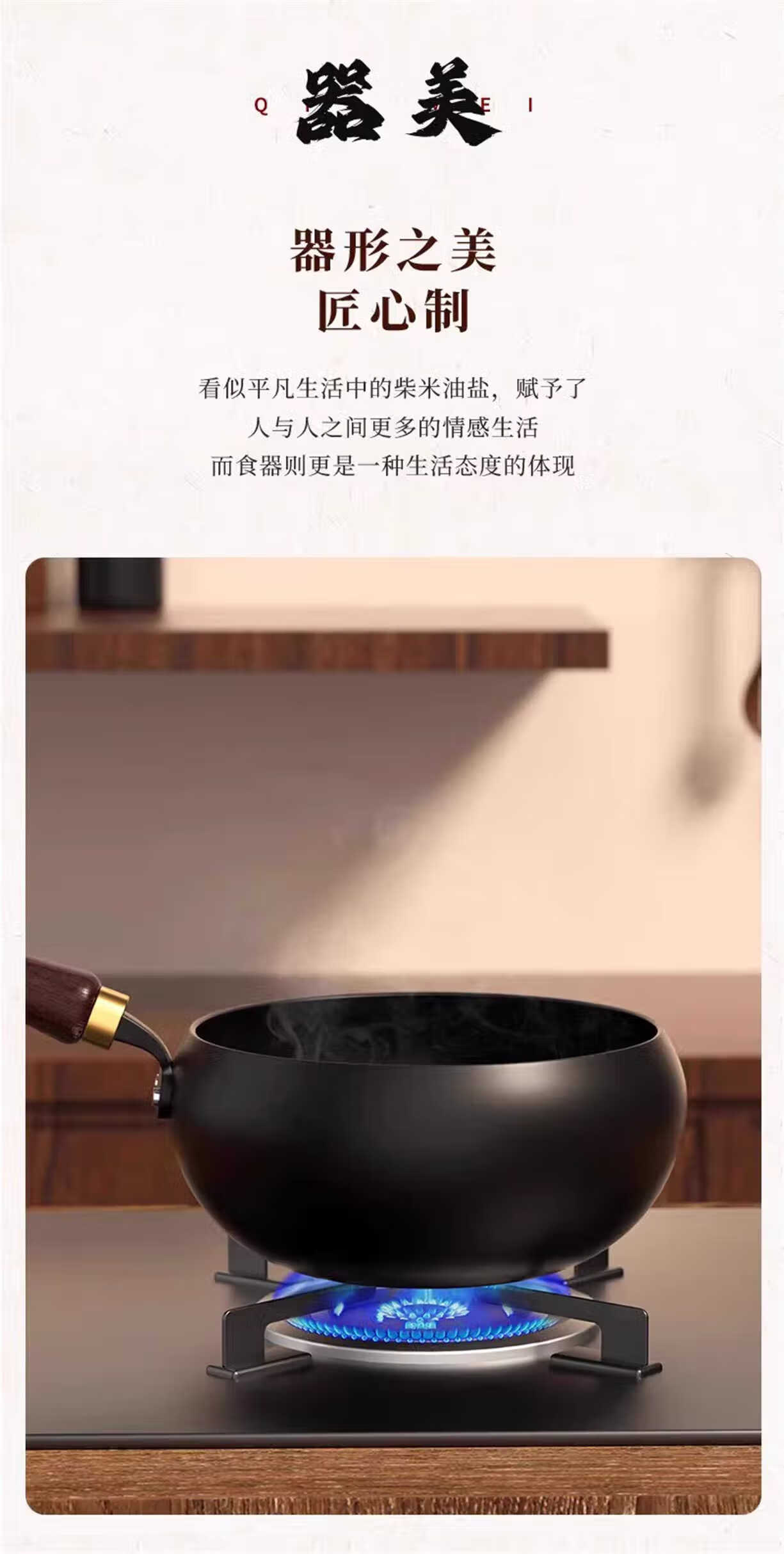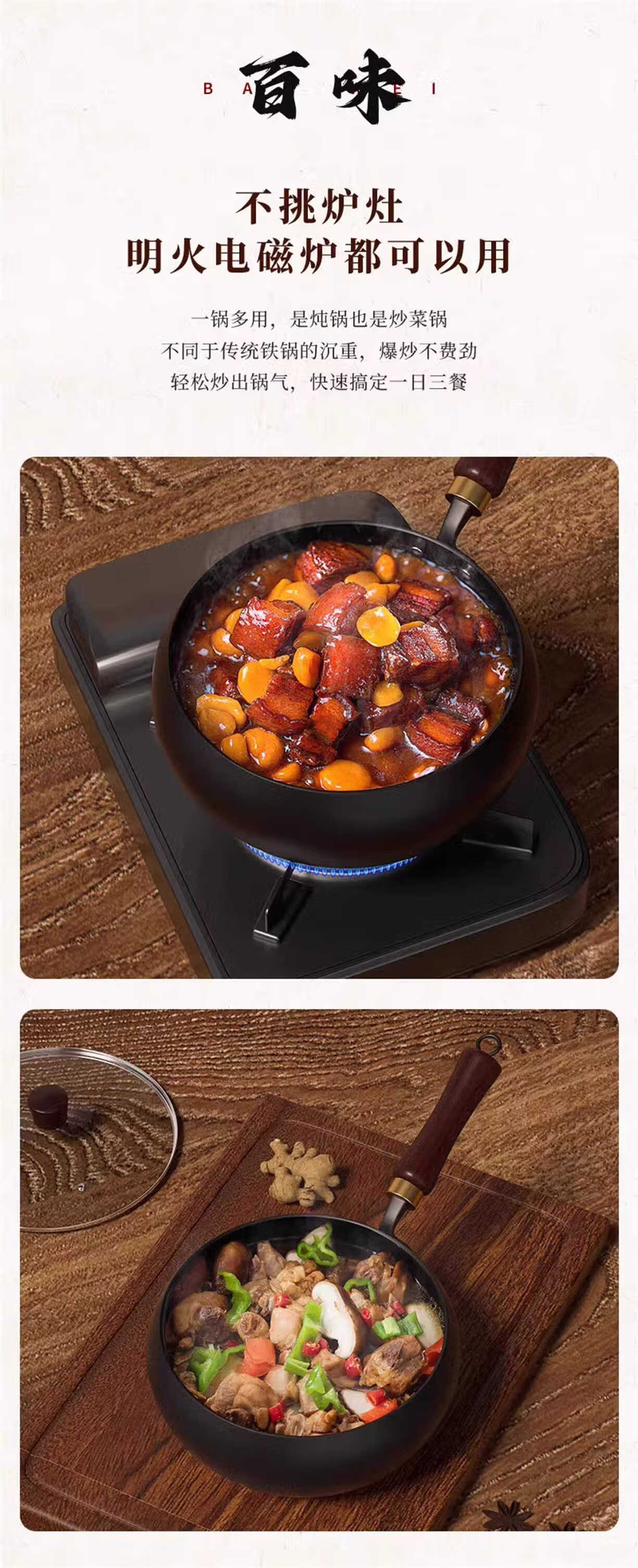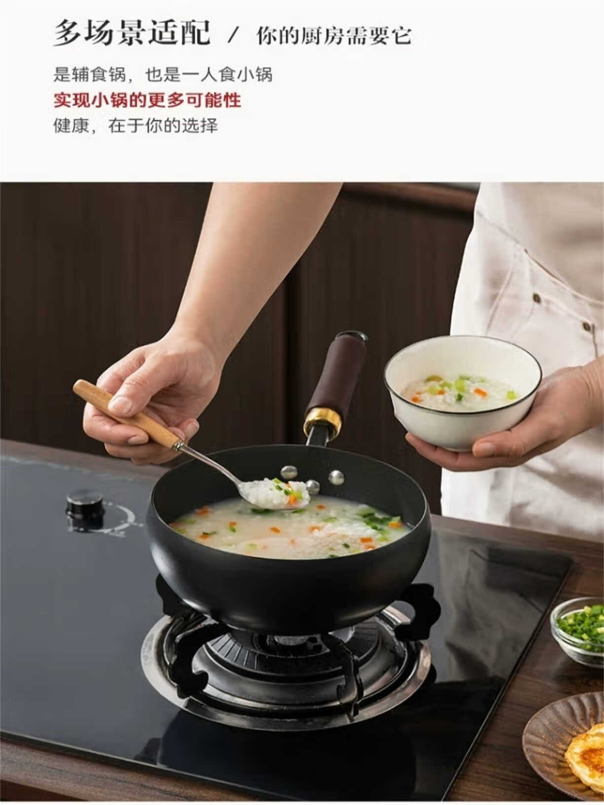 百强一人食大肚铁锅迷你炒锅轻便无涂层不粘锅炒菜锅燃气灶电磁炉通用 配锅盖锅铲不锈不穿孔不粘锅 24cm