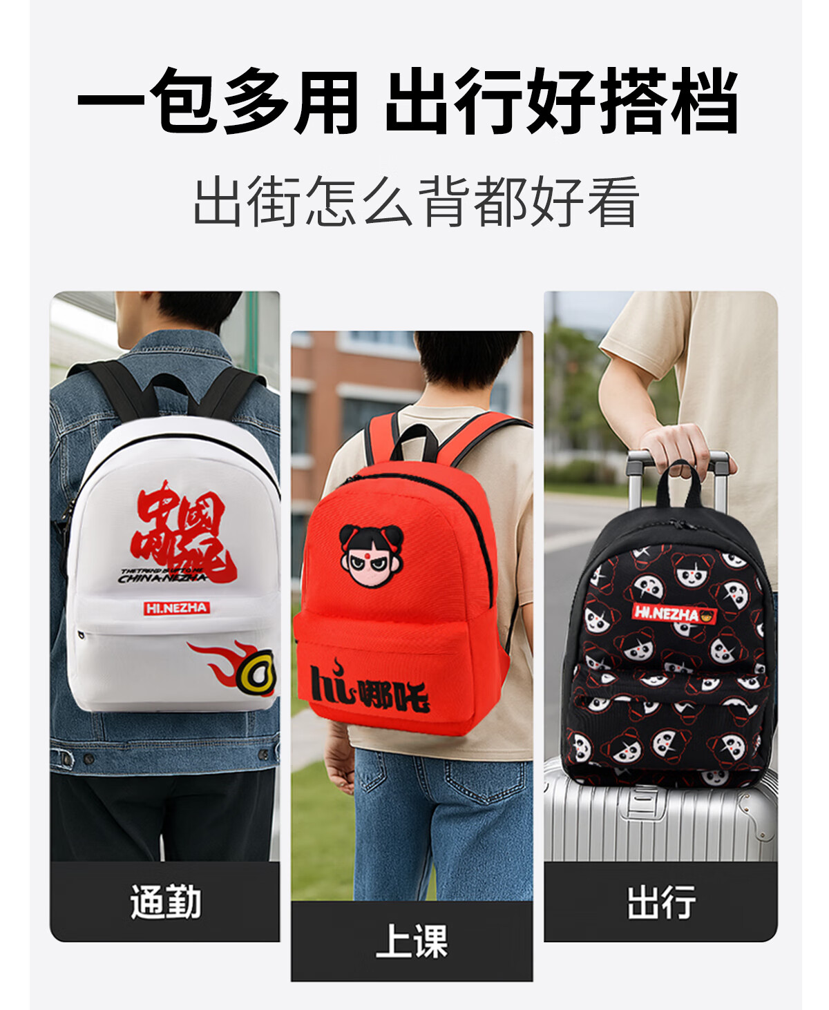 DAILY PAPERhi哪吒联名新款学生初中生大容量双肩背包暑假出游书包漫画周边 黑色B款NZ-BAP-10