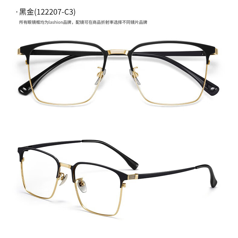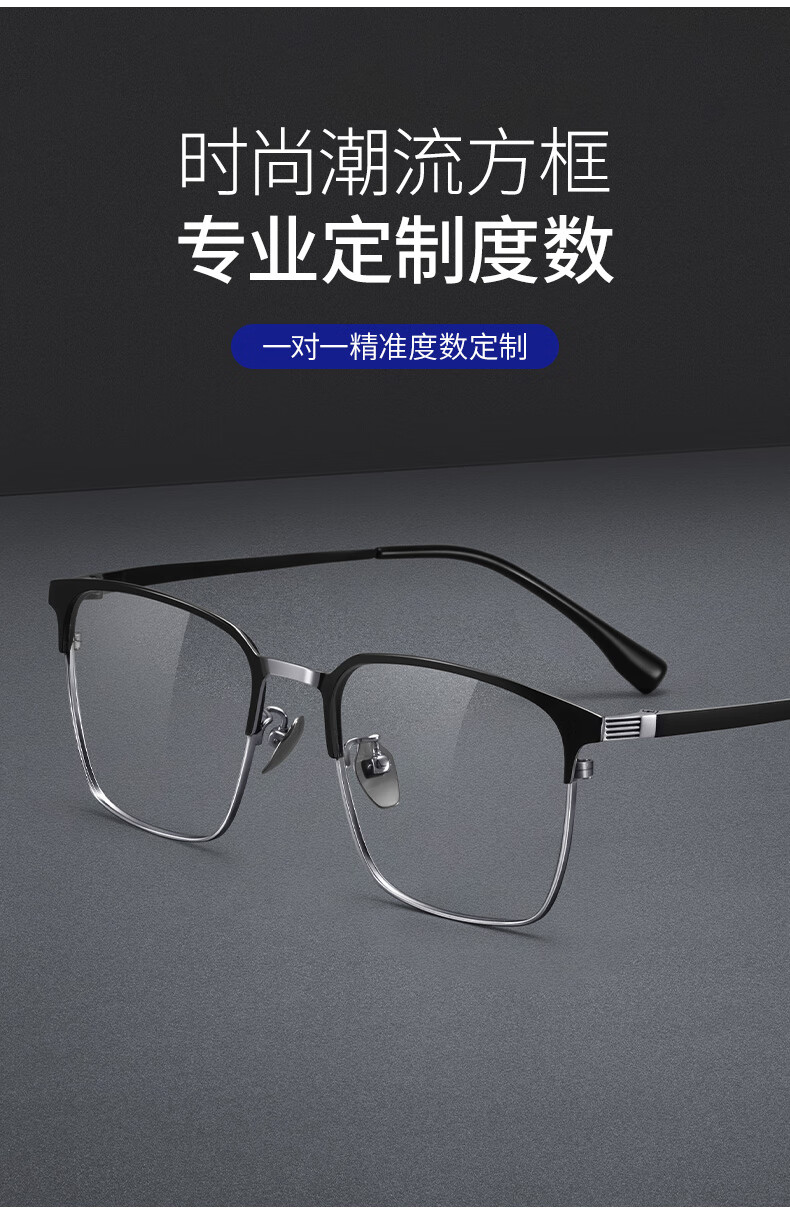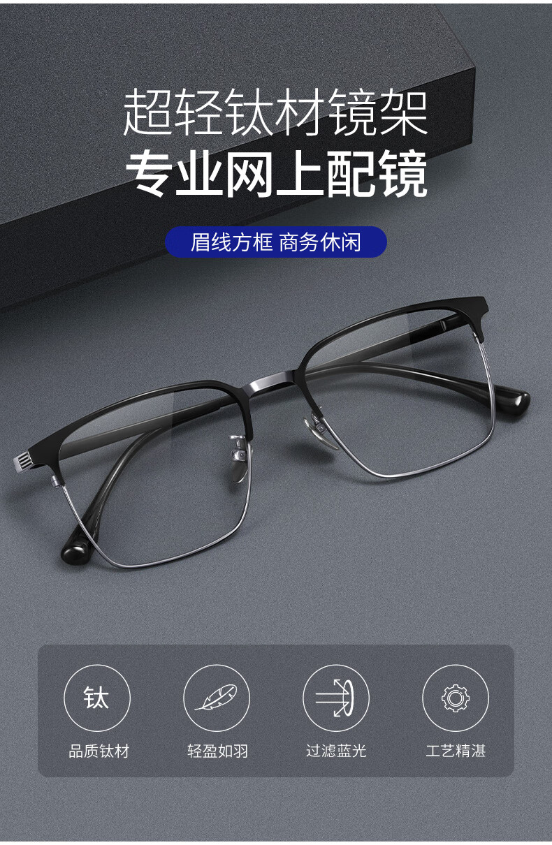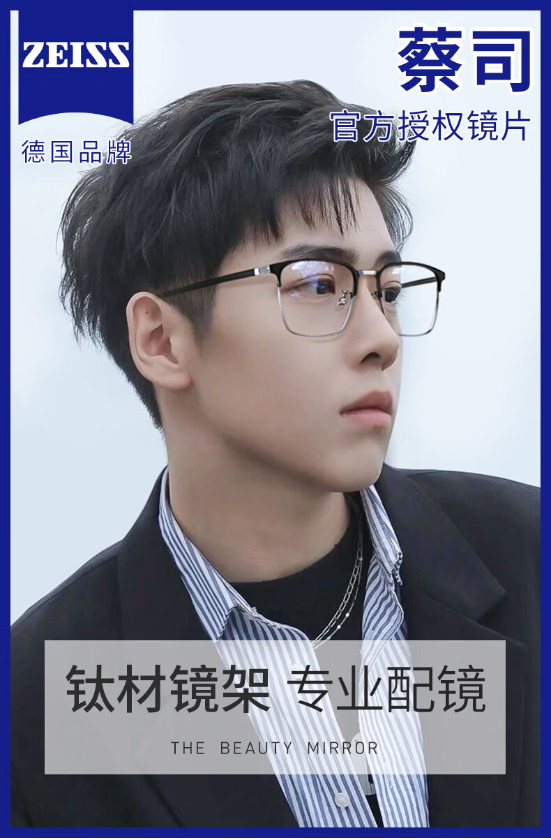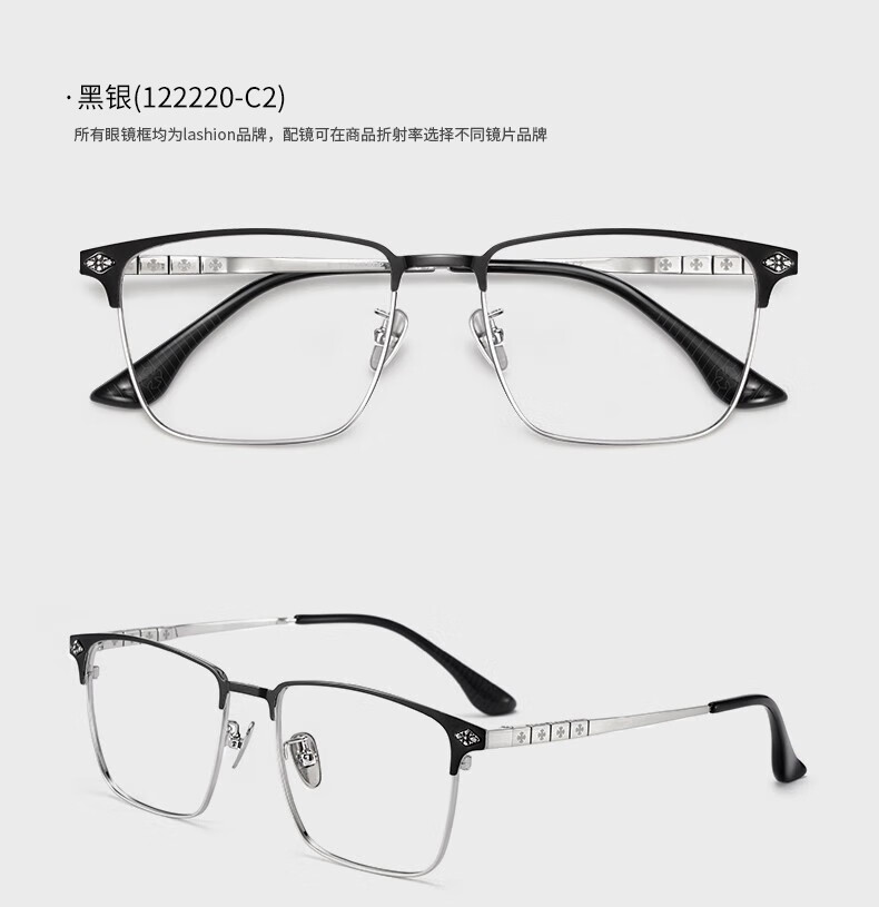 蔡司(ZEISS)镜片近视眼镜框可配度数男士防蓝光半框变色散光纯钛专业配眼镜架 122207(经典款黑银) 配LASHION1.56防蓝光镜片0~400