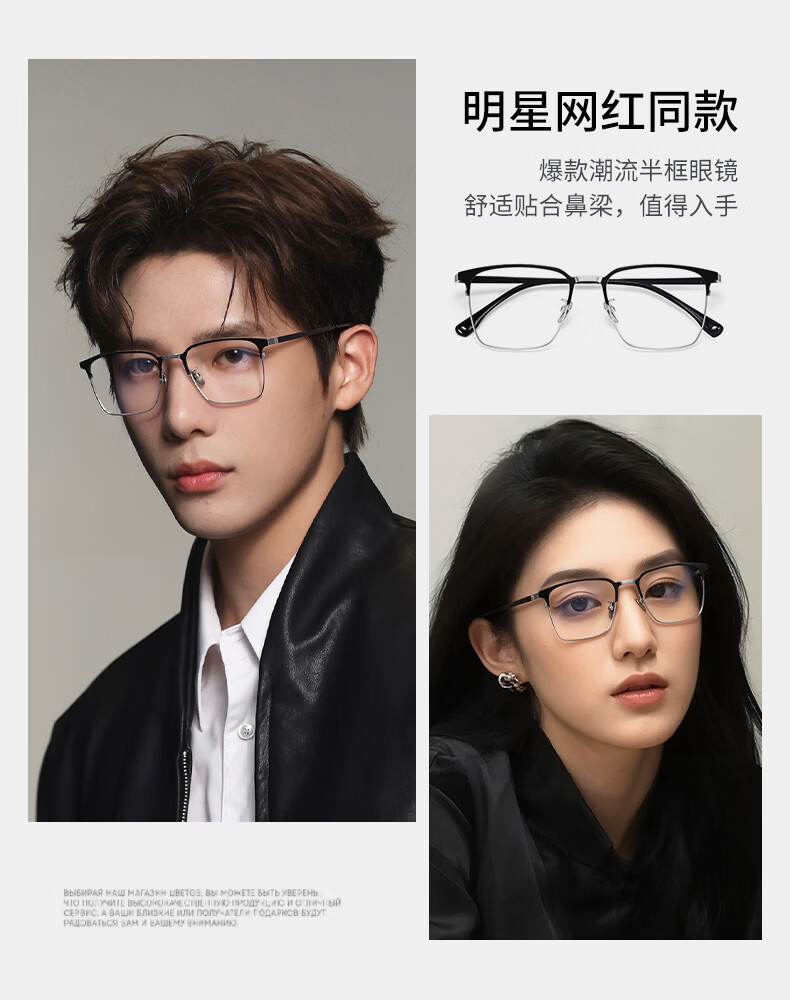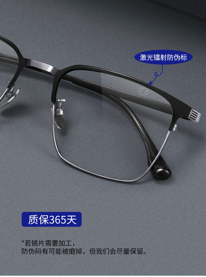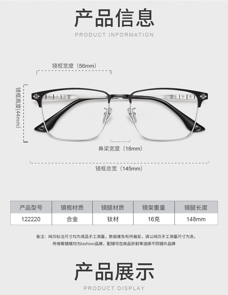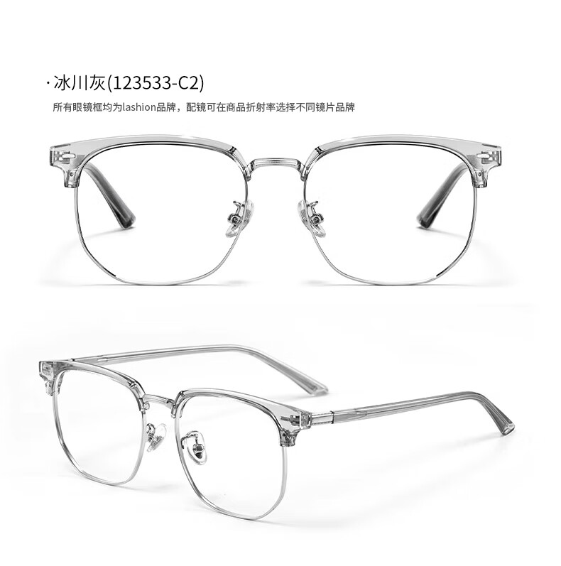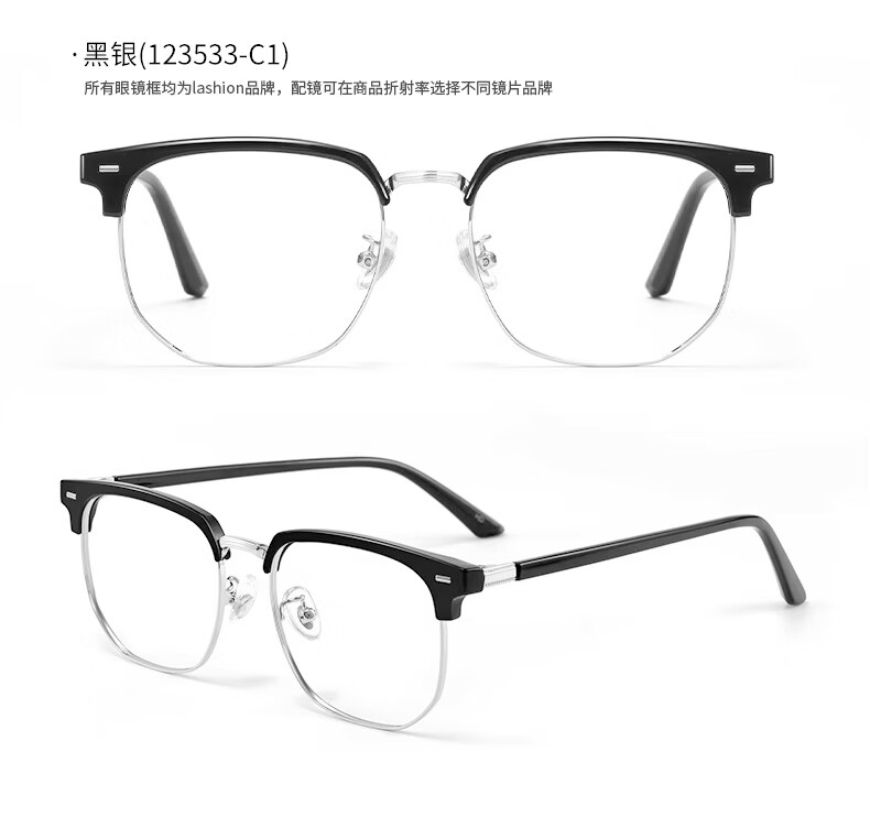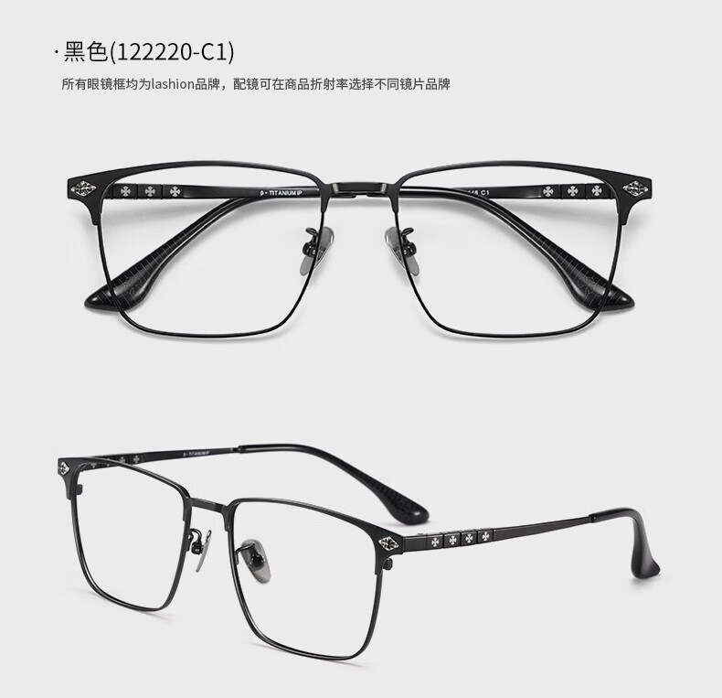 蔡司(ZEISS)镜片近视眼镜框可配度数男士防蓝光半框变色散光纯钛专业配眼镜架 122207(经典款黑银) 配LASHION1.56防蓝光镜片0~400